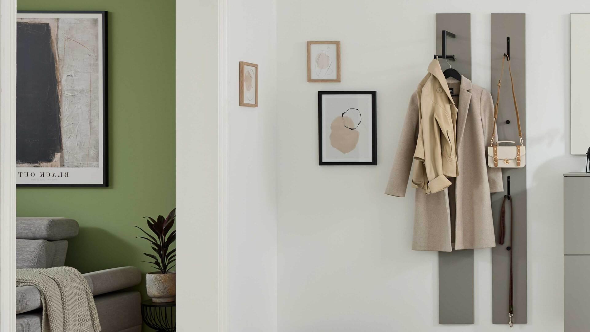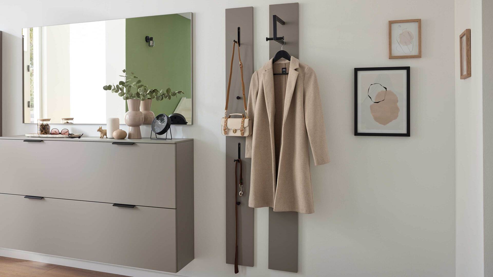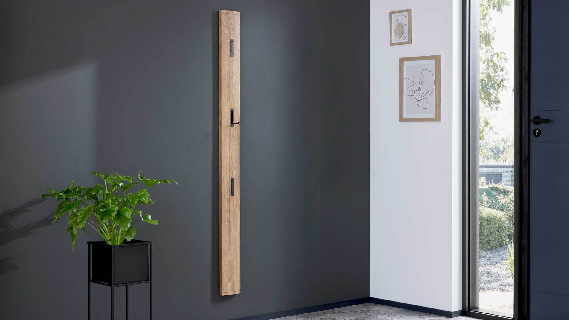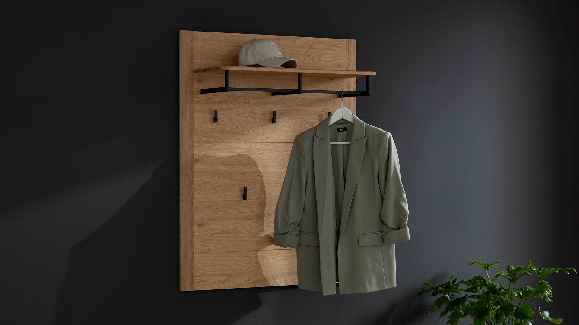 - Kompakte Wandpaneele mit Haken & Ablagen