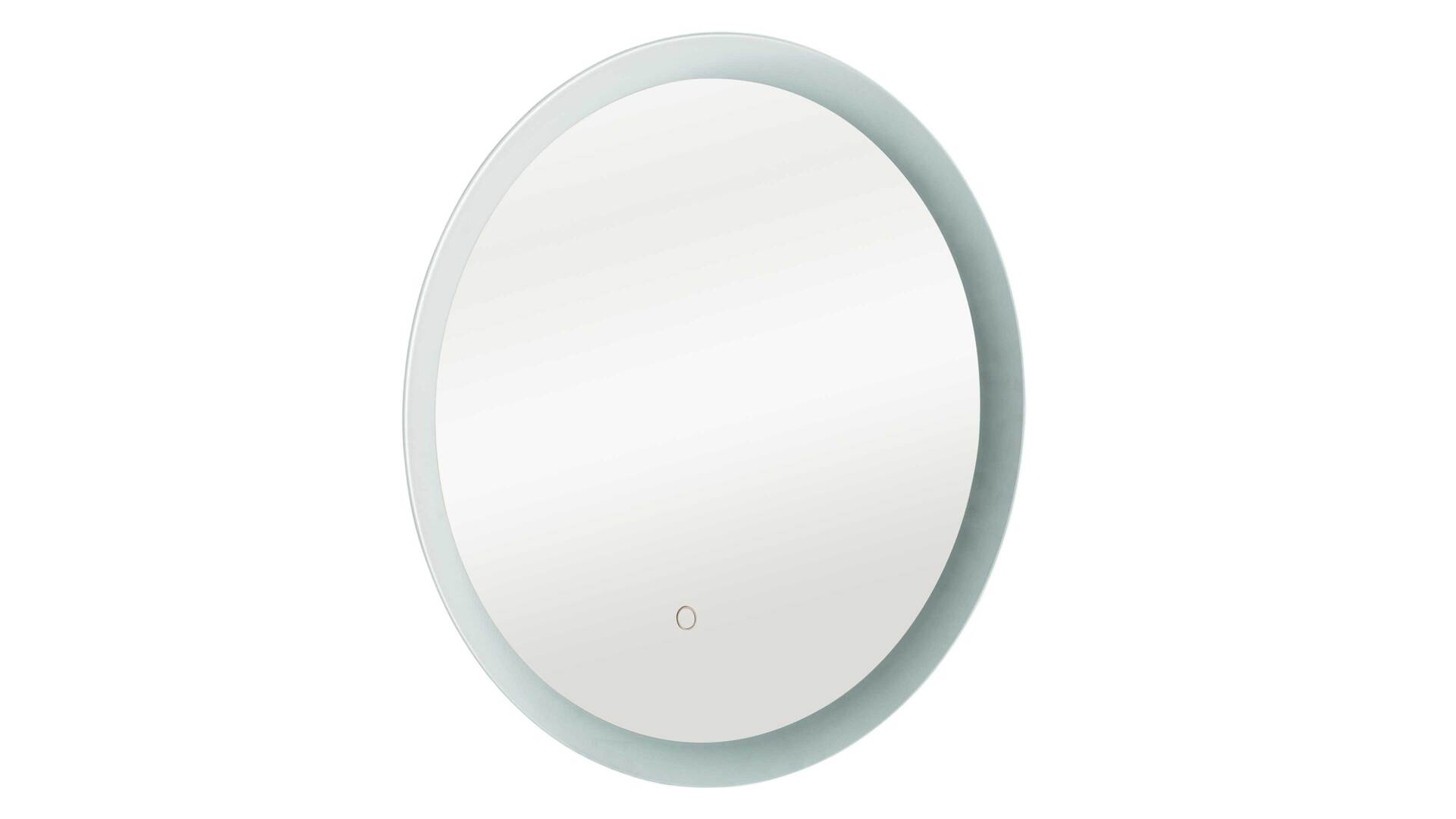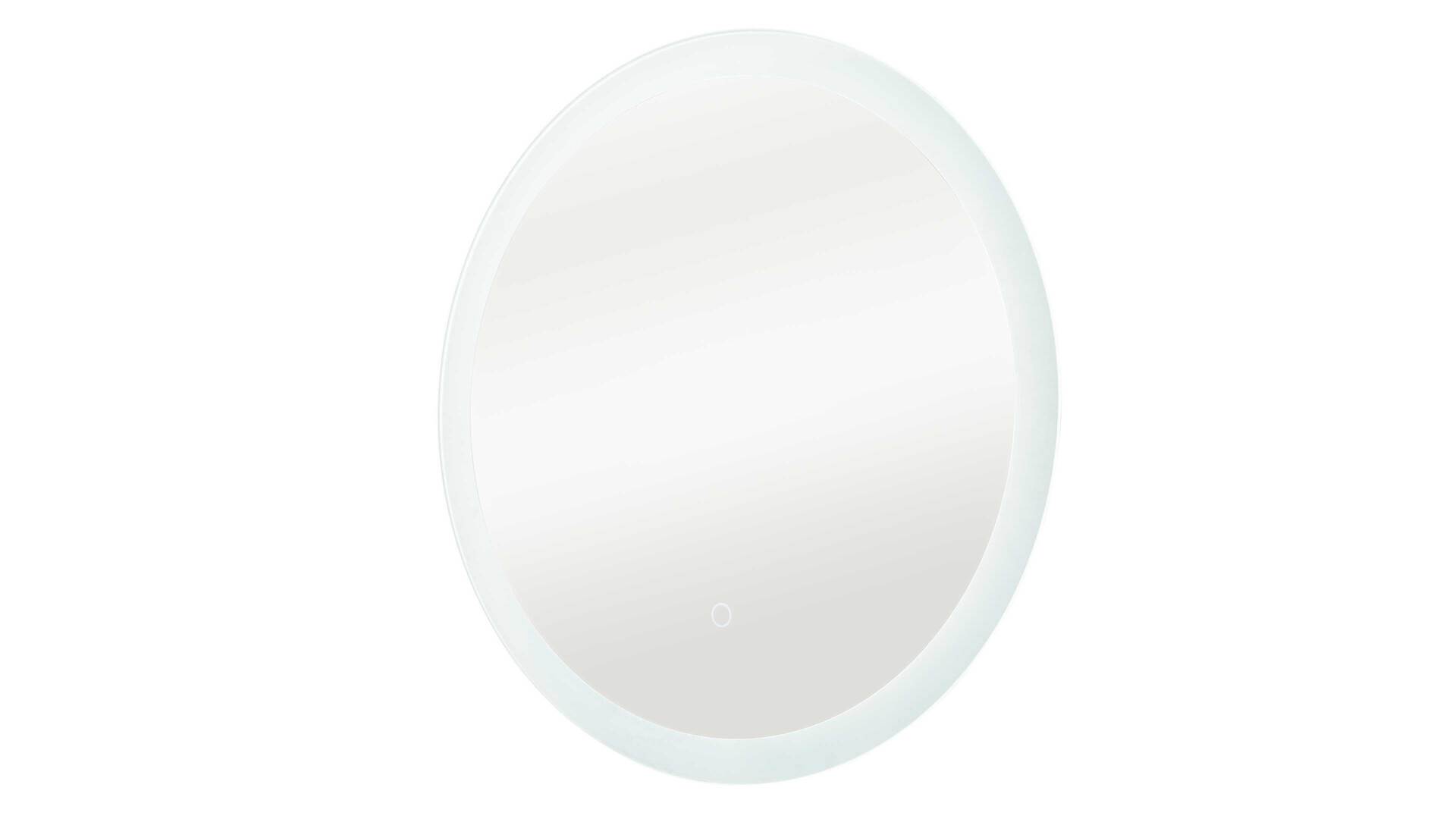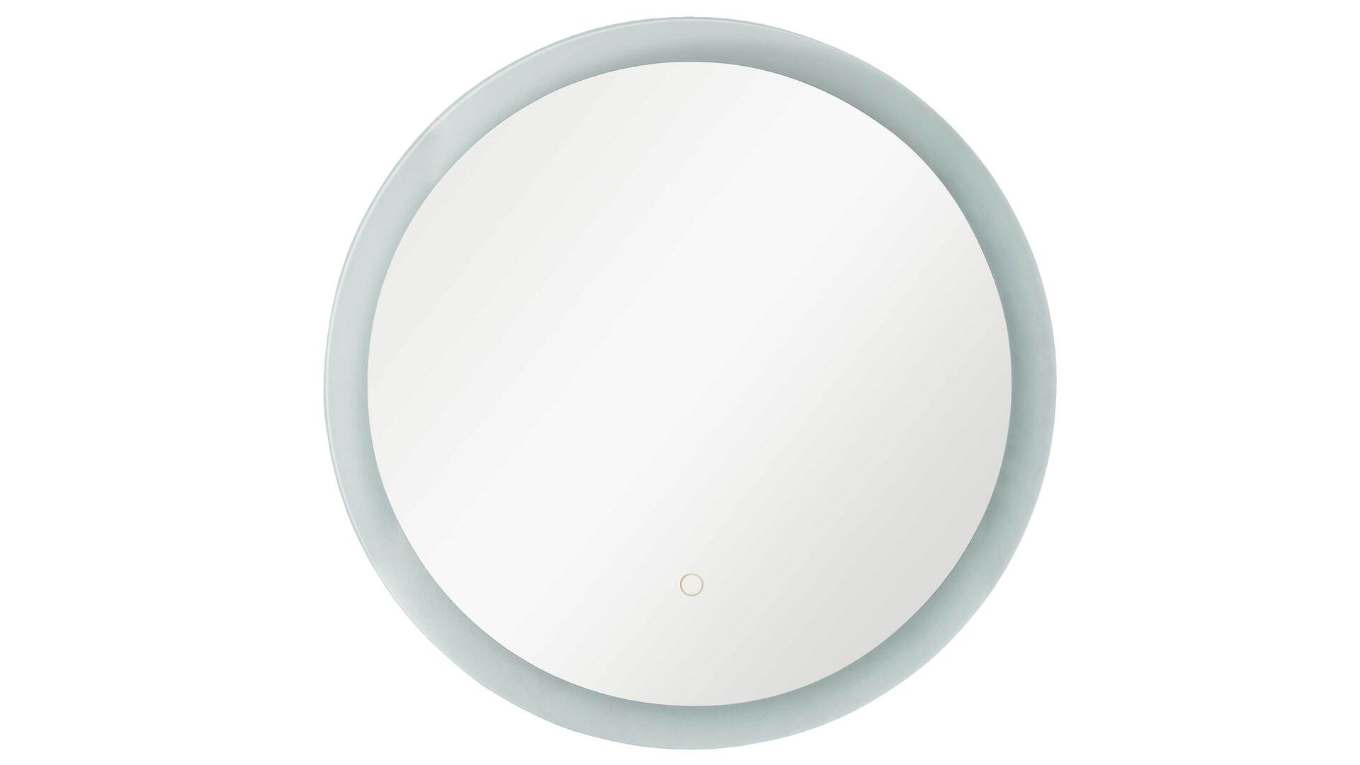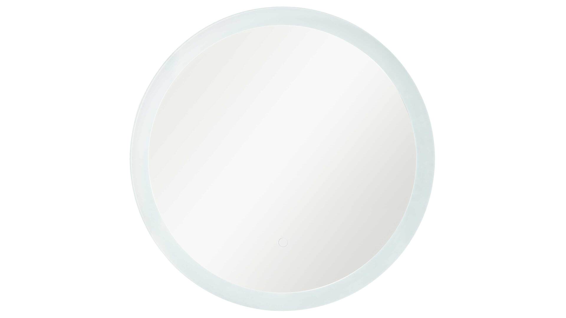 Der runde Spiegel mit einem Durchmesser von ca. 60 cm und einer Tiefe von ca. 2,5 cm wirkt elegant und zurückhaltend. Das umlaufende sandgestrahlte LED-Lichtfenster (ca. 4 cm breit) setzt ein dezentes Highlight und sorgt für gleichmäßige Helligkeit.