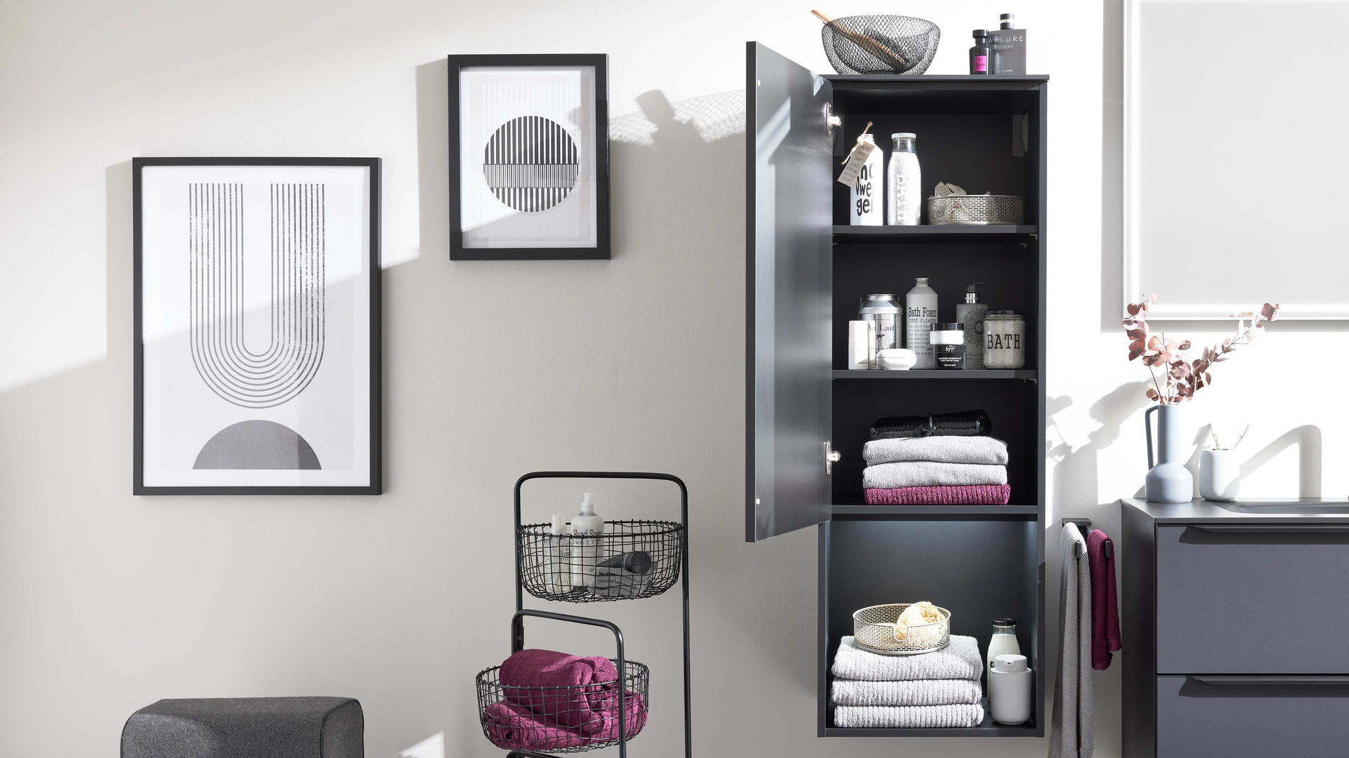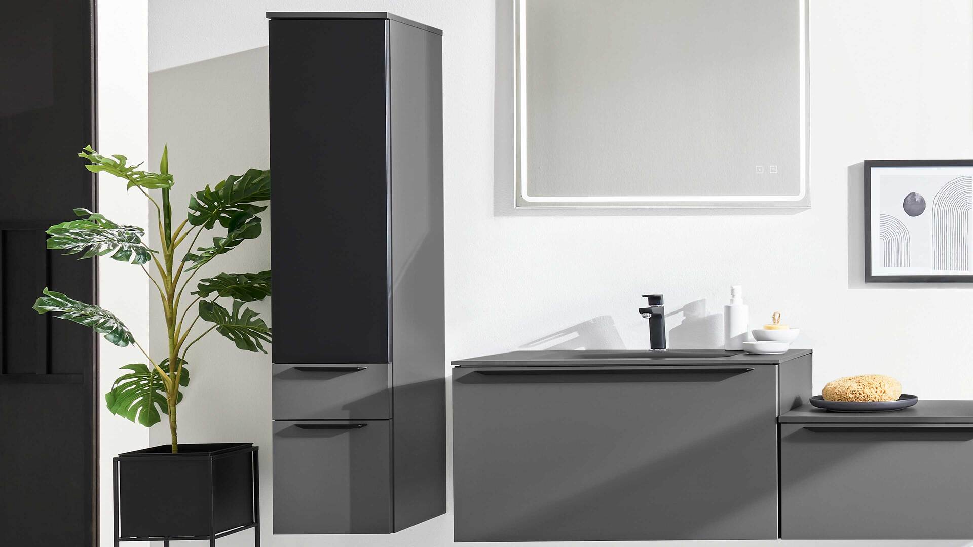 Interliving Bad Serie 7945 – dein neuer Bad-Midischrank in edlem Graphitschwarz