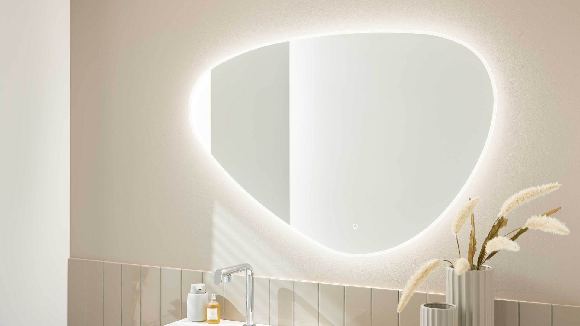 Das fest verbaute LED-Leuchtmittel (30 Watt, 5700 Kelvin) liefert klares, tageslichtähnliches Licht – perfekt für die tägliche Pflege und das Styling. Bedient wird der Badezimmerspiegel komfortabel über einen integrierten Touchsensor.