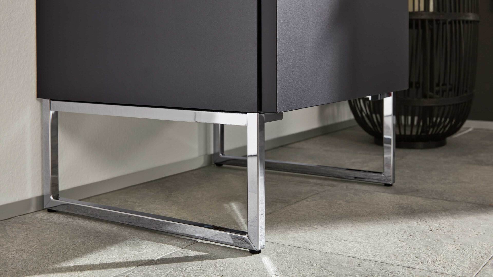 Das Badmöbel-Set aus der Interliving Bad Serie 7961 vereint elegantes Design mit durchdachten Funktionen und macht dein Badezimmer zu einem modernen Wohlfühlort. Mit ultramatter graphitschwarzer Front, schwarzem Korpus, glänzendem Chromgriff und Metallkufen überzeugt das Set optisch auf ganzer Linie.