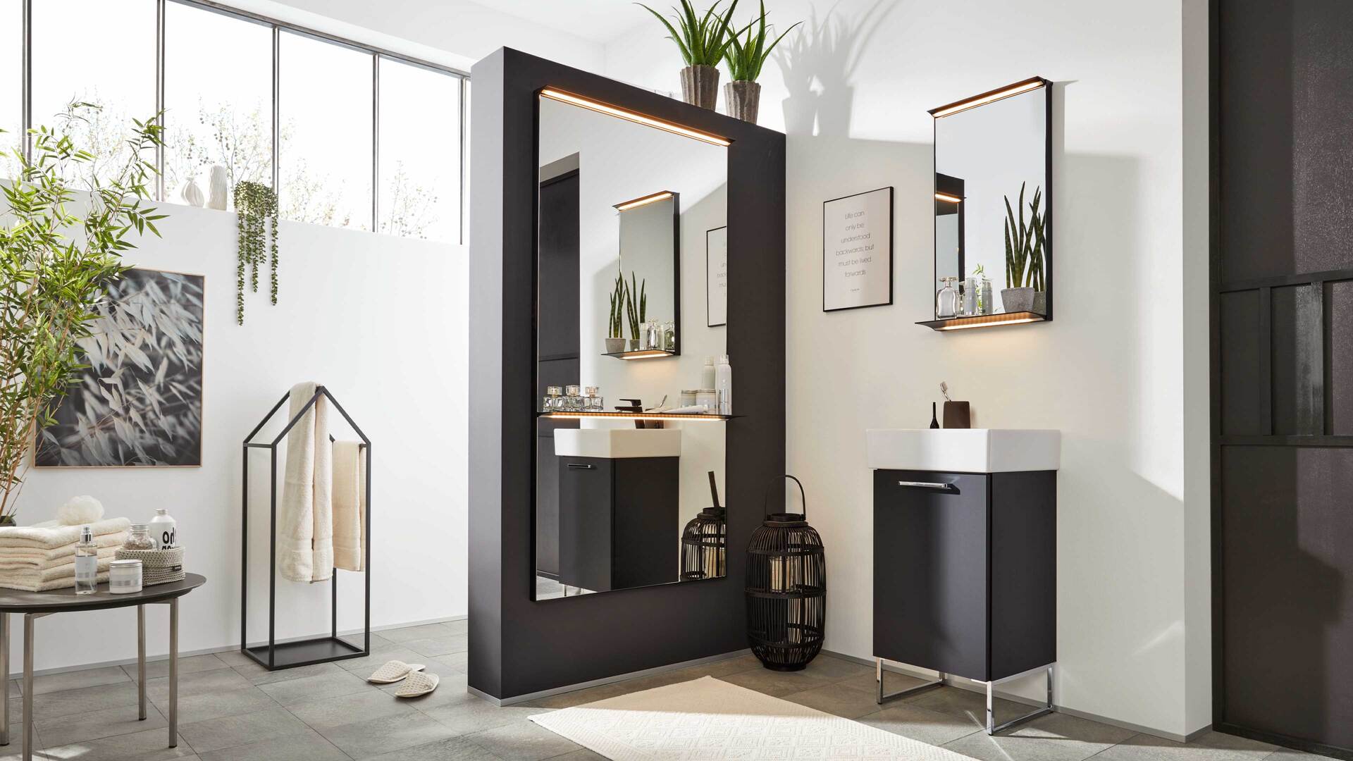 • Frei planbares, modulares Badmöbelprogramm – kombiniere Elemente wie Schränke, Spiegel und Waschtische nach deinem Stil.