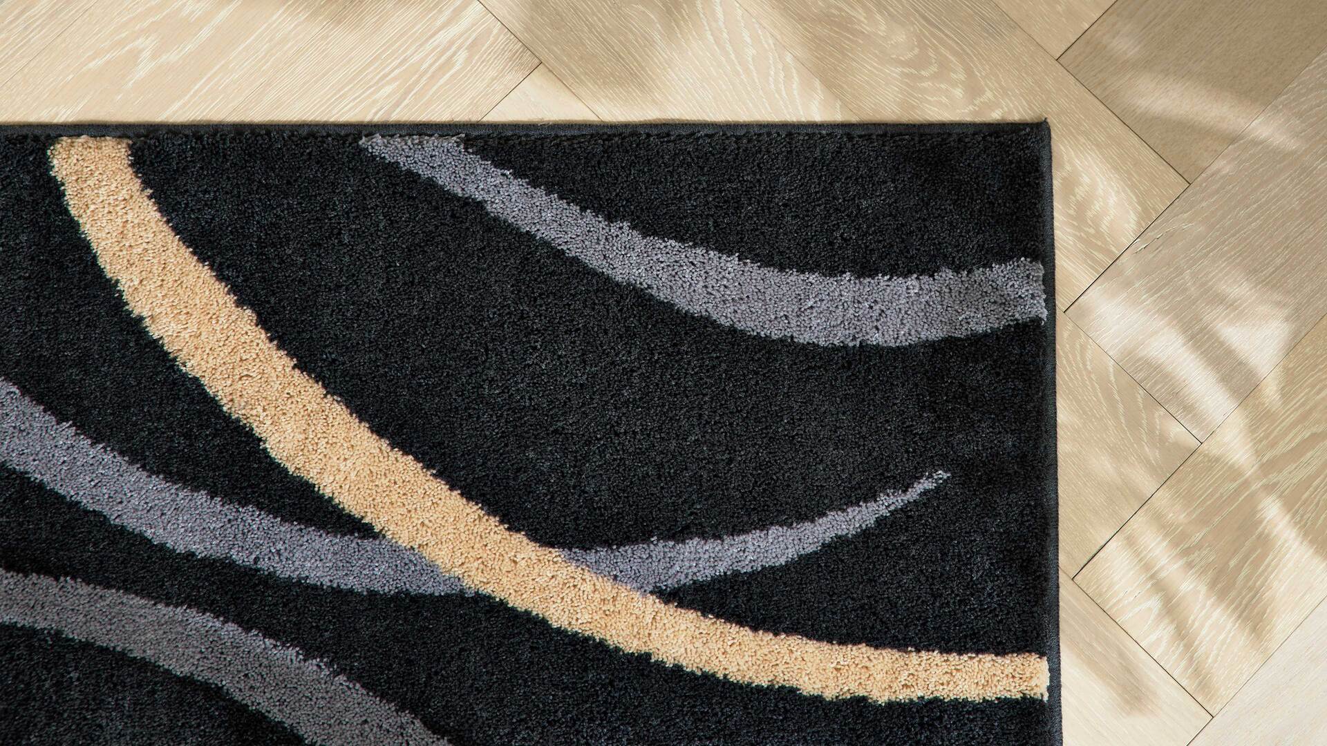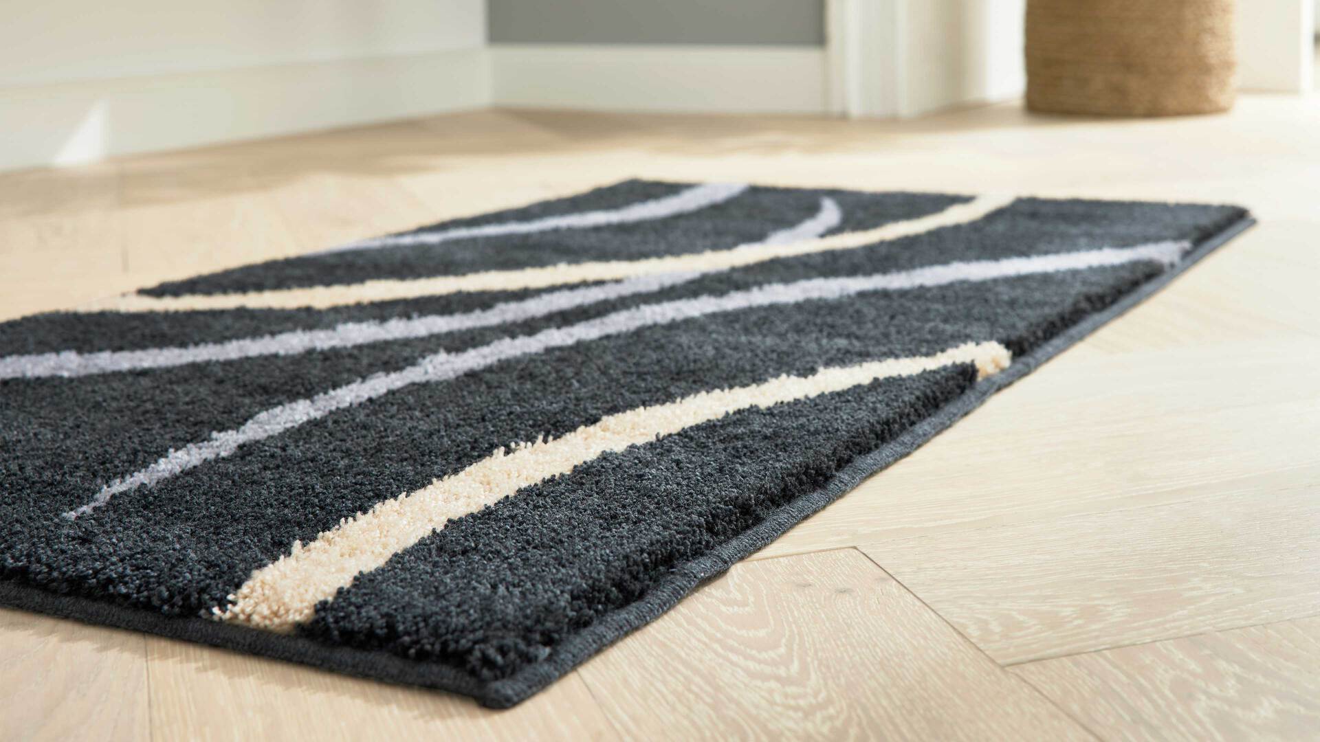 Hergestellt aus anthrazitfarbener Kunstfaser mit grafischem Muster, strahlt der ca. 65 x 115 cm (BxL) große Duschvorleger moderne Eleganz mit einer herrlich frischen Note aus, die perfekt zum Badezimmer passt.