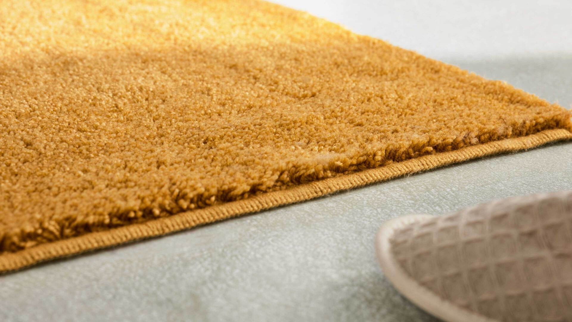 Hergestellt aus safranfarbener Kunstfaser, strahlt der ca. 60 x 90 cm (BxL) große Duschvorleger moderne Eleganz mit einer noblen Note aus, die dem Badezimmer das gewisse Etwas verleiht.