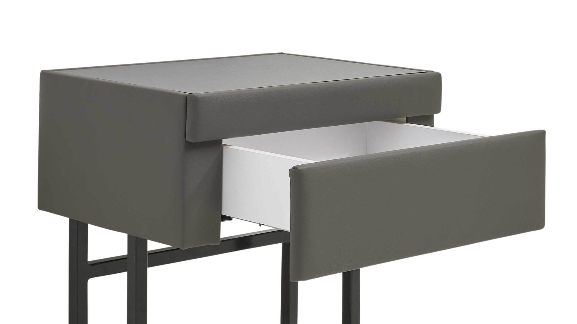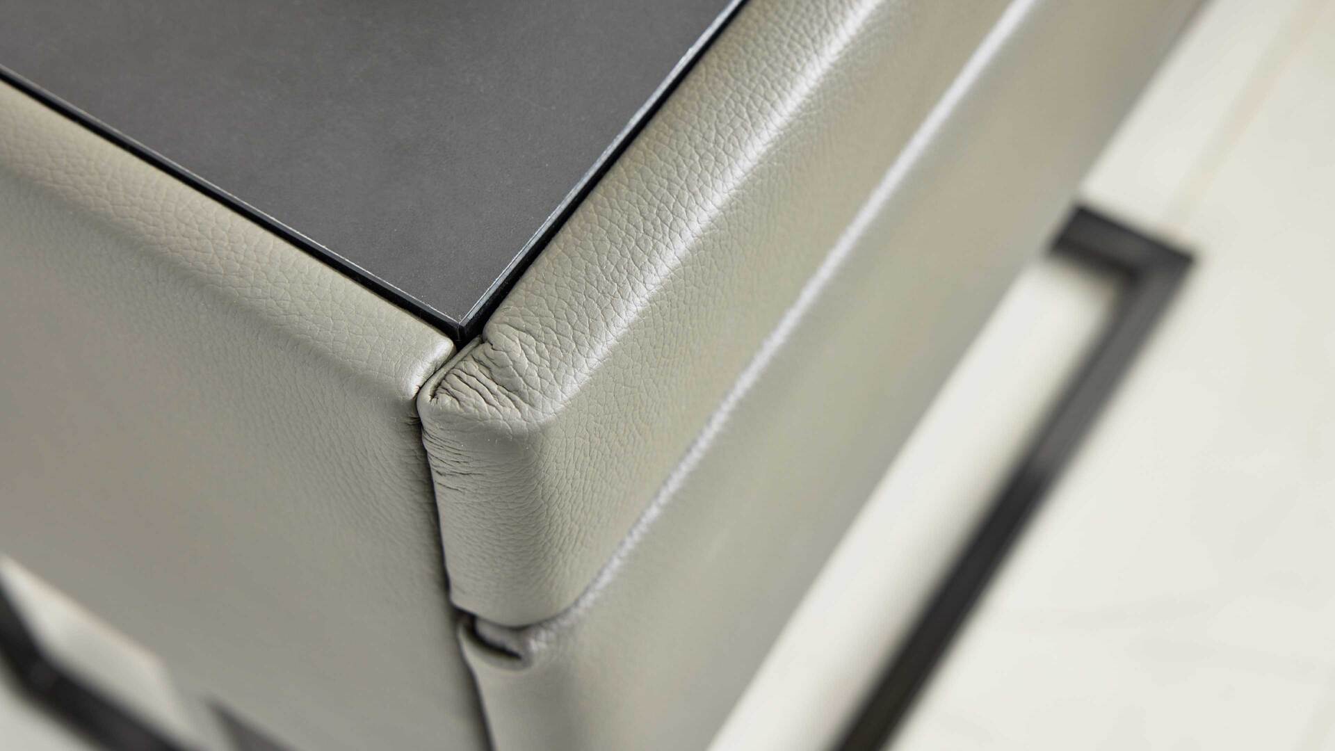 Die elegante Nachtkonsole aus der Interliving Bettensystem Serie 1416 überzeugt durch modernes Design und durchdachte Funktionalität. Mit ihrer Kombination aus einem offenen Metallgestell in Schwarz und dem hochwertig verarbeiteten, grau pigmentierten Lederbezug Torro fügt sie sich harmonisch in jede Schlafzimmergestaltung ein – besonders als Ergänzung zu den Polster- oder Boxspringbetten der Serie.