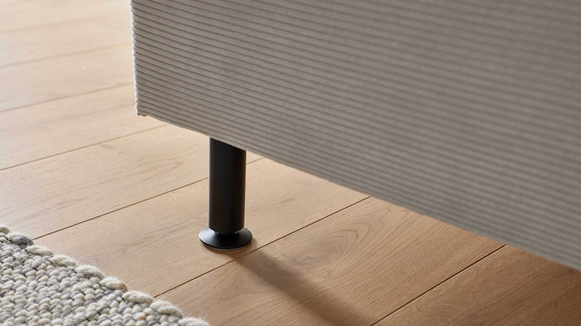 Das Boxspringbett aus der Interliving Boxspringbett Serie 1418 überzeugt durch seine elegante Ausstrahlung und durchdachte Funktionalität. Der edle Bezug aus silberfarbenem Feincord verleiht dem Bett eine samtig weiche Haptik und eine moderne, wohnliche Optik. Perfekt ergänzt wird das Design durch die mattschwarzen Metallfüße Z002-15/M01, die dem Bett eine stabile Basis und einen stilvollen Kontrast bieten. Optisches Highlight ist das Polsterkopfteil 0320, das mit dekorativen Steppnähten und einer nesselbezogenen Rückseite überzeugt.