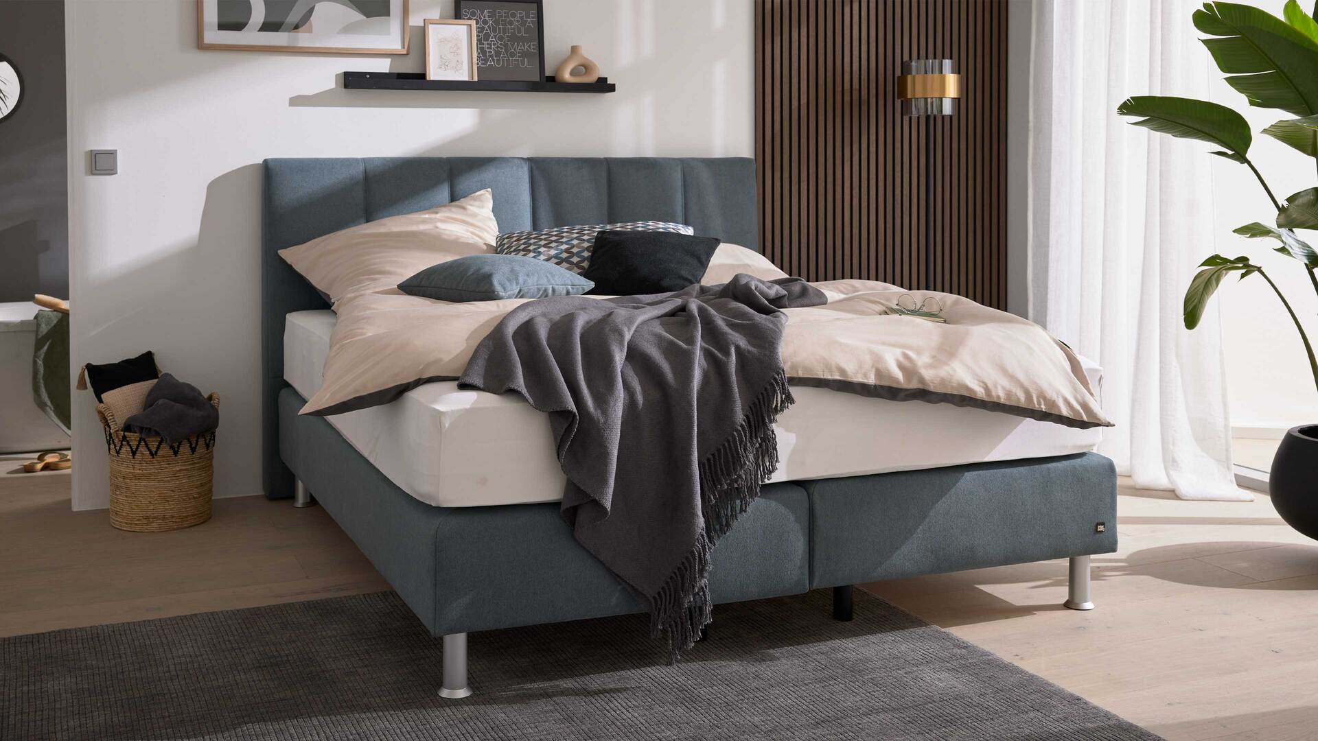 Mit dem modularen Interliving Boxspring-System lässt sich dein Bett ganz nach deinen Wünschen gestalten. Wähle aus verschiedenen Kopfteilen, Stoffen, Fußvarianten oder ergänze dein Bett mit funktionalem Zubehör wie motorischer Verstellung, Nachtkonsolen oder einer passenden Tagesdecke. So entsteht deine maßgeschneiderte Wohlfühloase.