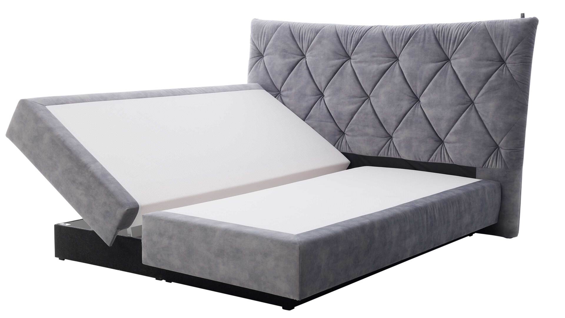 Das Boxspringbett mit Bettkasten aus der Interliving Boxspringbett Serie 1420 vereint ästhetischen Stil, hochwertige Materialien und ein cleveres Stauraumkonzept. Der silberfarbene Strickvelours Auri verleiht dem Bett eine edle, wohnliche Ausstrahlung und lässt sich harmonisch in viele Schlafzimmerstile integrieren – von modern bis klassisch.