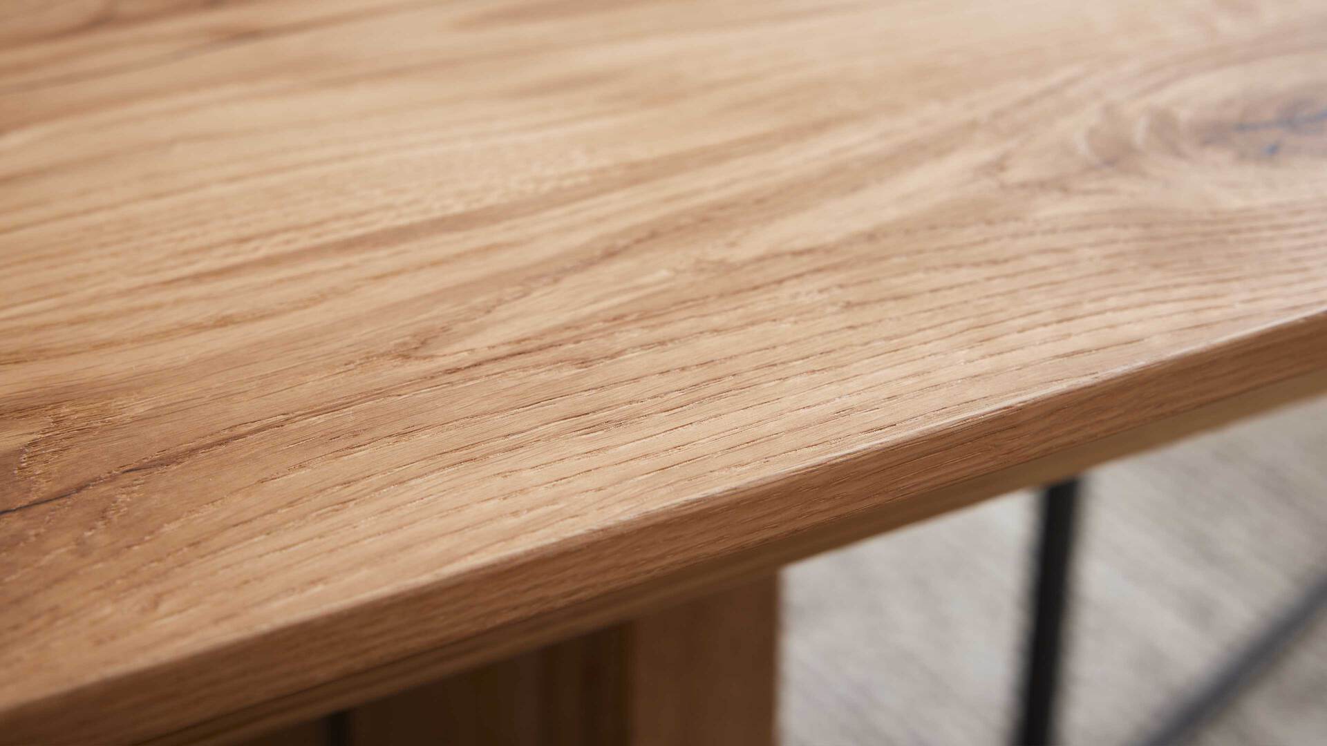 Der Esstisch V354-0300 aus der Interliving Esszimmer Serie 5604 verbindet hell geöltes Eiche rustico Echtholzfurnier mit Akzenten in Eiche anthrazit matt.