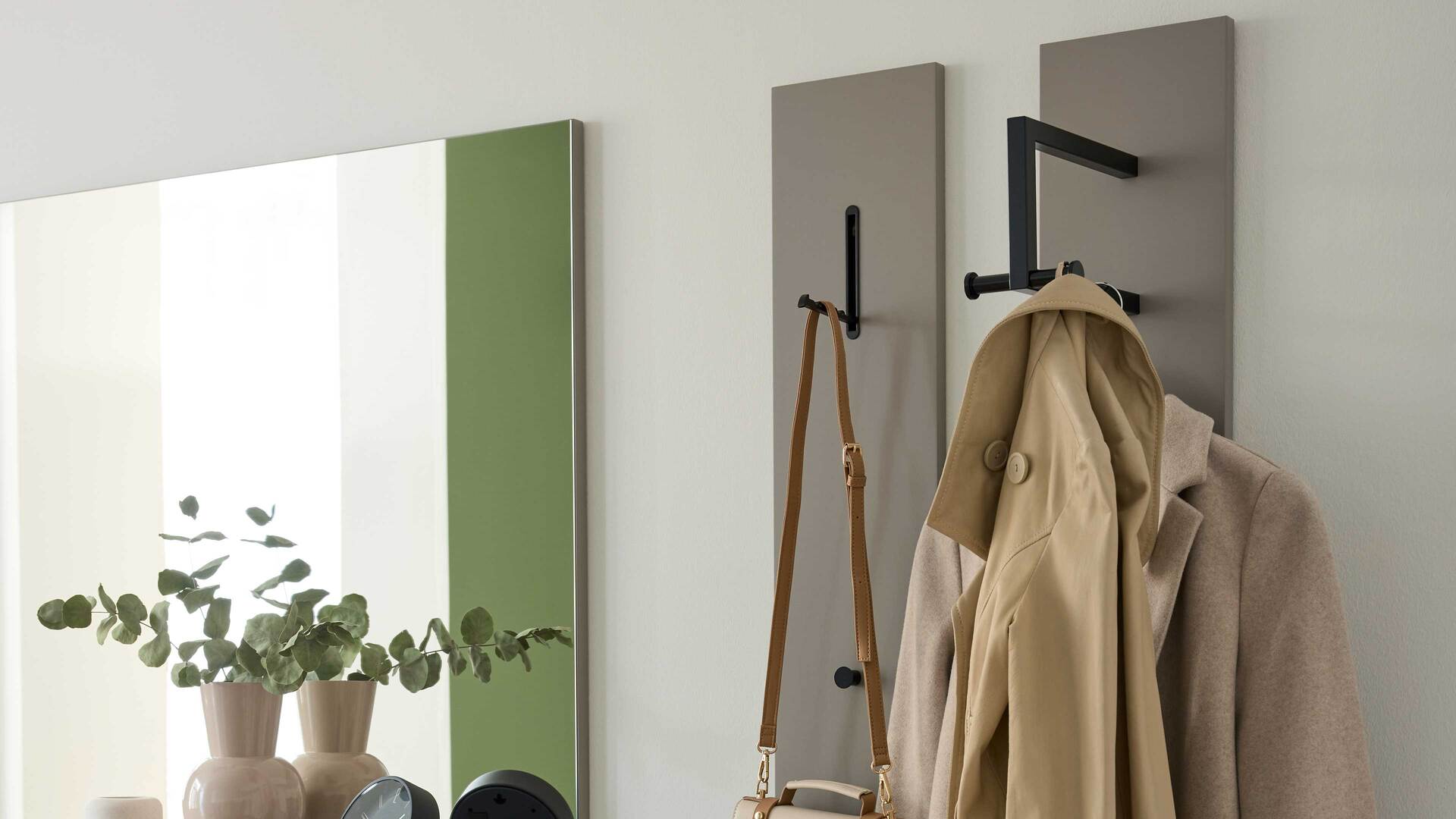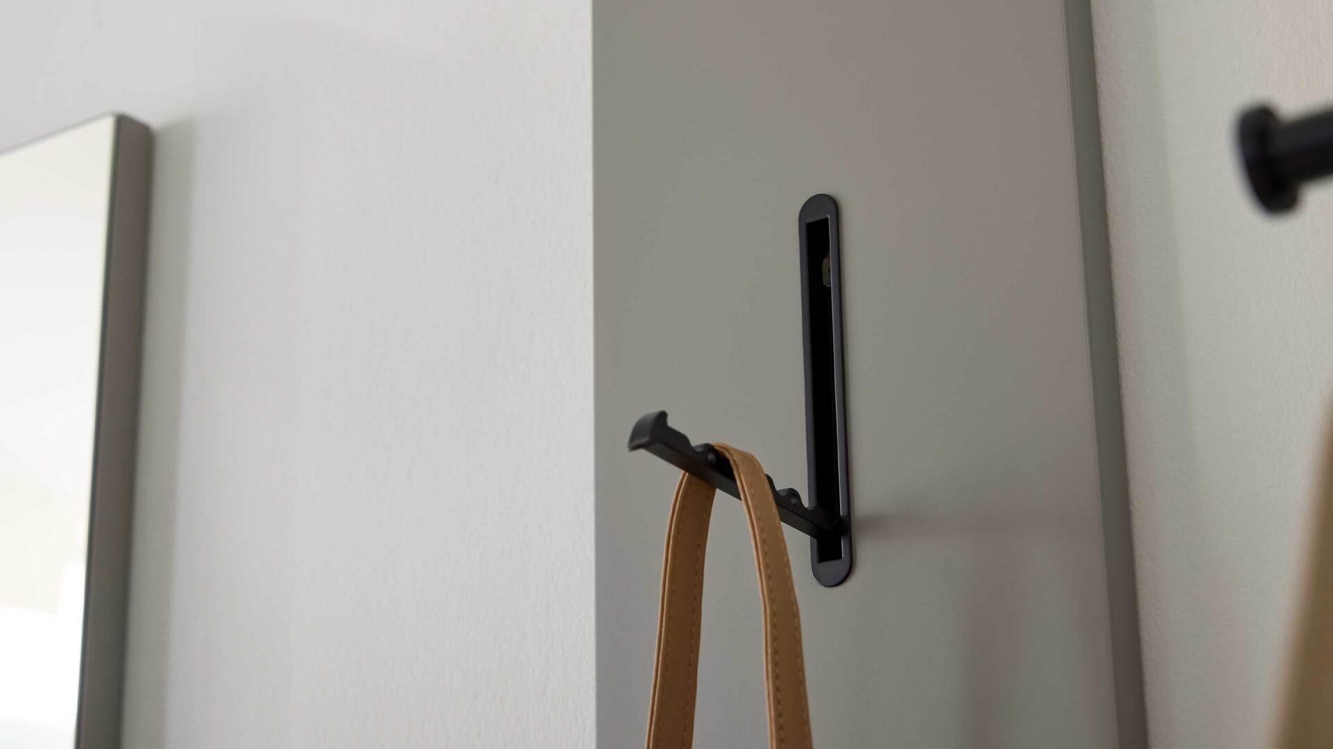 Schmal und funktional bietet dieses Paneel zwei Klapphaken und zwei Kleiderhaken – ideal für Taschen, Schals oder Jacken. Durch die reduzierte Breite perfekt als Ergänzung oder Ergänzungsstück für kleinere Wandflächen.