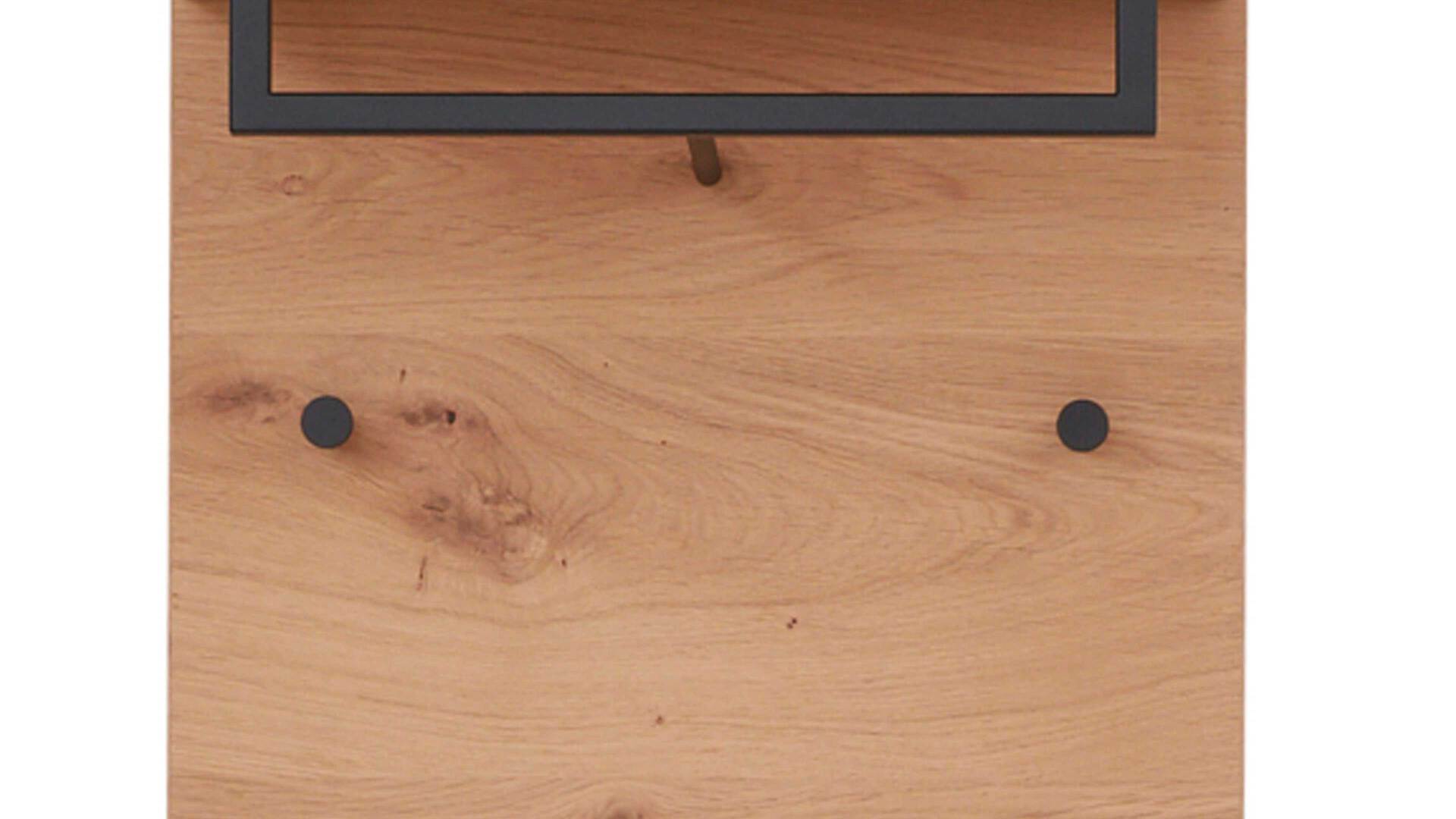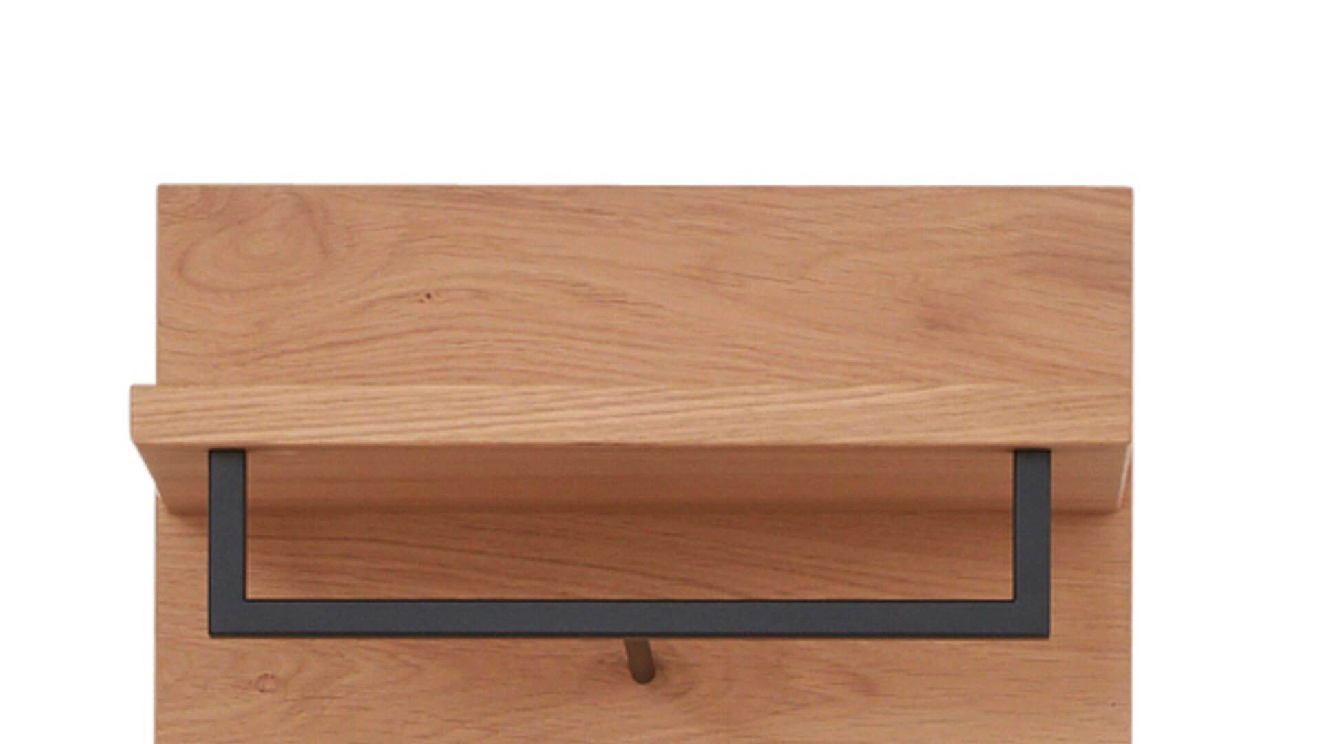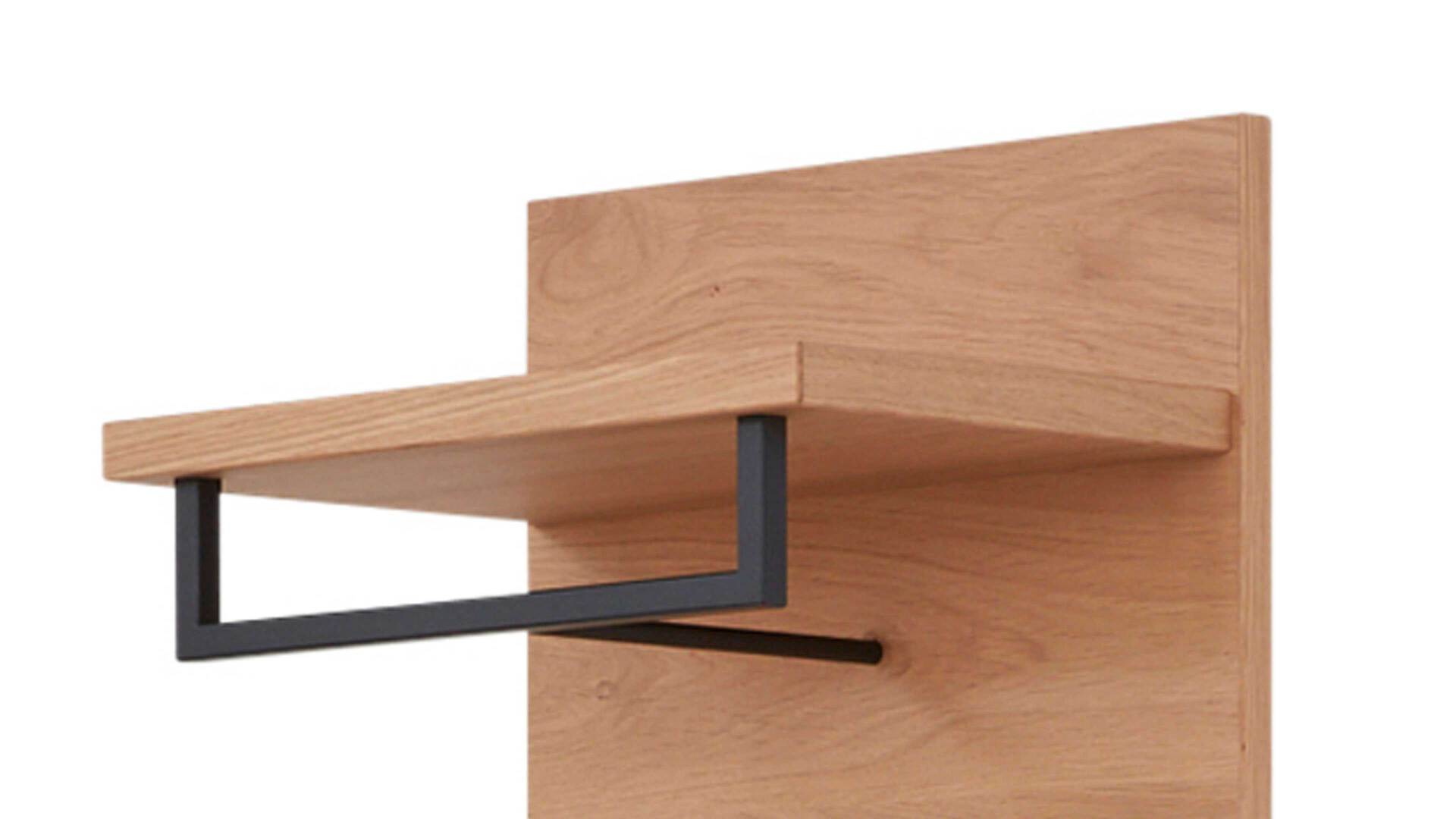 Diese Merkmale kennzeichnen die Wandgarderobe 822 der Interliving Garderoben Serie 6005. Sie präsentiert sich komplett in widerstandsfähigem Balkeneichefurnier. Stilvoll und robust abgerundet wird das Garderobenpaneel durch die verschiedenen metallenen Details im trendigen Farbton Anthrazit.