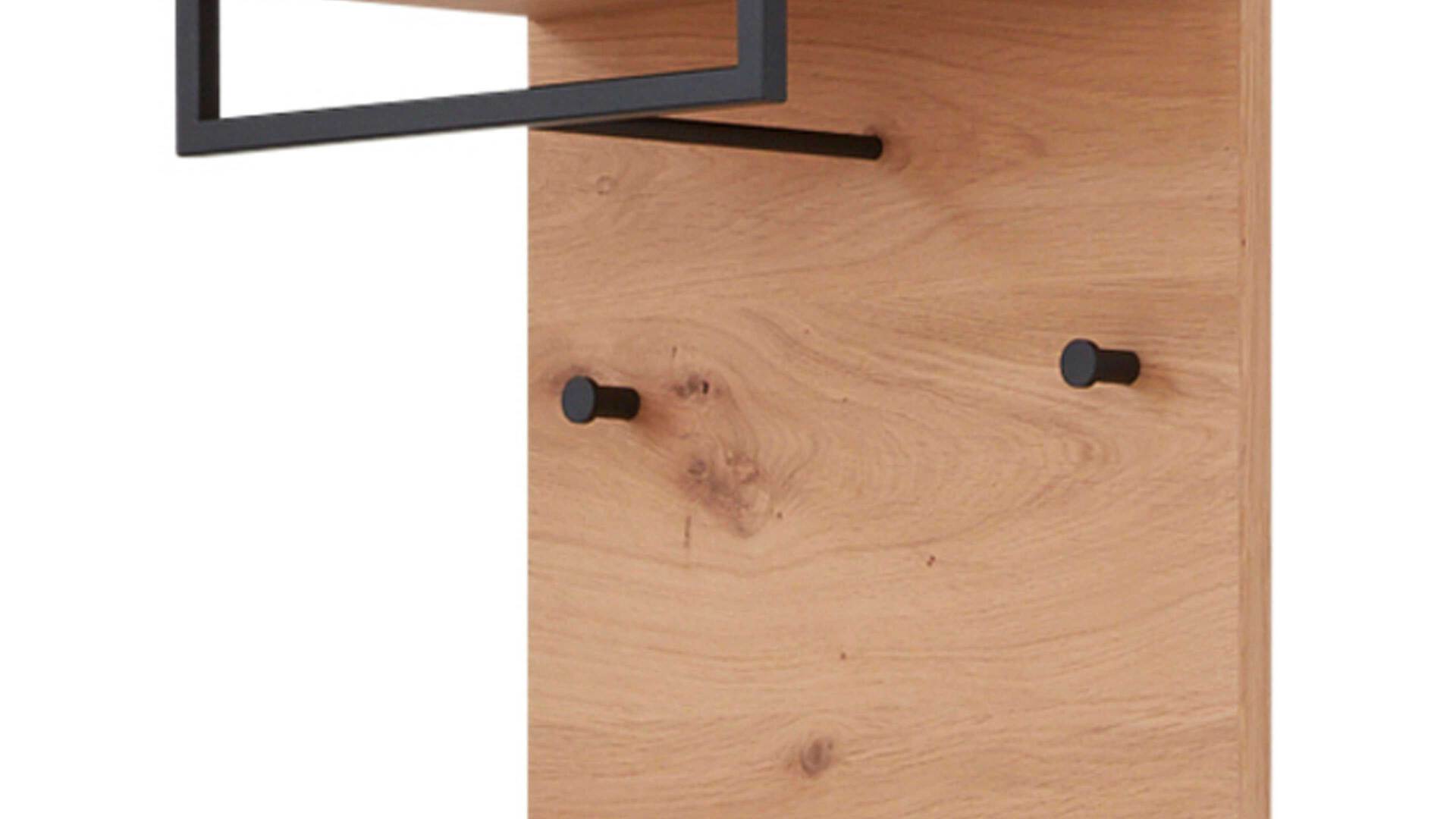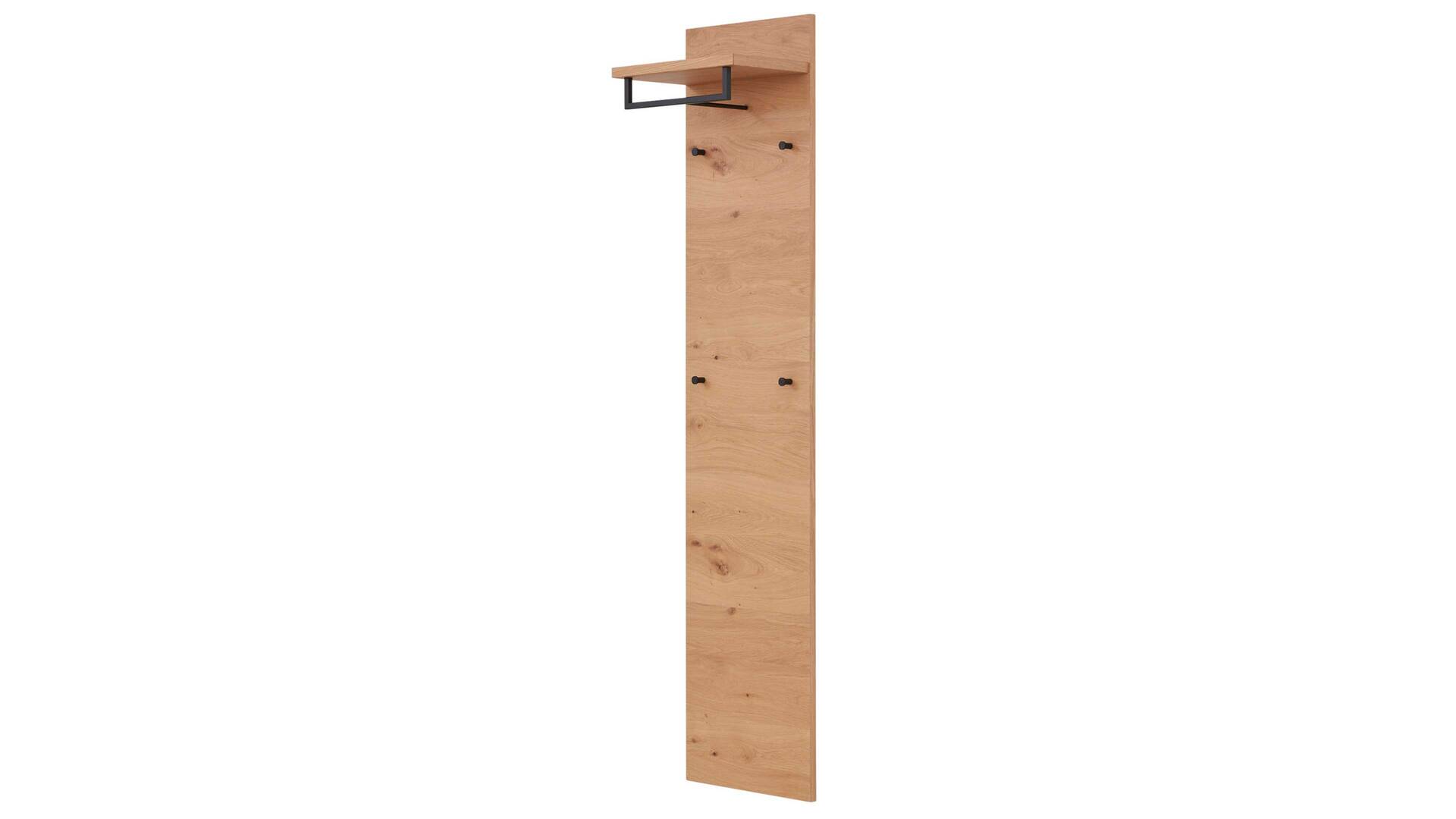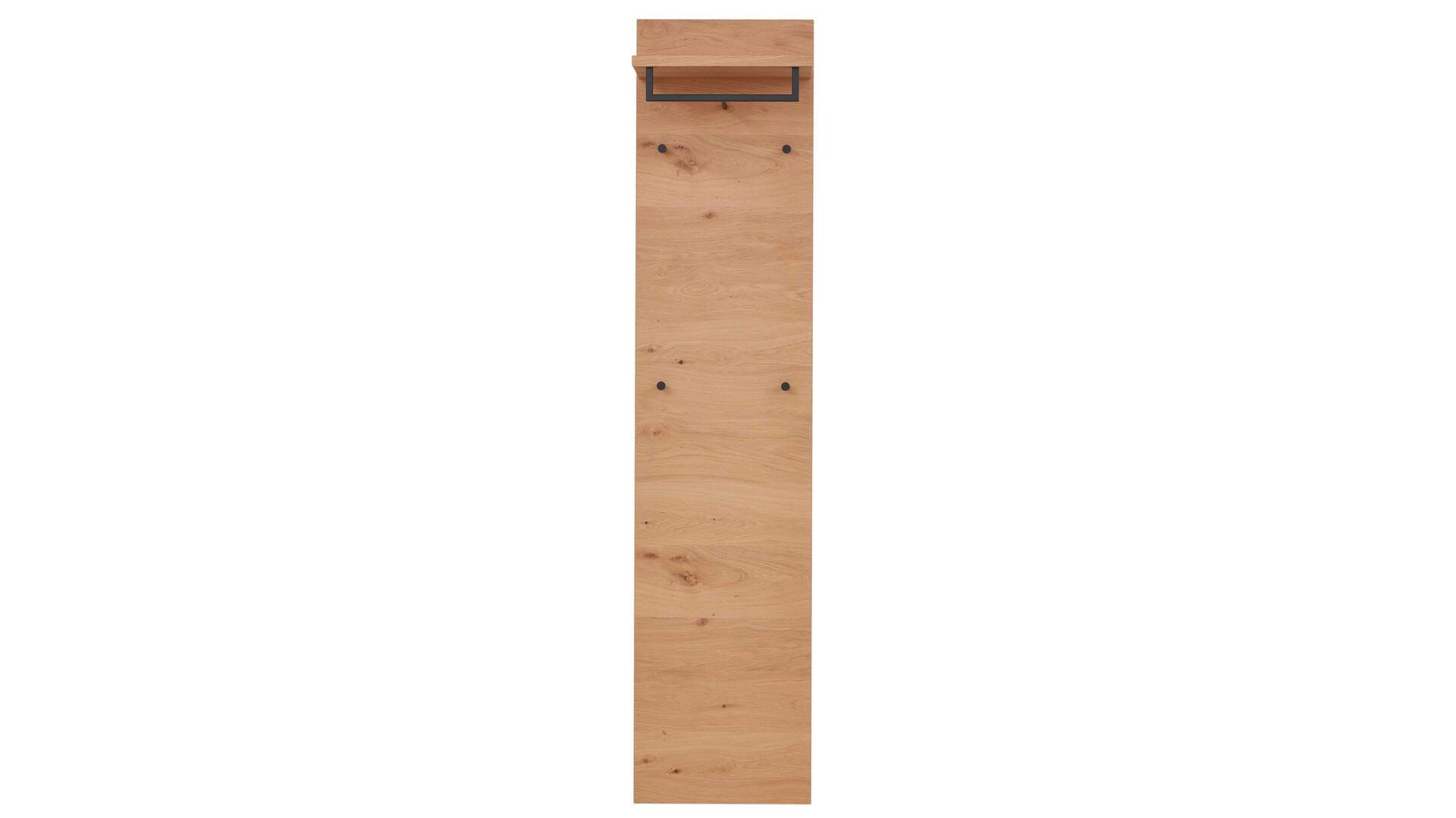 Diese Merkmale kennzeichnen die Wandgarderobe 822 der Interliving Garderoben Serie 6005. Sie präsentiert sich komplett in widerstandsfähigem Balkeneichefurnier. Stilvoll und robust abgerundet wird das Garderobenpaneel durch die verschiedenen metallenen Details im trendigen Farbton Anthrazit.