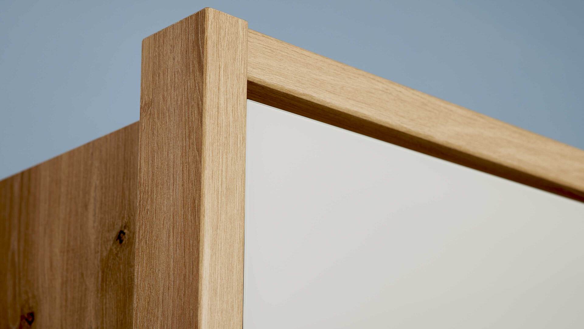 Runde deinen Schrank mit einem Passepartoutrahmen ab, um ihn optisch zu betonen und deinem Schlafzimmer ein klares, hochwertiges Gesamtbild zu geben. Gemeinsam mit dem passenden Bettgestell – wahlweise mit Polster- oder Holzkopfteil in sieben Breiten und vier Längen – gestaltest du eine stimmige Schlafzimmereinrichtung, die perfekt zu dir passt.