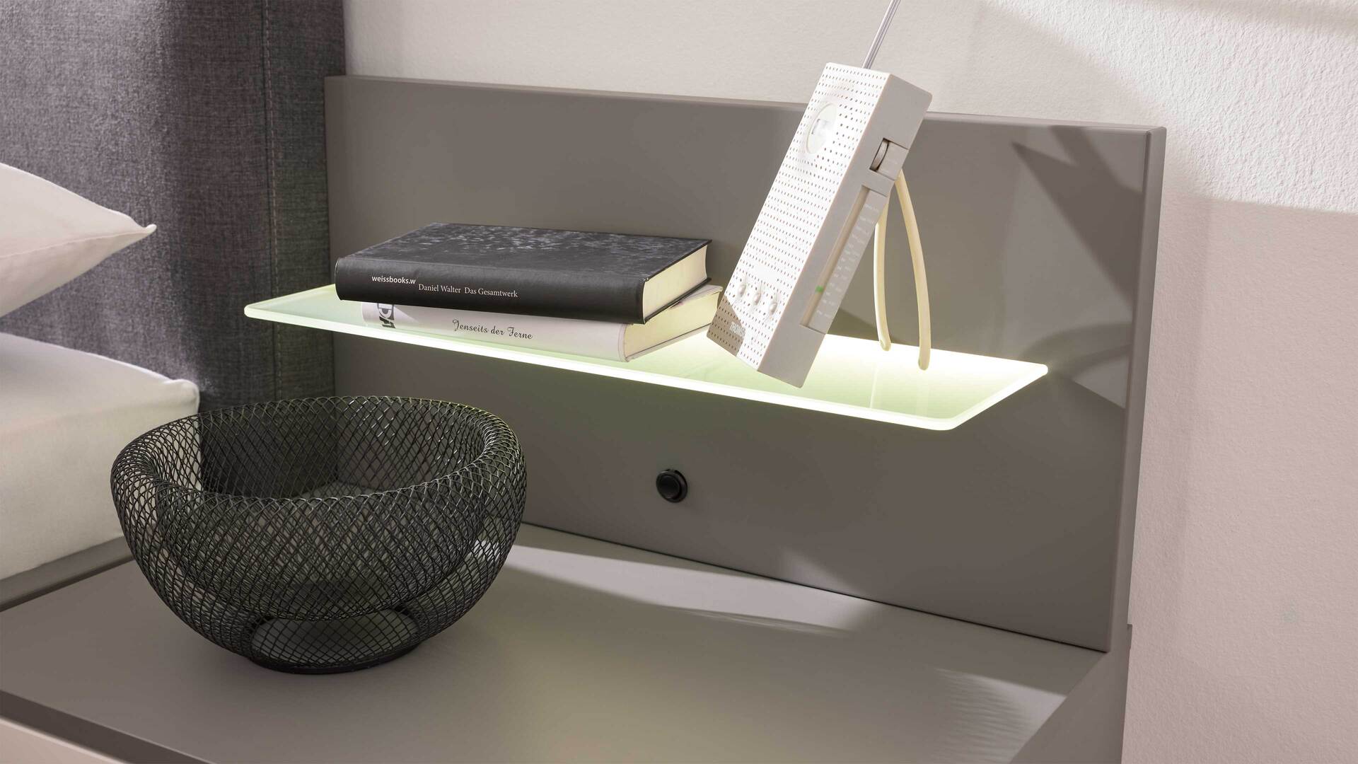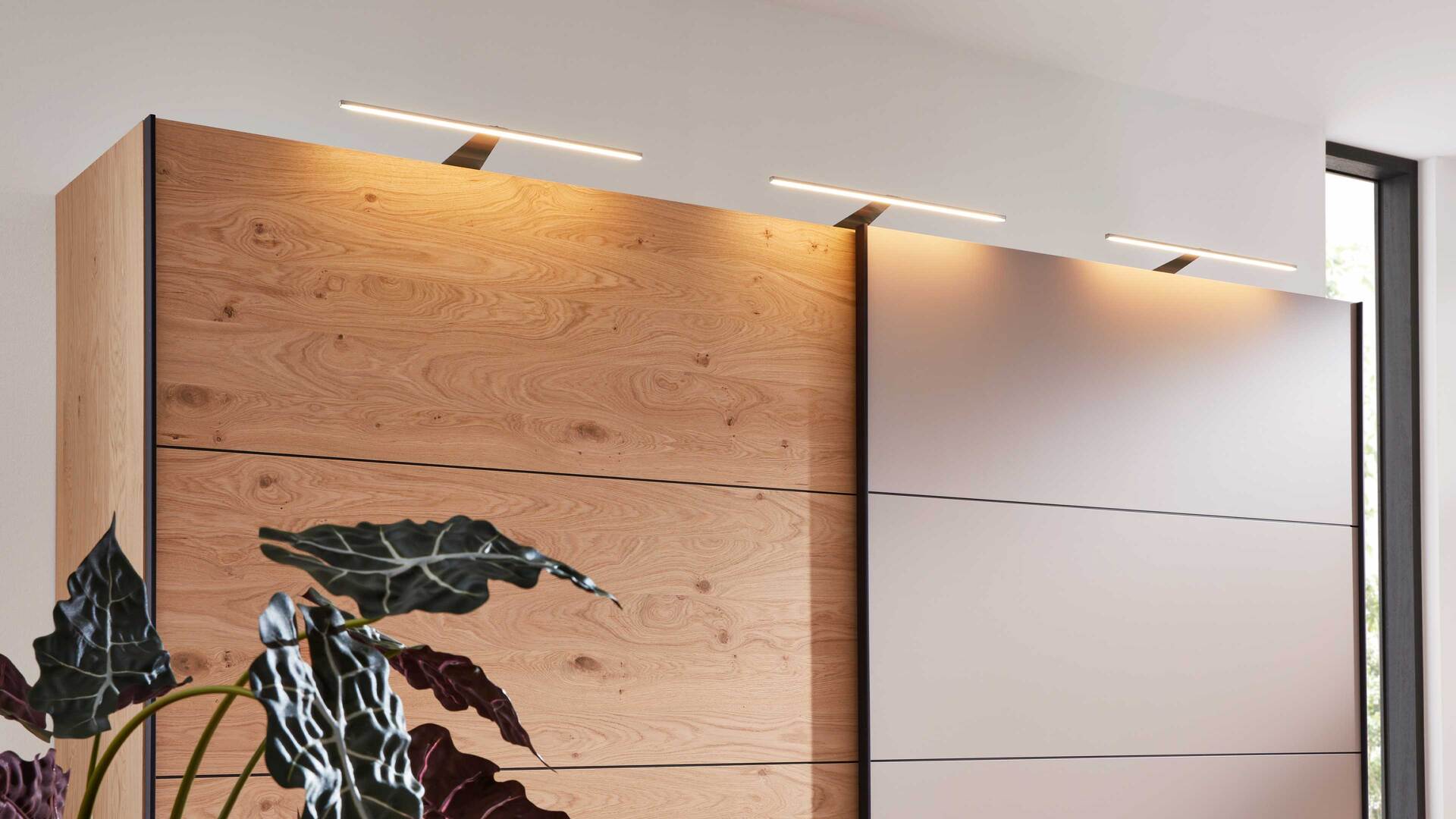 Die fest verbaute LED-Lichtquelle sorgt für eine gleichmäßige, blendfreie Ausleuchtung der Glasfläche und betont die hochwertige Materialanmutung der Paneelaufsätze. Zudem überzeugt die Beleuchtung durch ihre hohe Energieeffizienz und eine lange Lebensdauer – eine durchdachte Lichtlösung für moderne Schlafzimmer.