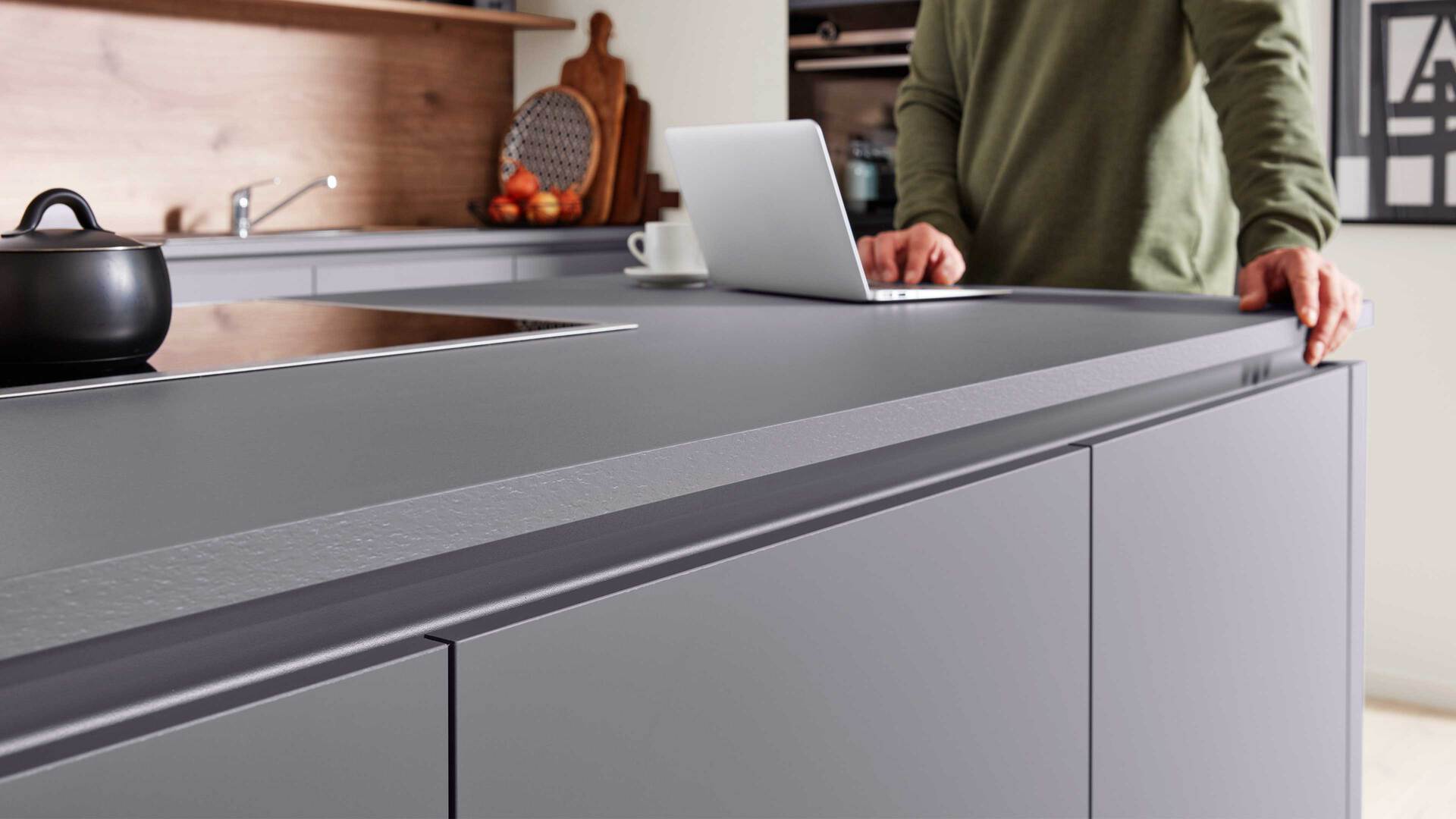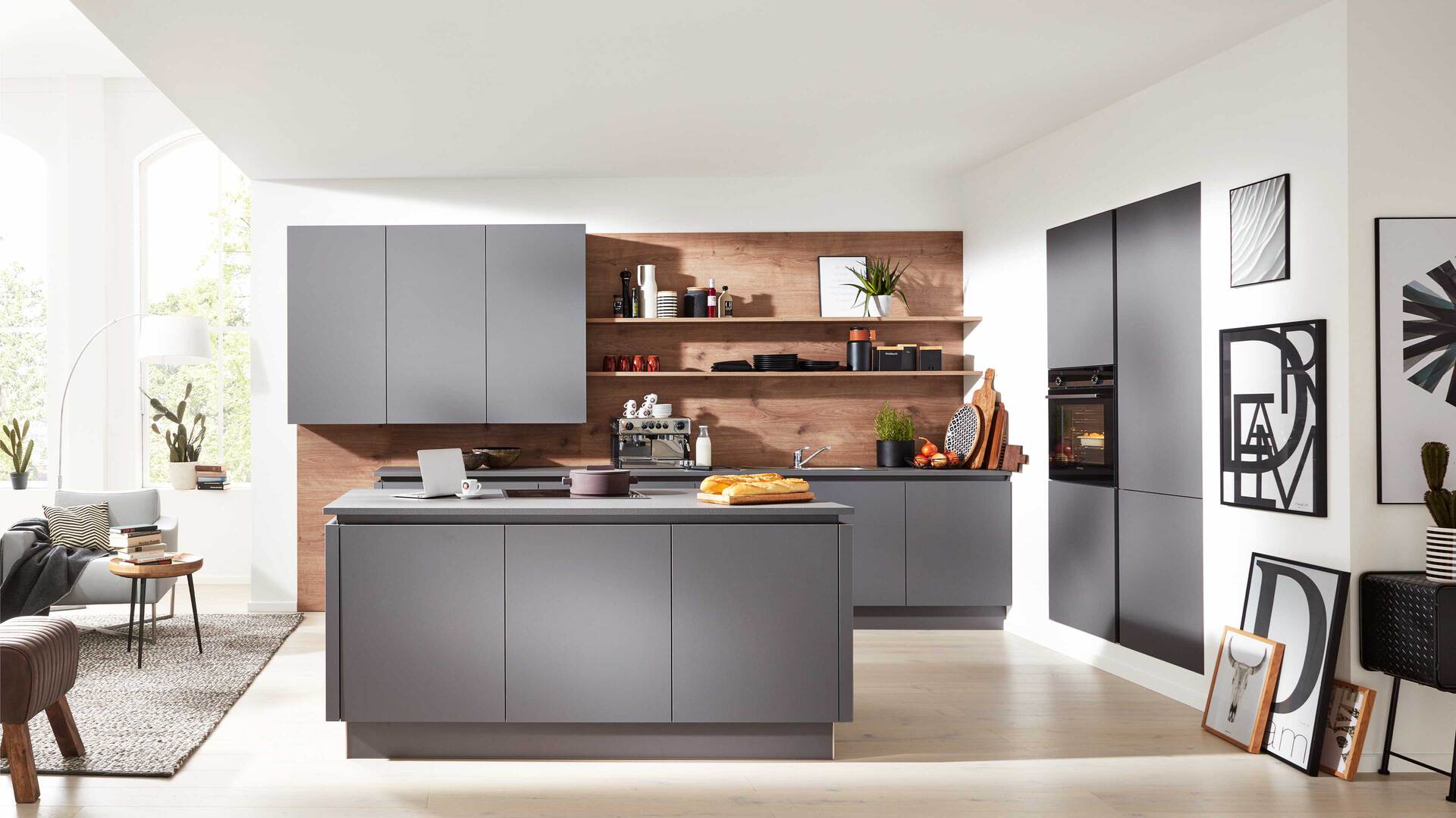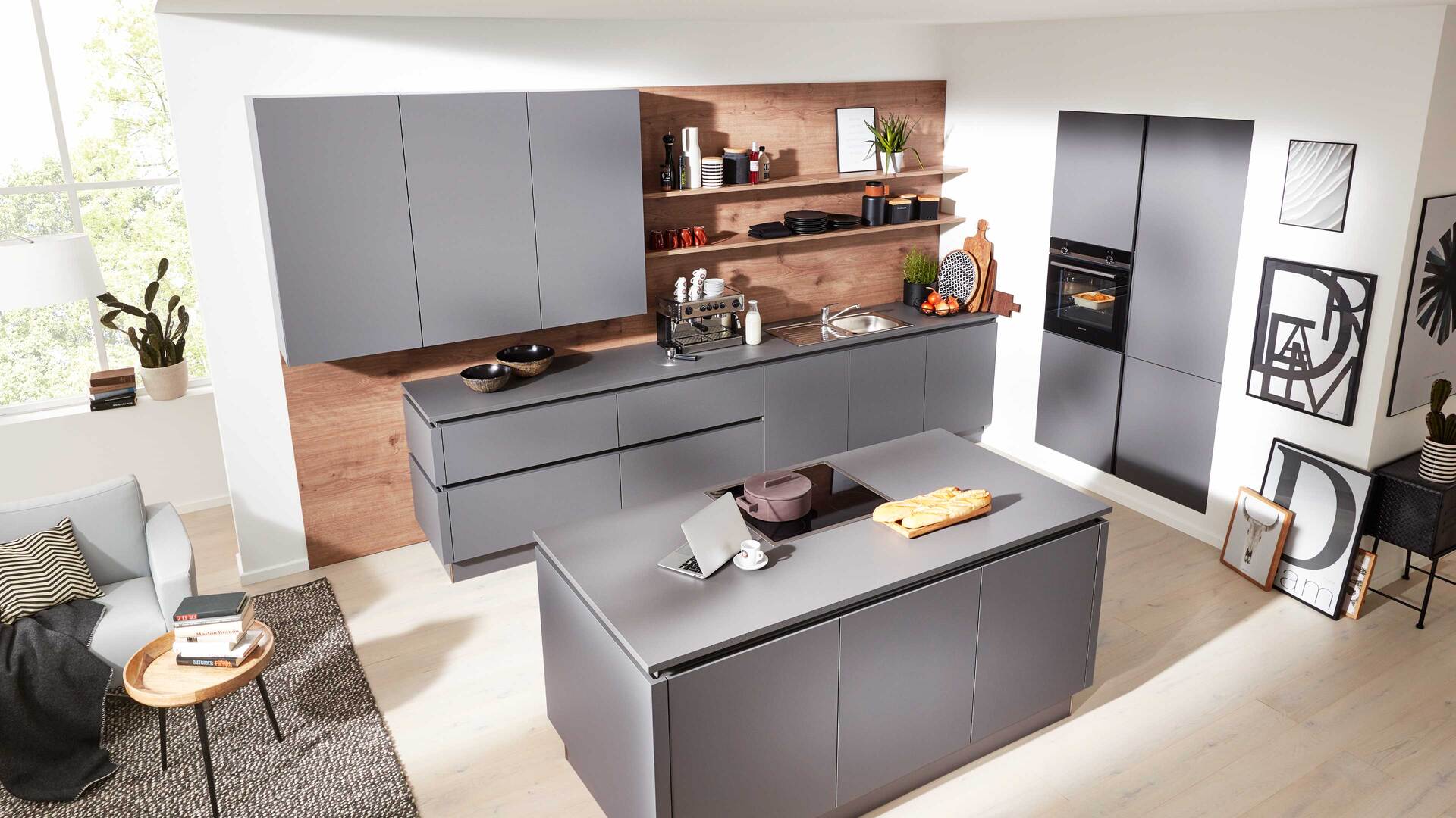 Interliving Küche Serie 3030 – deine grifflose Traumküche in Quarzgrau