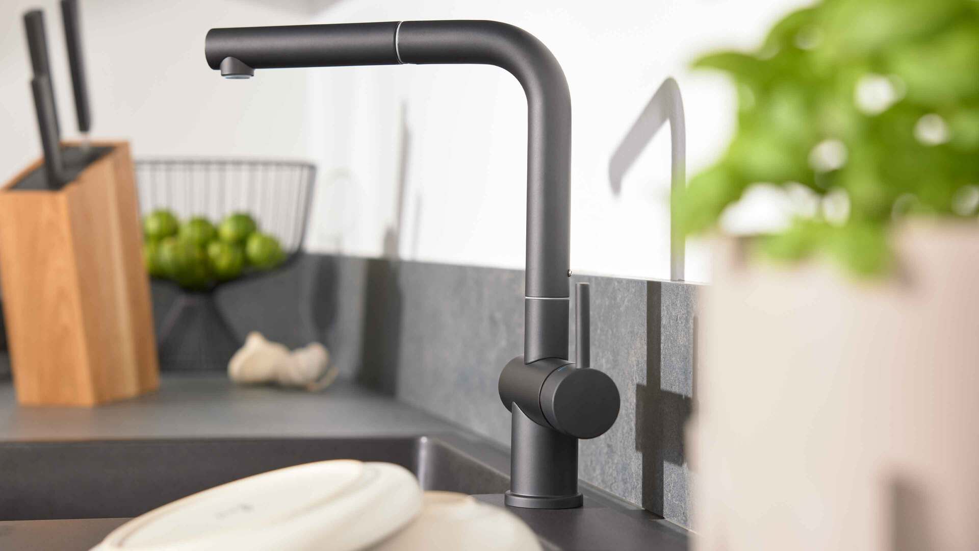 Des Weiteren umfasst die trendige Systemküche eine mattschwarze Einbauspüle mit einer ebenfalls mattschwarzen Einhebel-Mischbatterie. Optional können Sie einen leistungsstarken Geschirrspüler ergänzen. Die Interliving Küche Serie 3064 ist individuell planbar. Sie wird klimaschonend in Deutschland produziert und bietet fünf Jahre Herstellergarantie auf die Küchenmöbel.