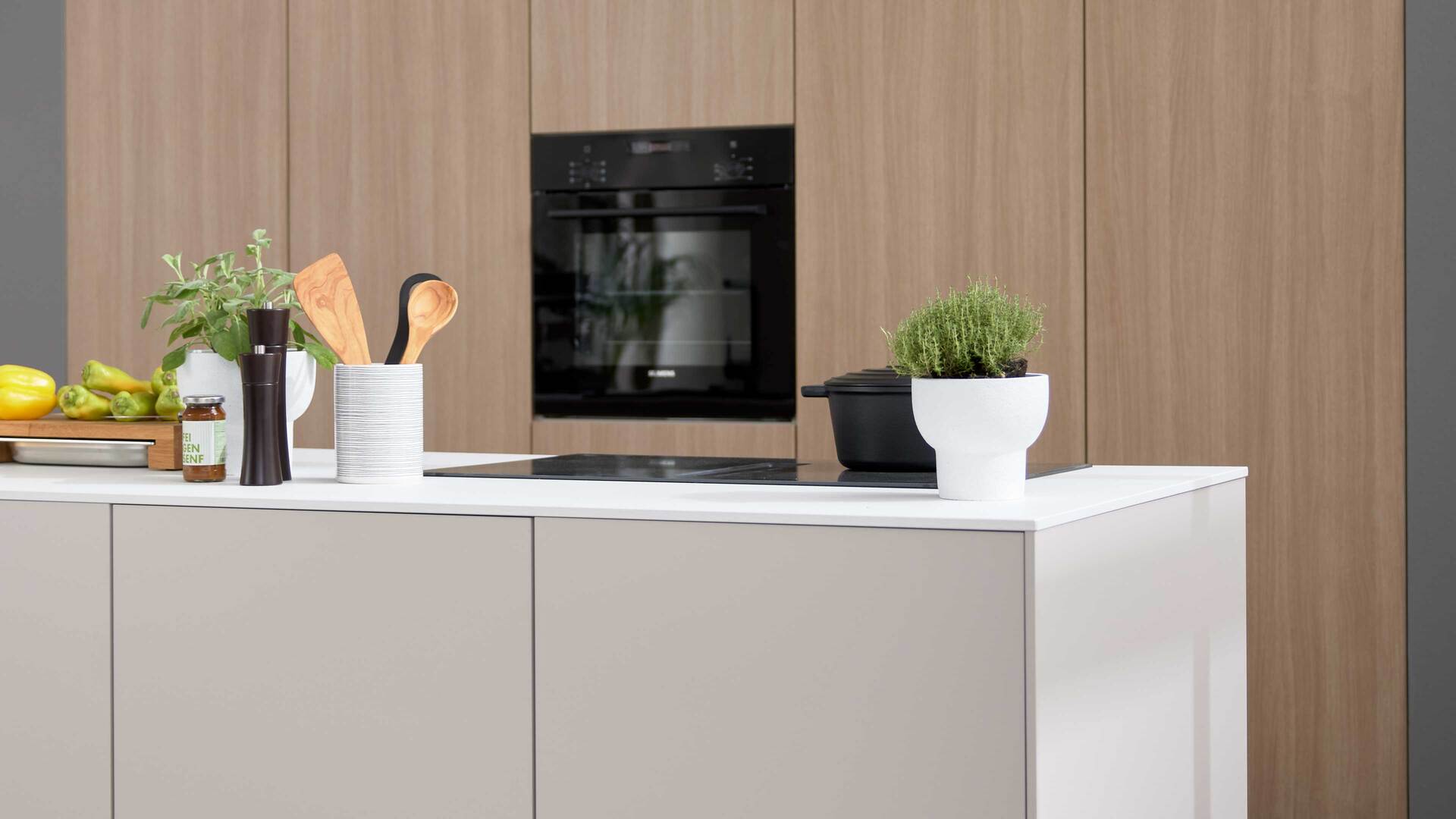 Die Interliving Küche Serie 3085 verbindet puristisches Design mit durchdachter Funktionalität und hochwertiger Technik. Mit grifflosen Fronten in warmem Saharaton und Fronten in edelmatter Natureiche Nachbildung wirkt sie modern, wohnlich und elegant. Abgerundet wird das Design durch eine weiße Arbeitsplatte, die für helle Akzente sorgt. In Deutschland hergestellt und mit 5 Jahren Herstellergarantie, bietet diese Küche langlebige Markenqualität auf höchstem Niveau.