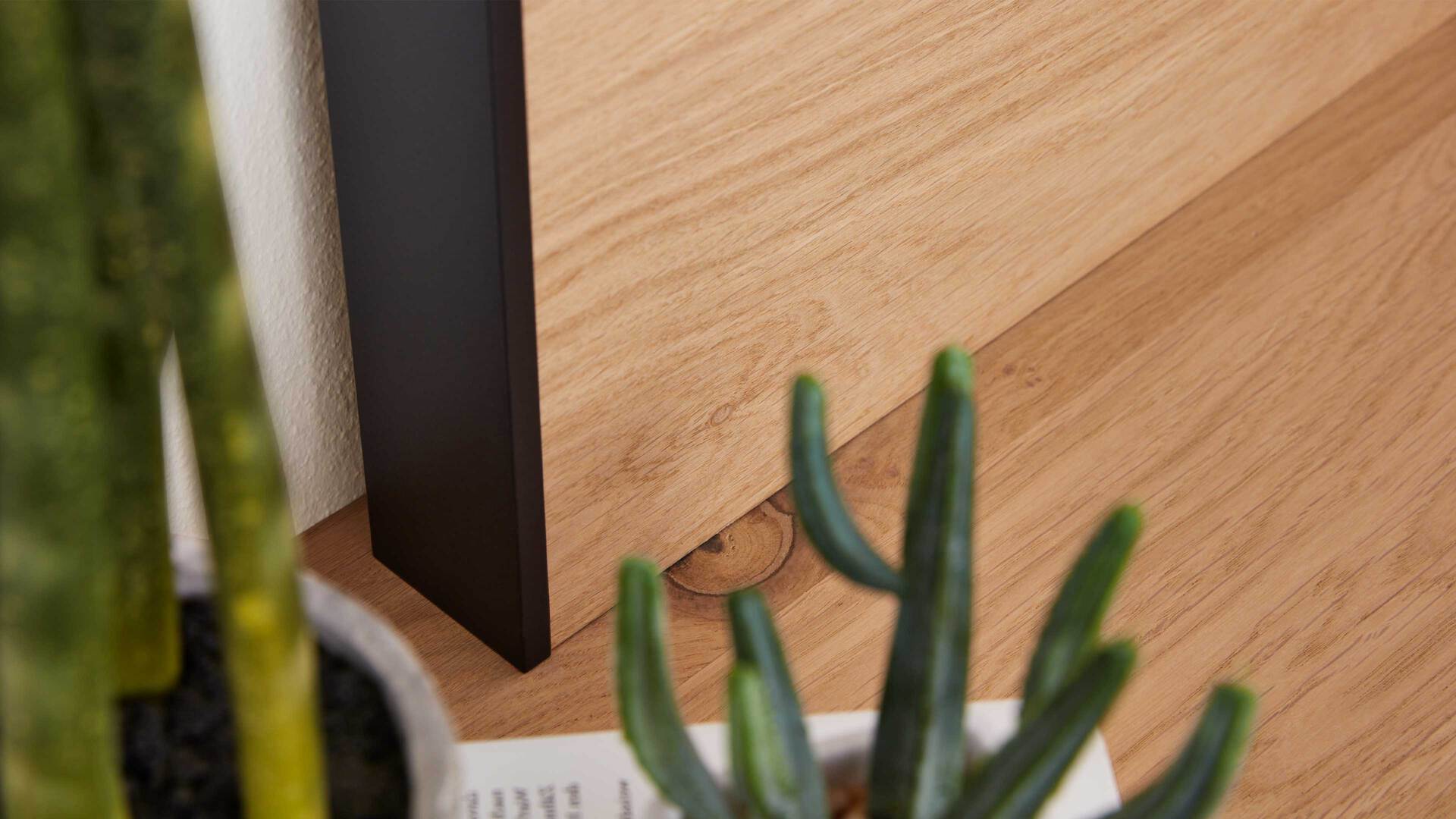 Er verströmt natürlichen Charme mit einer warmen, gemütlichen Ausstrahlung. Akzente setzen die anthrazitfarbenen Metall-Details.