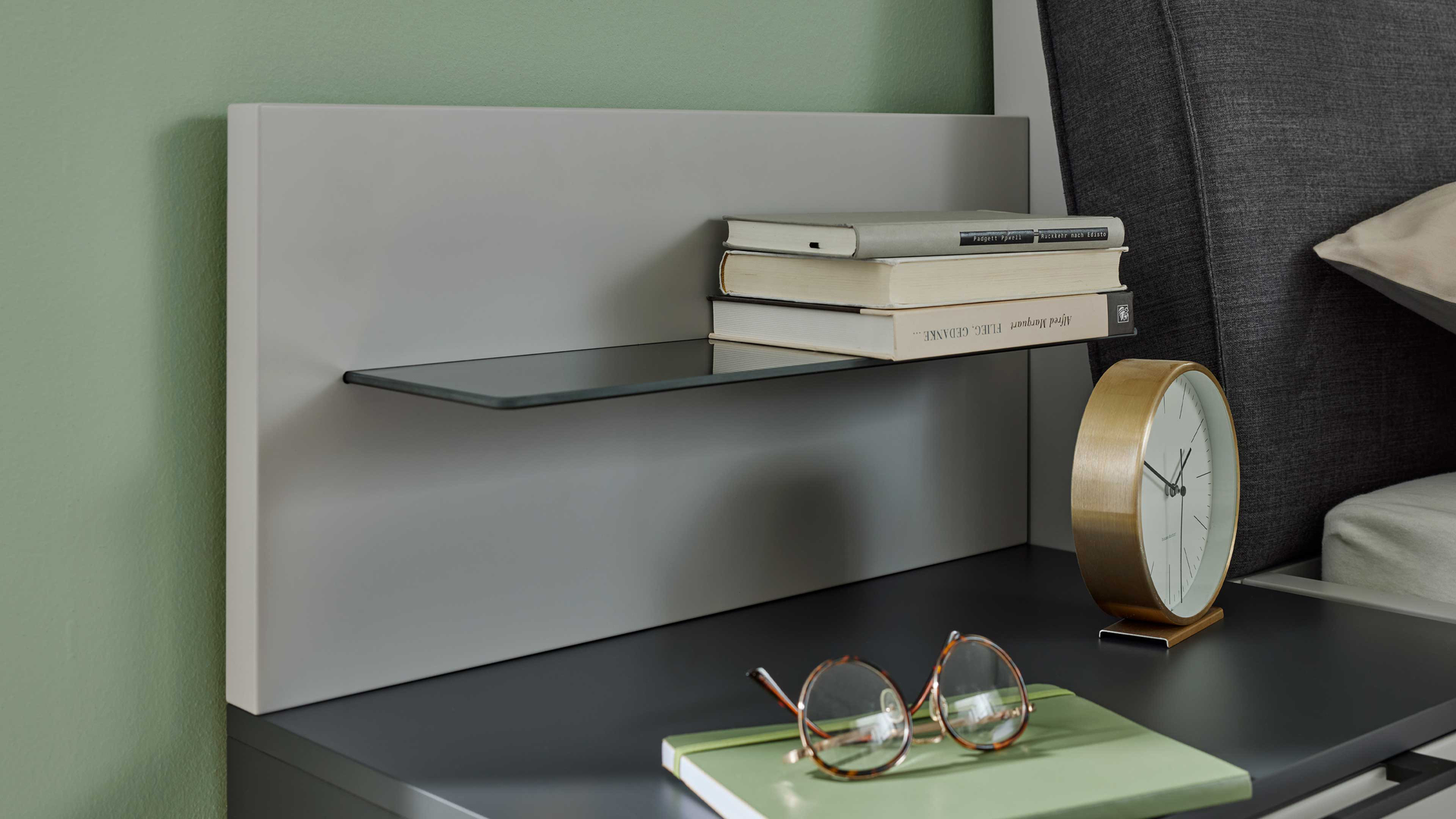 Er ist zur linksseitigen Montage auf den Nachtkommoden und -konsolen desselben Schlafzimmerprogramms vorgesehen.