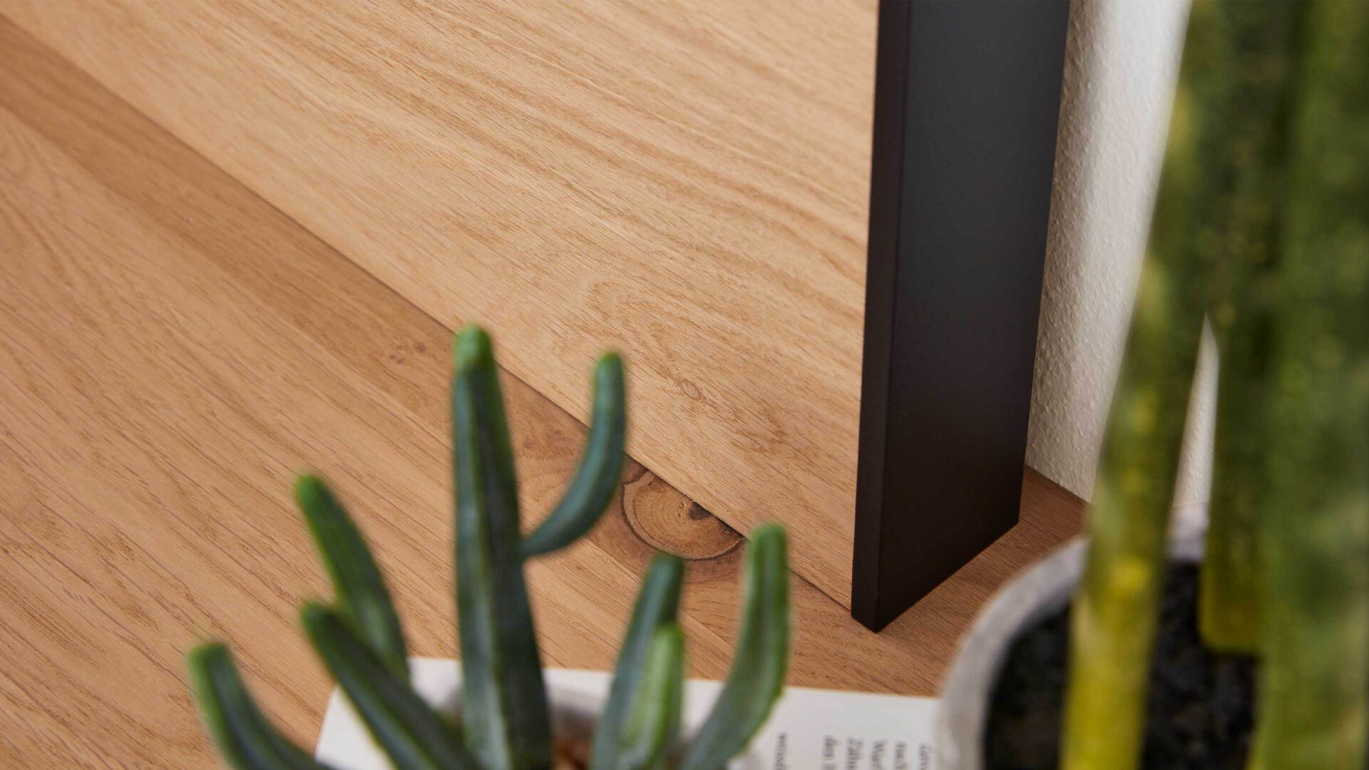 Er verströmt natürlichen Charme mit einer warmen, gemütlichen Ausstrahlung. Akzente setzen die anthrazitfarbenen Metall-Details.
