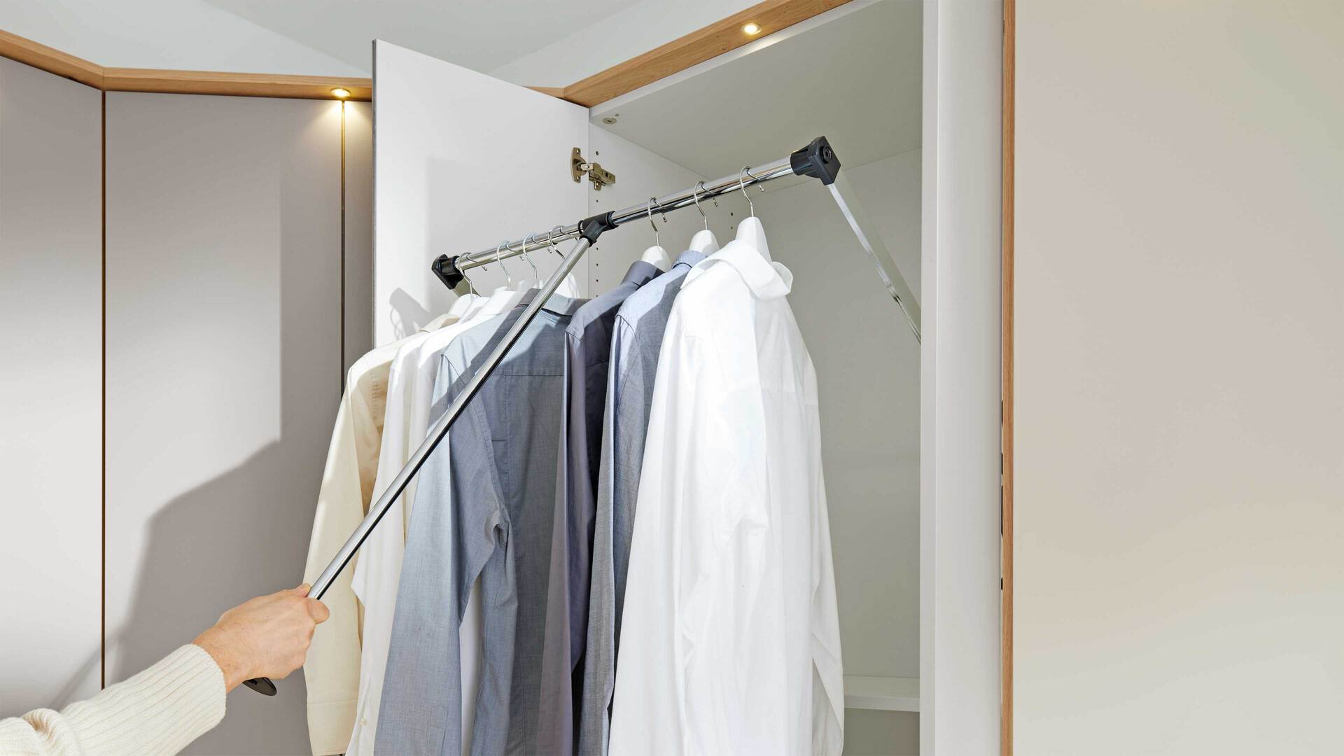 Dank der drei Kleiderstangen und sechs Kleiderböden können Sie Ihre Kleidung und sonstigen Textilien hängend und liegend unterbringen.
