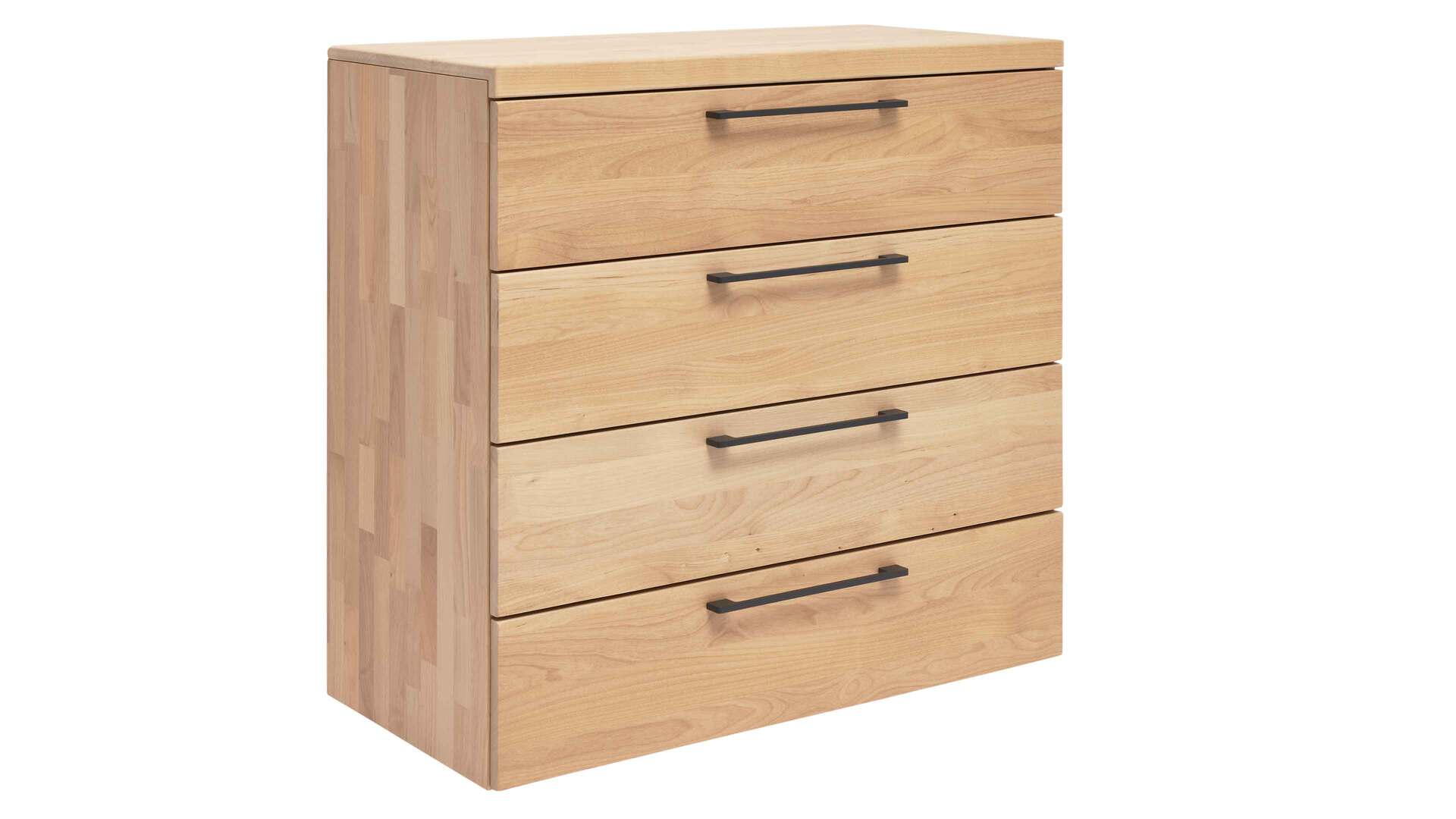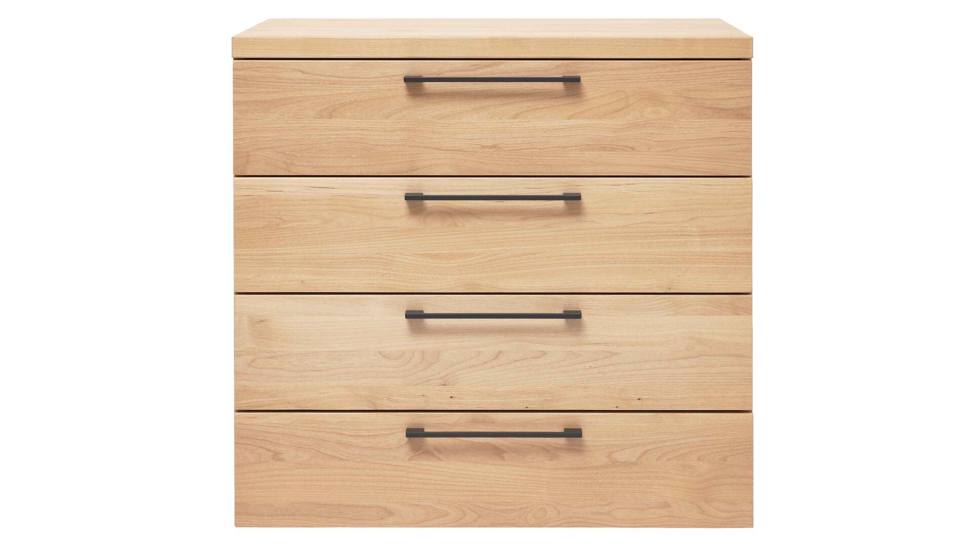 Die Schubladenkommode 2952 aus der Interliving Schlafzimmer Serie 1028 kombiniert massive kanadische Erle mit Natureffekt-Lack und carbonfarben pulverbeschichtete Metallgriffe. Diese harmonische Material- und Farbgestaltung verleiht der Kommode einen zeitlos eleganten Look mit natürlicher Wärme.