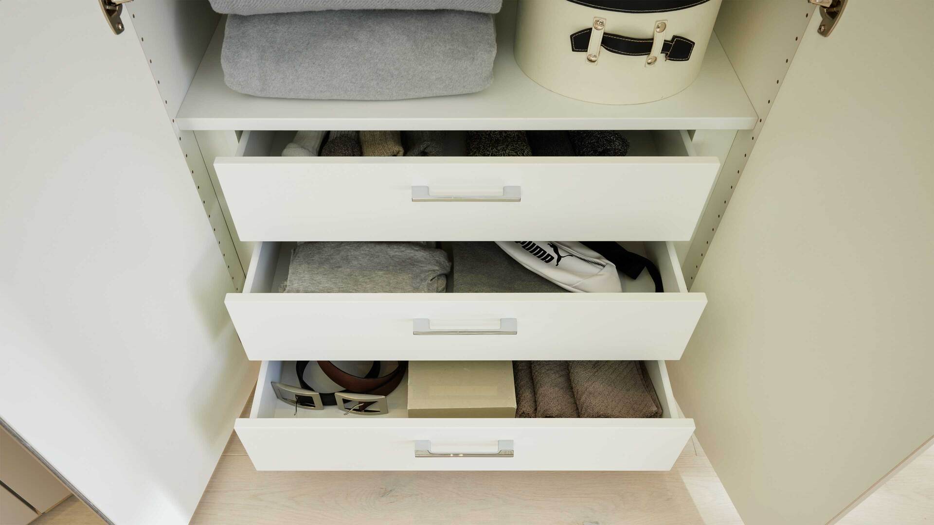 • Schranktüren mit Dämpfung und 110-Grad-Öffnungswinkel