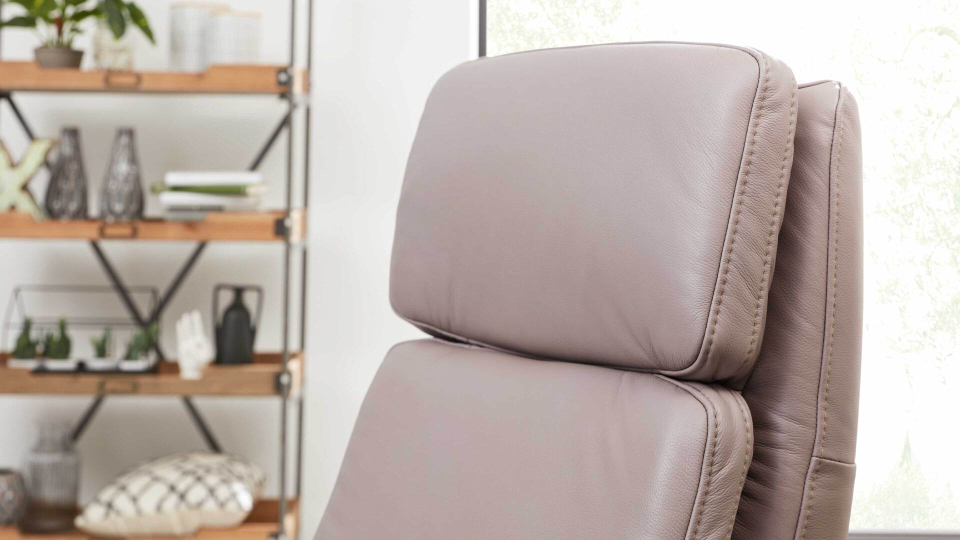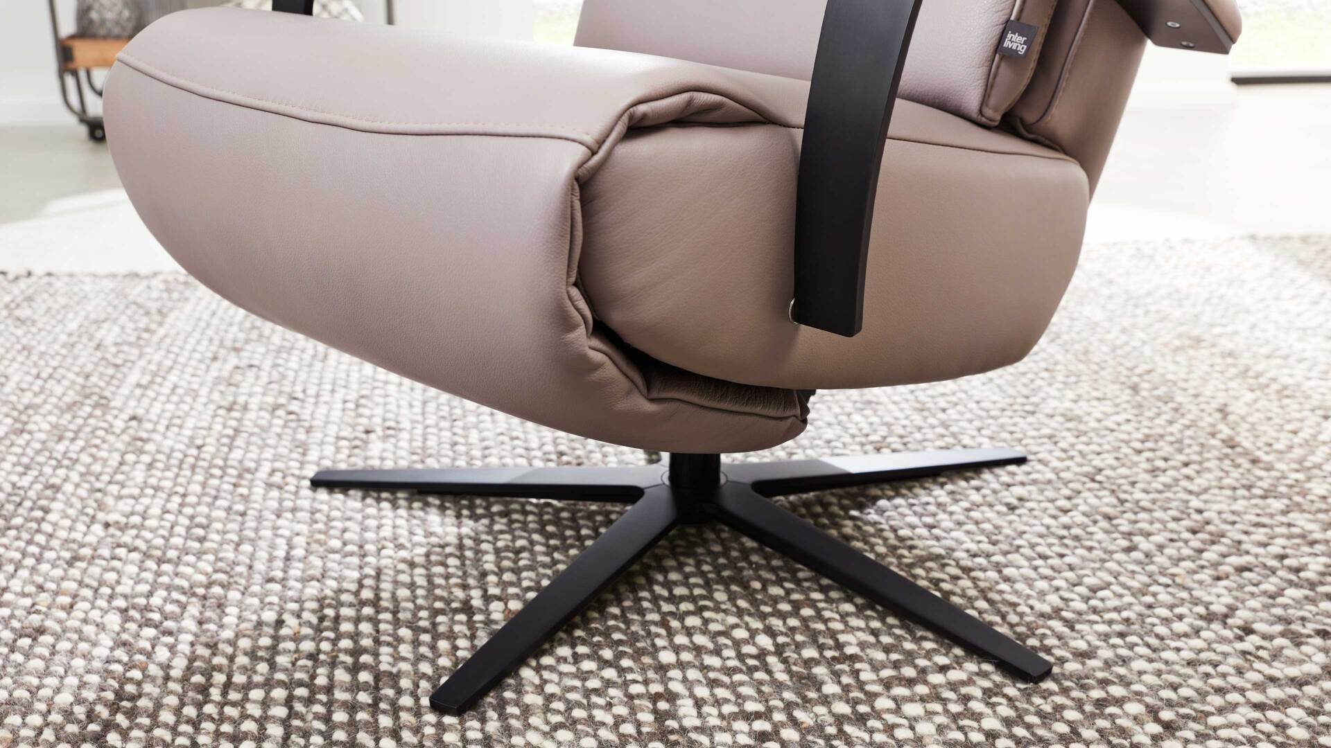 Für den ausgeprägten Sitzkomfort auf dem hochwertigen Fernsehsessel zeichnet eine Vielzahl ausgeklügelter Funktionen verantwortlich. Dank der legeren Kaltschaumpolsterung und der preisgleichen Verfügbarkeit von drei verschiedenen Sitzhärten sitzen Sie auf dem Ledersessel überaus bequem und genau so weich oder fest, wie Sie es wünschen. Die Metallarmlehne mit Polsterauflage sorgt für eine Extraportion Gemütlichkeit. Es sind zwei weitere Armlehnvarianten lieferbar.