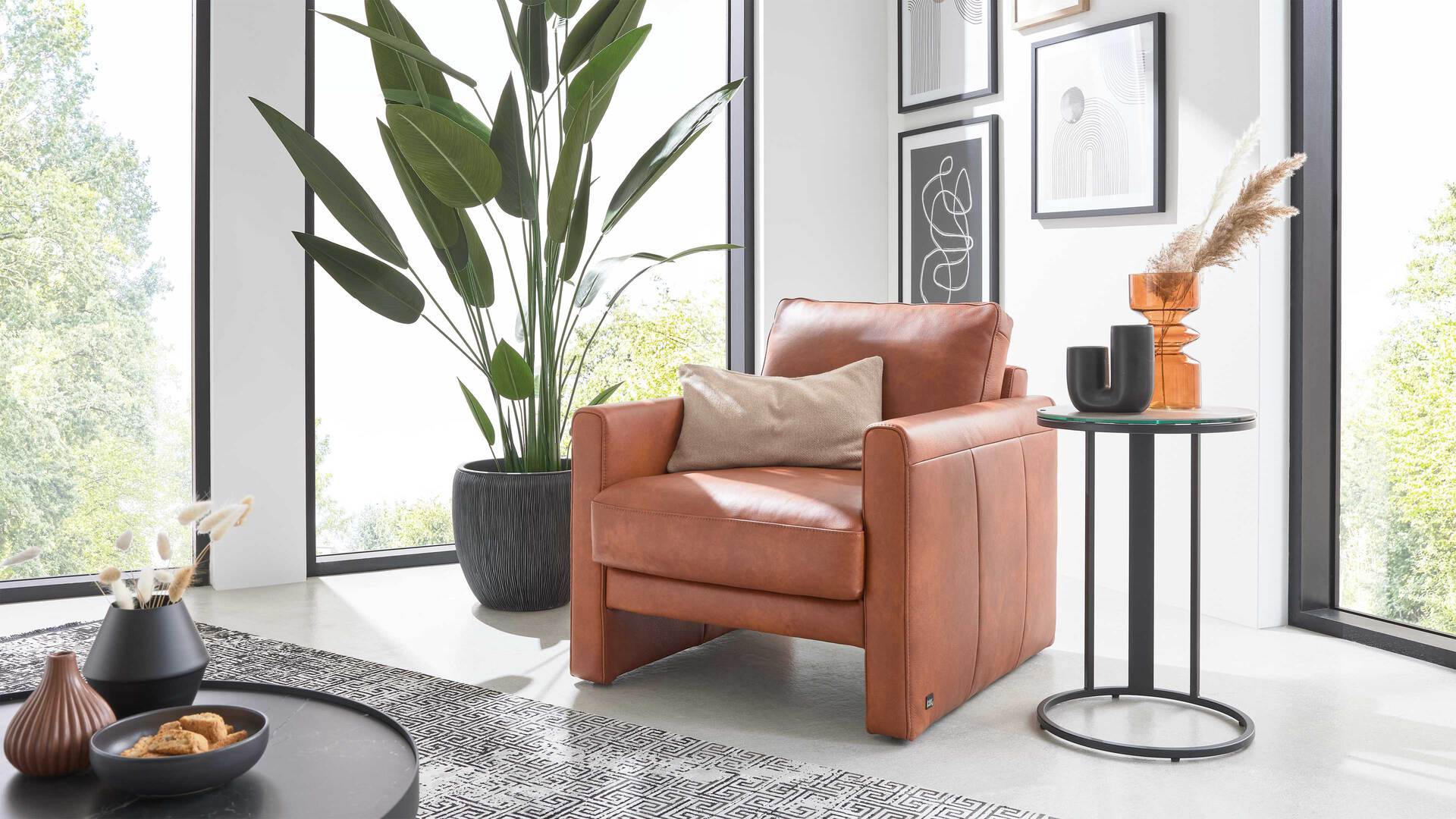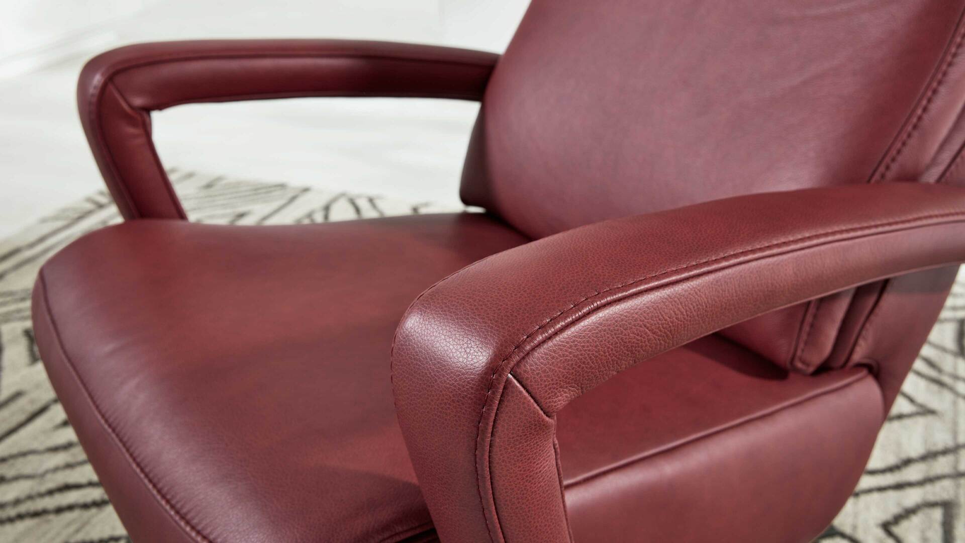 Für den ausgeprägten Sitzkomfort auf dem hochwertigen Fernsehsessel zeichnet eine Vielzahl überragender Funktionen verantwortlich. Dank der legeren Kaltschaumpolsterung in Sitzhärte F1 und der preisgleichen Verfügbarkeit von drei verschiedenen Sitzhärten sitzen Sie auf dem Ledersessel überaus bequem und genau so weich oder fest, wie Sie es wünschen. Die vollgepolsterte Leder-Armlehne sorgt für eine Extraportion Gemütlichkeit. Es sind auch noch zwei weitere Armlehnvarianten lieferbar.