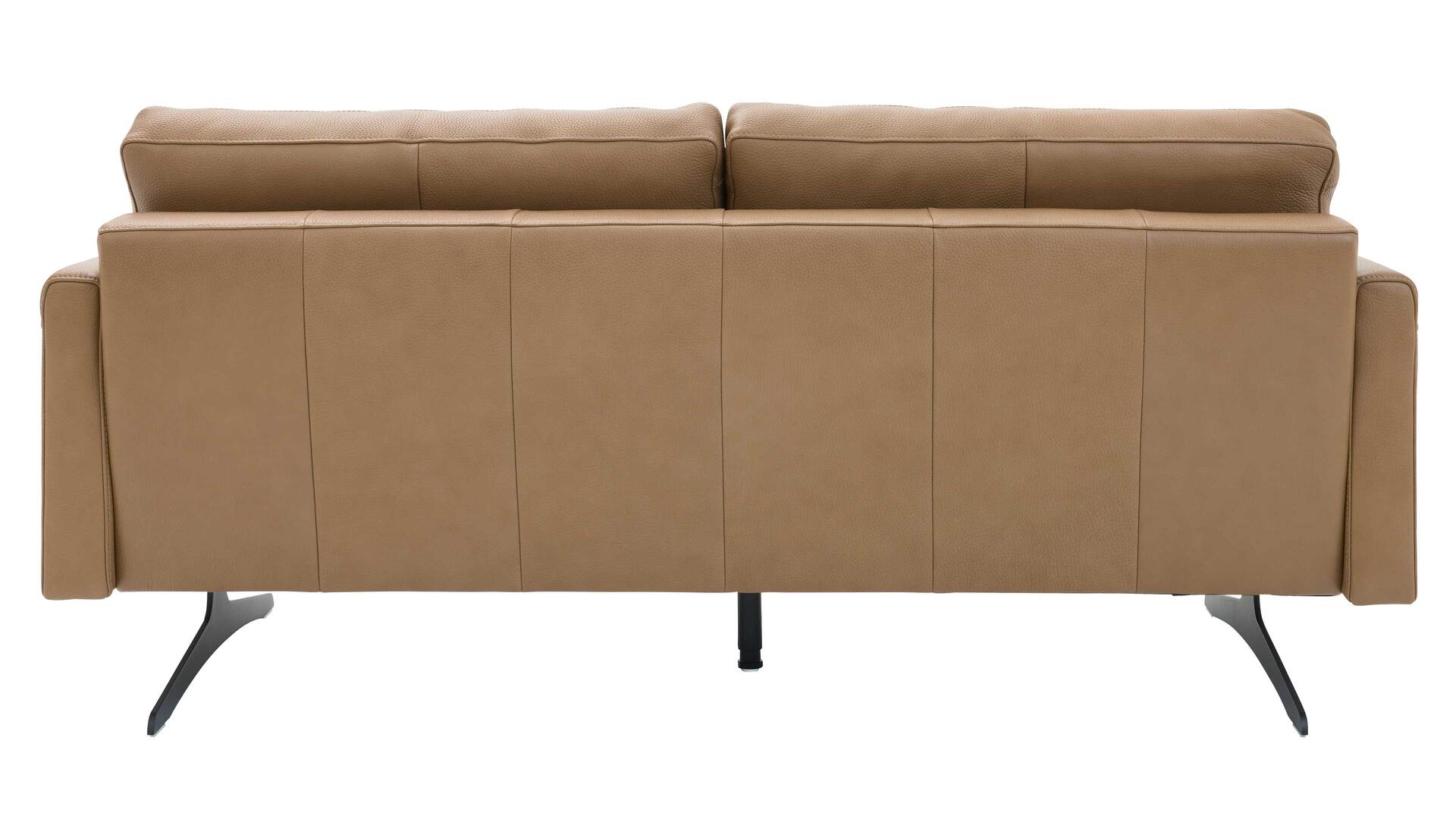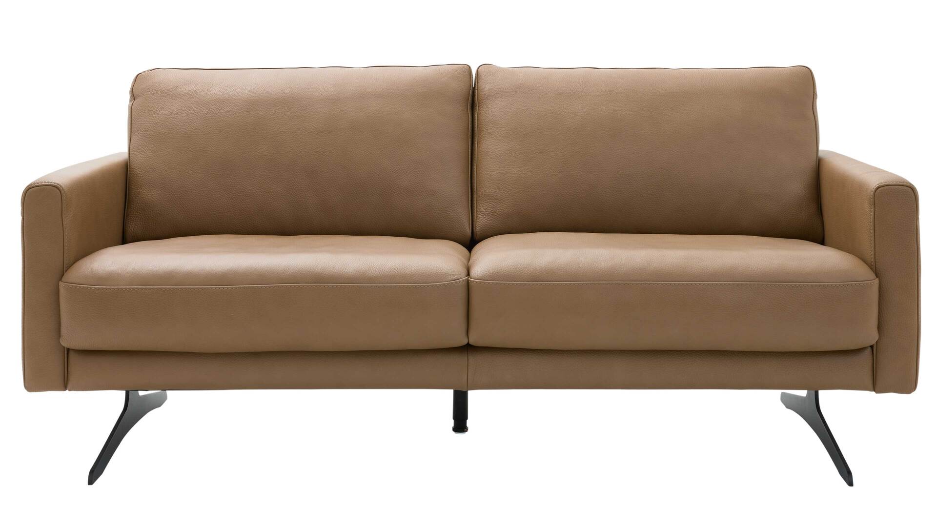 Sein hochwertiger Bezug aus fangofarbenem LongLife-Leder verleiht dem Zweisitzer eine elegante, warme Ausstrahlung. Die schmalen kubischen Armlehnen SA betonen die moderne Formsprache, während die mattschwarz pulverbeschichteten Metallkufen (F08-M99) das klare Design mit urbaner Note vollenden. Eine stilvolle Lösung für alle, die auf Ausdruck und Qualität setzen.