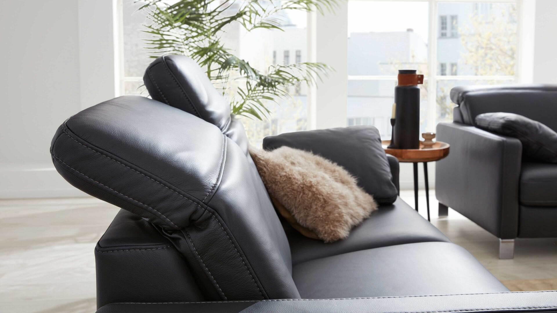Dank des voll durchgeschäumten Federkerns und der drei preisgleich erhältlichen Sitzhärten genießen Sie auf der edlen Ledercouch extra weichen Sitzkomfort. Dazu trägt auch der Rücken mit Kaltschaumpolsterung bei. Die Sitzhöhe beträgt ca. 48 cm, bei einer Sitztiefe von ca. 53 cm. Insgesamt misst das Sofa ca. 218 x 84-106 x 104 cm (LxHxT). Funktionale Highlights sind die Kopfteilverstellung und die bequemen Armlehnen, die Ihnen in sechs Varianten zur Wahl stehen.