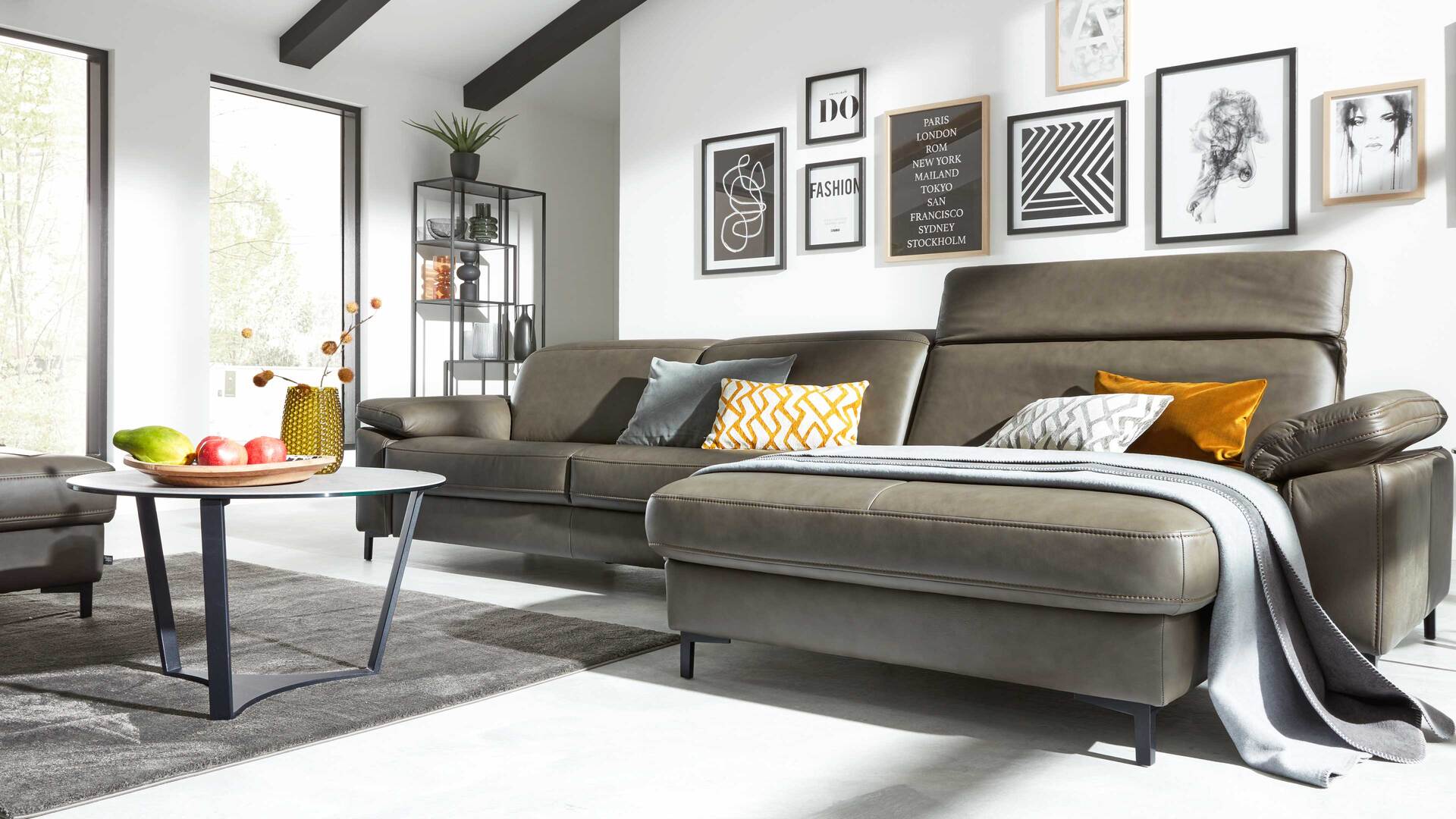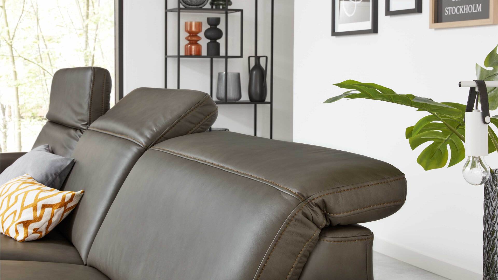 Die Eckgarnitur setzt sich aus dem XL-Canape CanGXLLKV mit Armlehne links und dem Dreisitzer 3KV mit Armlehne rechts zusammen. Damit bietet sie reichlich Entspannungsfläche. Die Sitzhöhe beträgt ca. 46 cm, bei einer Sitztiefe von ca. 53 cm. Insgesamt hat die Ledercouch eine Stellfläche und ein Schenkelmaß von ca. 176 x 347 cm (LxB, von links nach rechts). Funktionale Highlights sind die Kopfteilverstellungen und die bequemen Armlehnen, die Ihnen in sechs Varianten zur Wahl stehen.