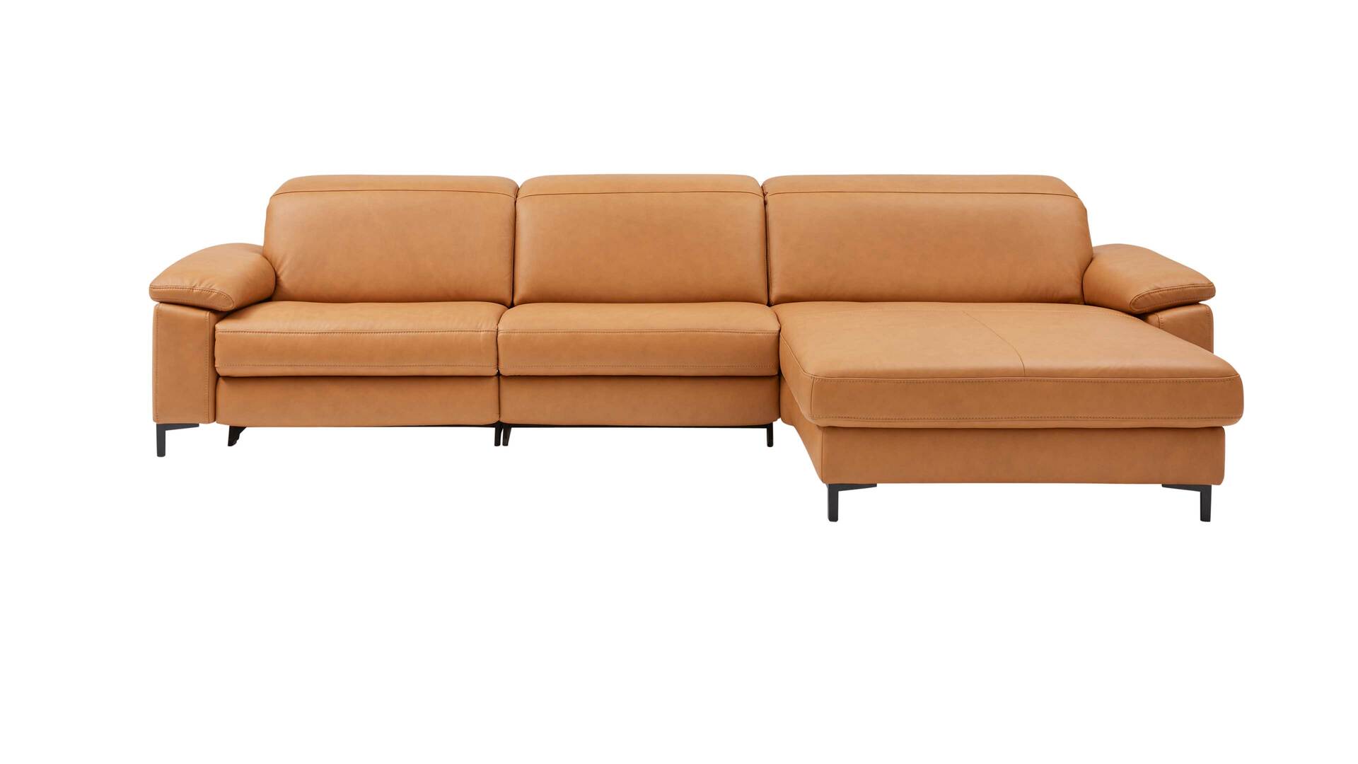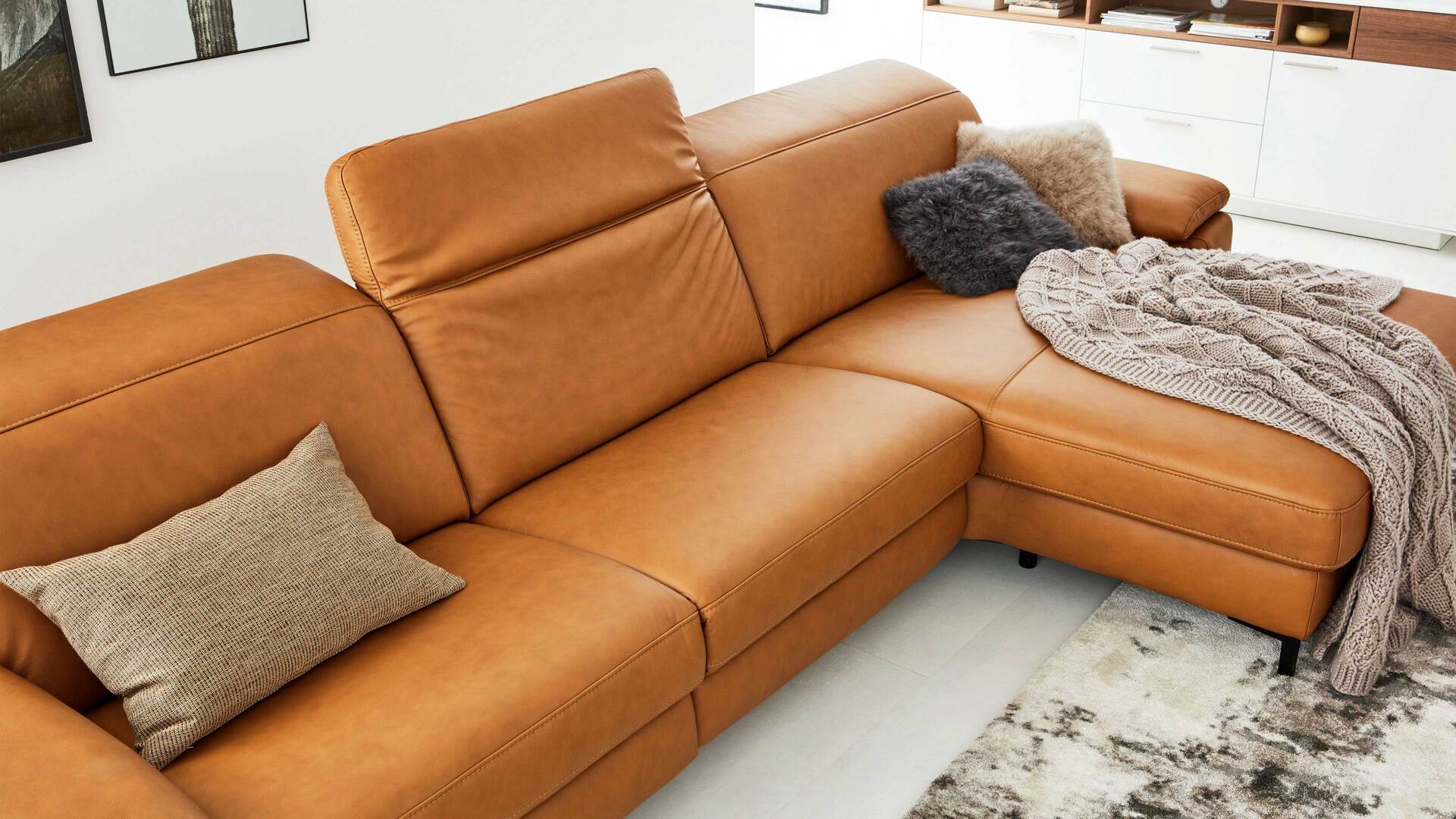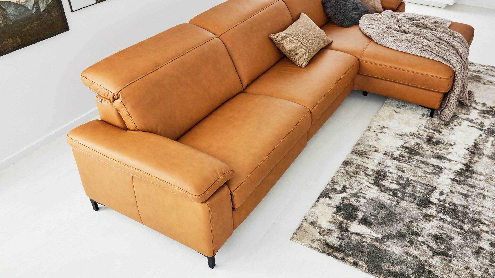 Das stilvolle Ecksofa 3LKV-CanGXLRKV aus der Interliving Sofa Serie 4054 verbindet modernes Design mit hochwertigem Komfort und einem durchdachten Funktionskonzept. Der Bezug aus kurkumafarbenem LongLife-Echtleder, kombiniert mit eleganten Details und einer manuellen Kopfpolsterverstellung mit mehrfach verstellbarem Rasterbeschlag, macht diese Garnitur zur idealen Wahl für stilvolle Wohnkonzepte. Der Hersteller gewährt auf dieses Qualitätsmöbel 5 Jahre Herstellergarantie.