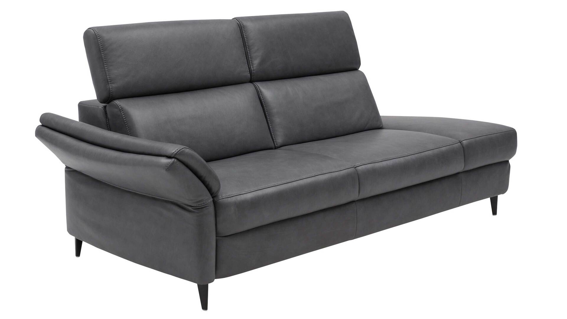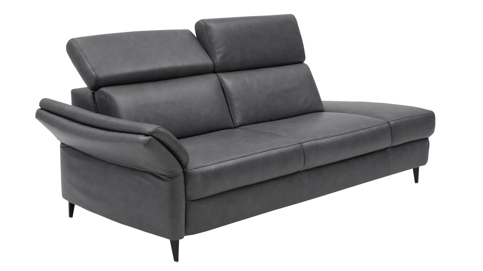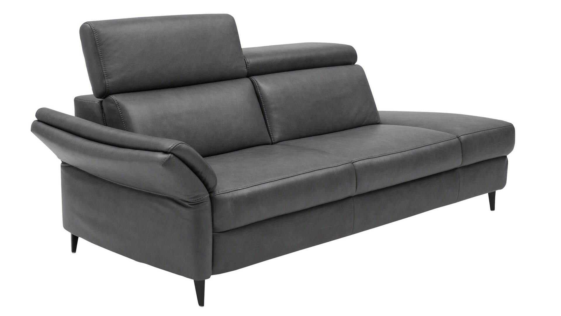 Die Récamiere 2,5RECRKV aus der Interliving Sofa Serie 4055 verbindet stilvolle Ästhetik mit einem hohen Maß an Komfort. Der edle anthrazitfarbene LongLife-Lederbezug mit pigmentierter Oberfläche und softigem Griff verleiht dem Möbelstück eine moderne, zugleich wohnlich-warme Ausstrahlung. Die puristisch-schwarzen Aluminiumfüße unterstreichen den klaren Look.