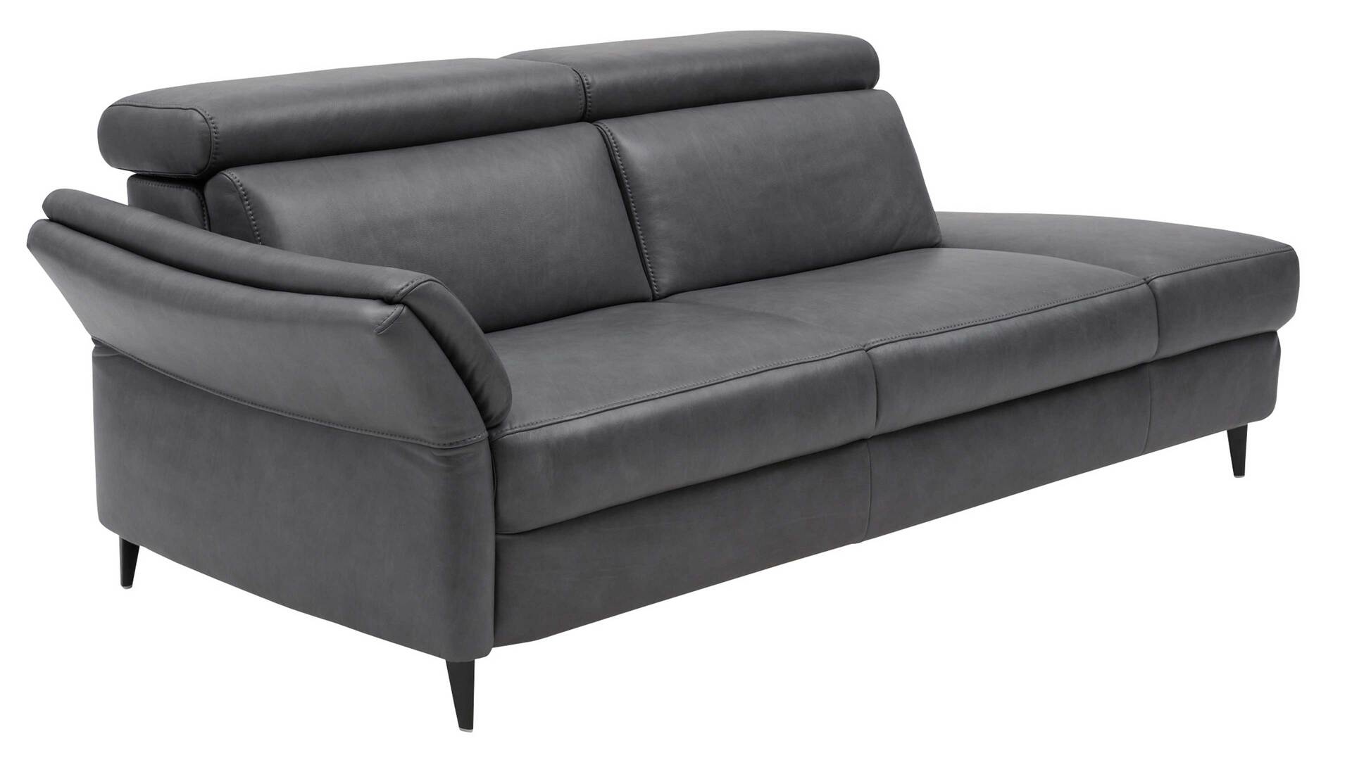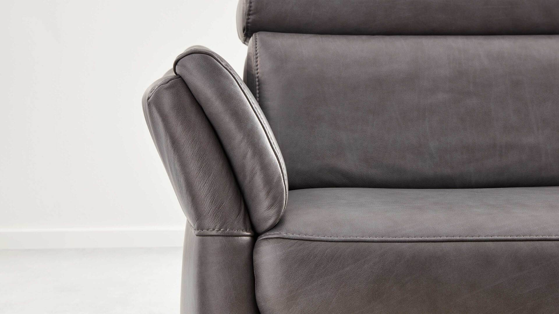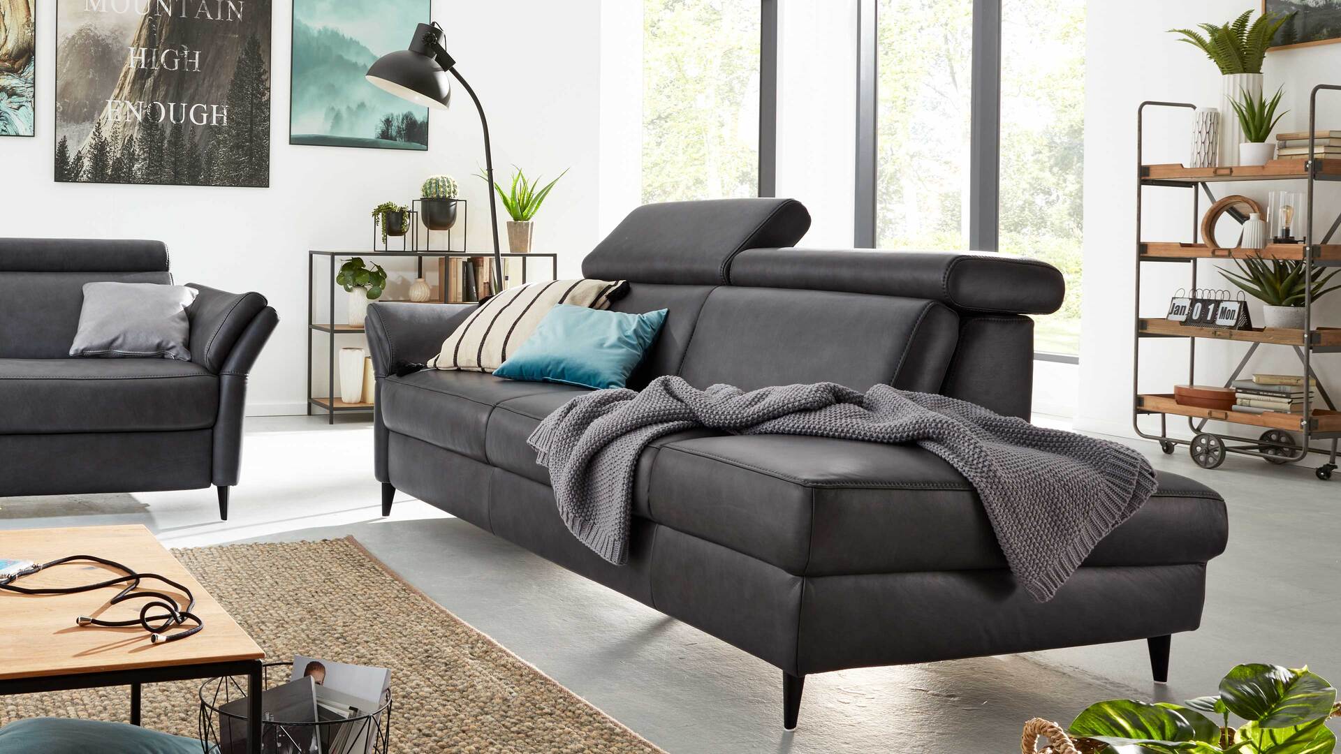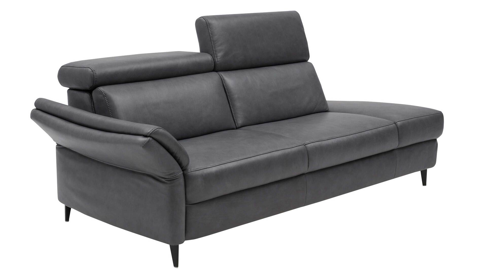 Die Récamiere 2,5RECRKV aus der Interliving Sofa Serie 4055 verbindet stilvolle Ästhetik mit einem hohen Maß an Komfort. Der edle anthrazitfarbene LongLife-Lederbezug mit pigmentierter Oberfläche und softigem Griff verleiht dem Möbelstück eine moderne, zugleich wohnlich-warme Ausstrahlung. Die puristisch-schwarzen Aluminiumfüße unterstreichen den klaren Look.