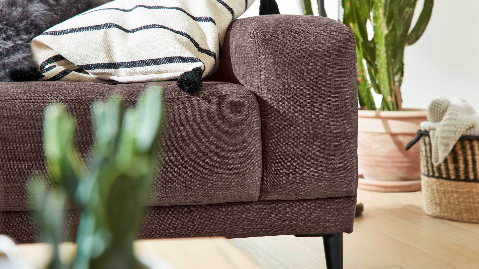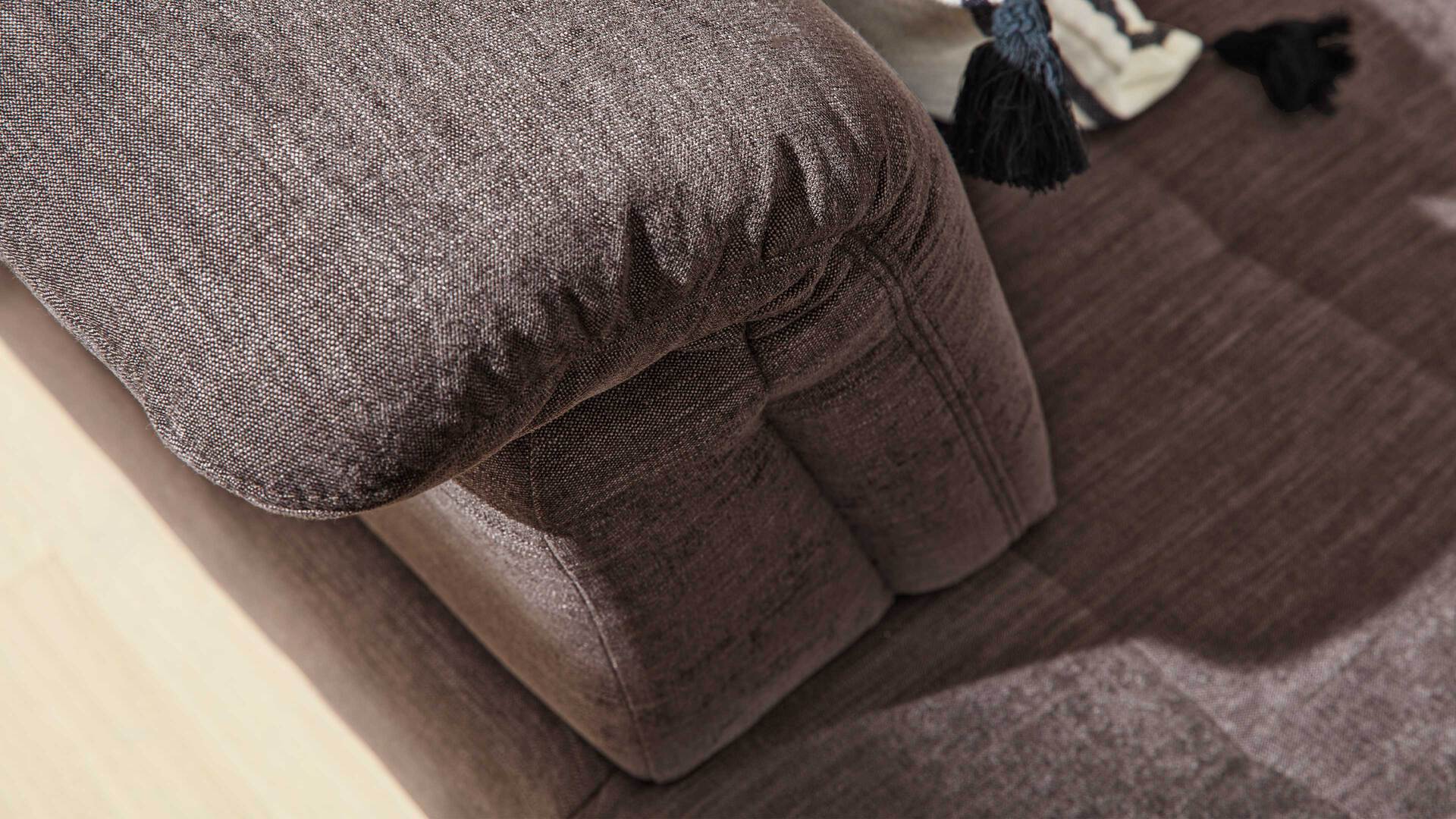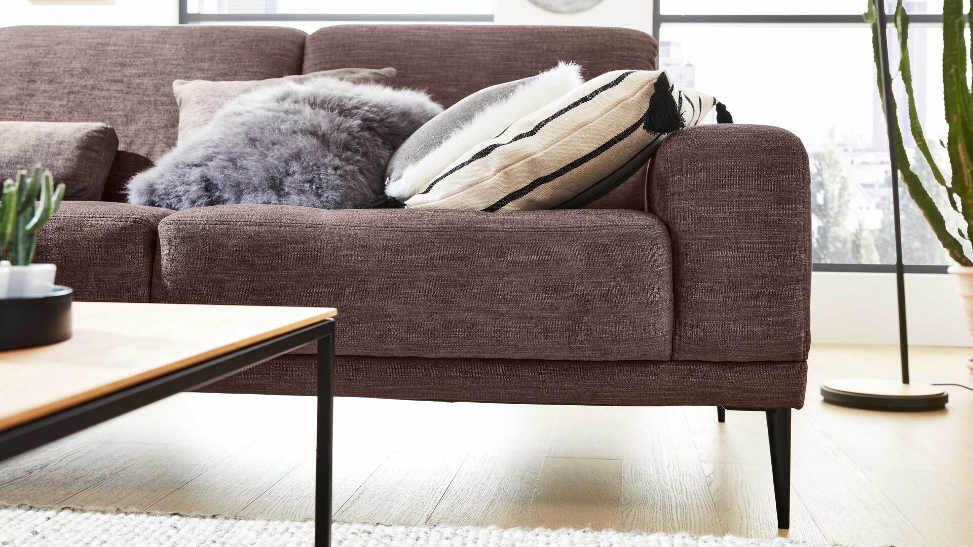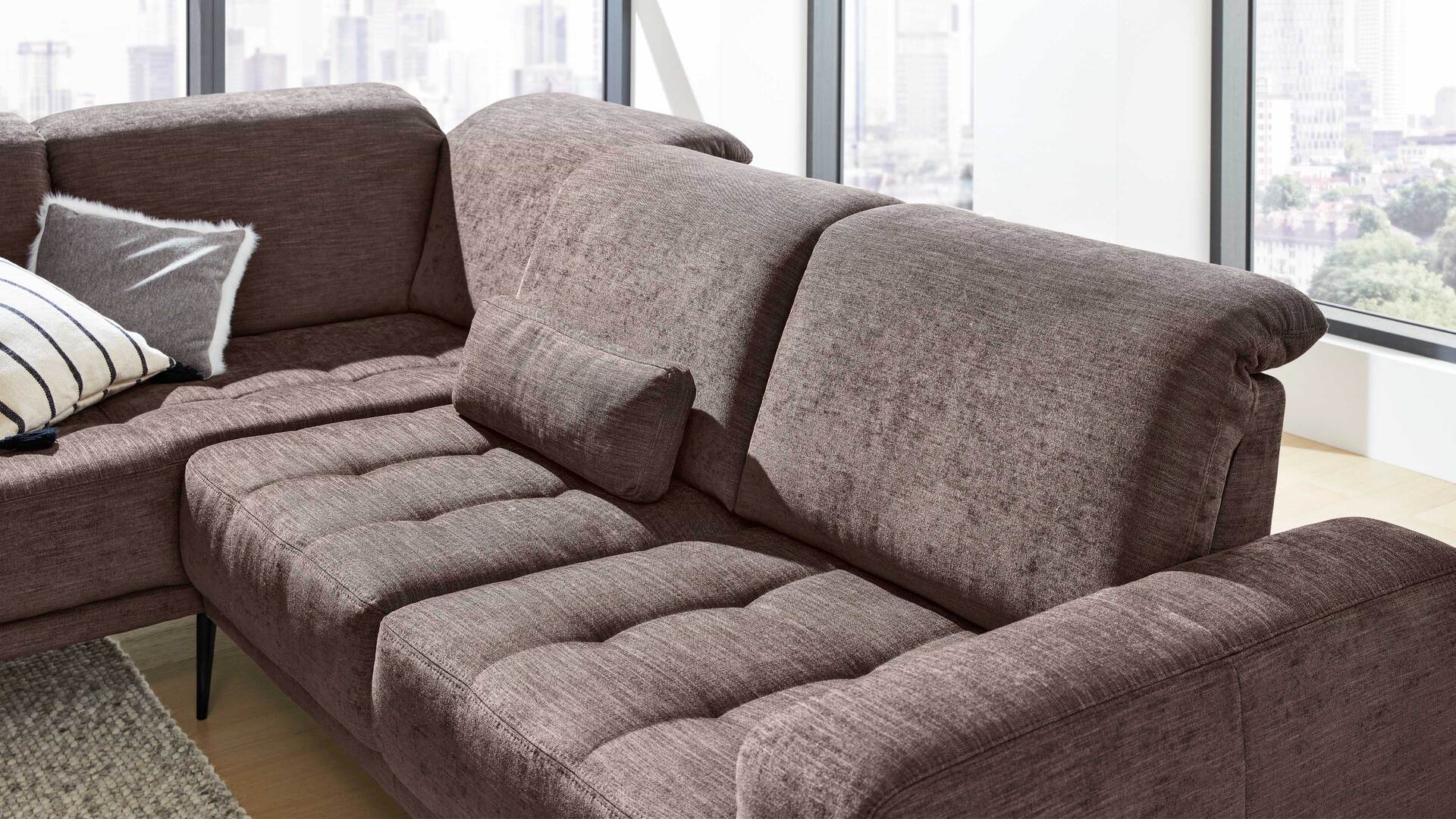 Das Ecksofa aus der Interliving Sofa Serie 4250 verbindet moderne Klarheit mit wohnlicher Wärme. Mit Metallfüßen 4.37 in elegantem Schwarz, dem hochwertigen braunen Bezug und der markant gesteppten Sitzfläche bringt dieses Polstermöbel einen stilvollen Clean-Chic in Ihr Wohnzimmer. Die Ton-in-Ton-Doppelnaht unterstreicht das harmonische Erscheinungsbild – alternativ ist auch eine Kontrastnaht wählbar. Hinweis: Der Rücken ist nicht im Originalstoff bezogen.
