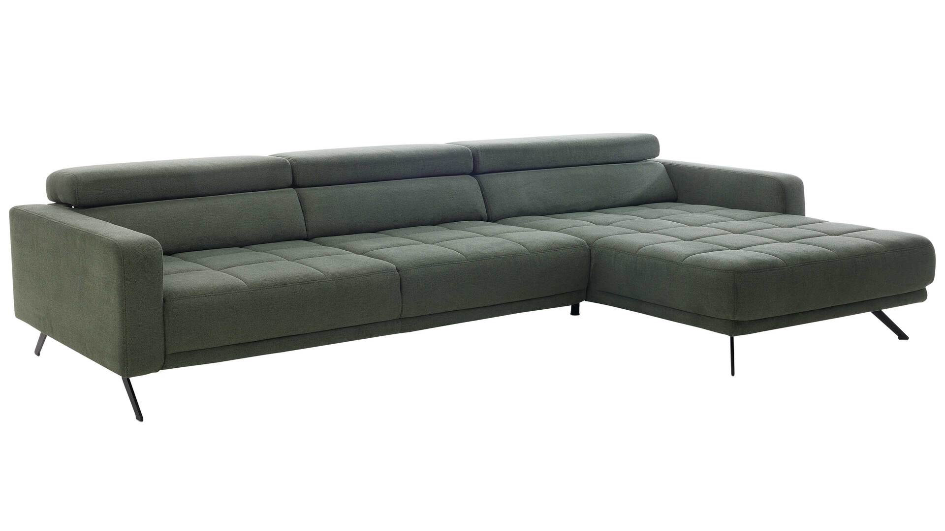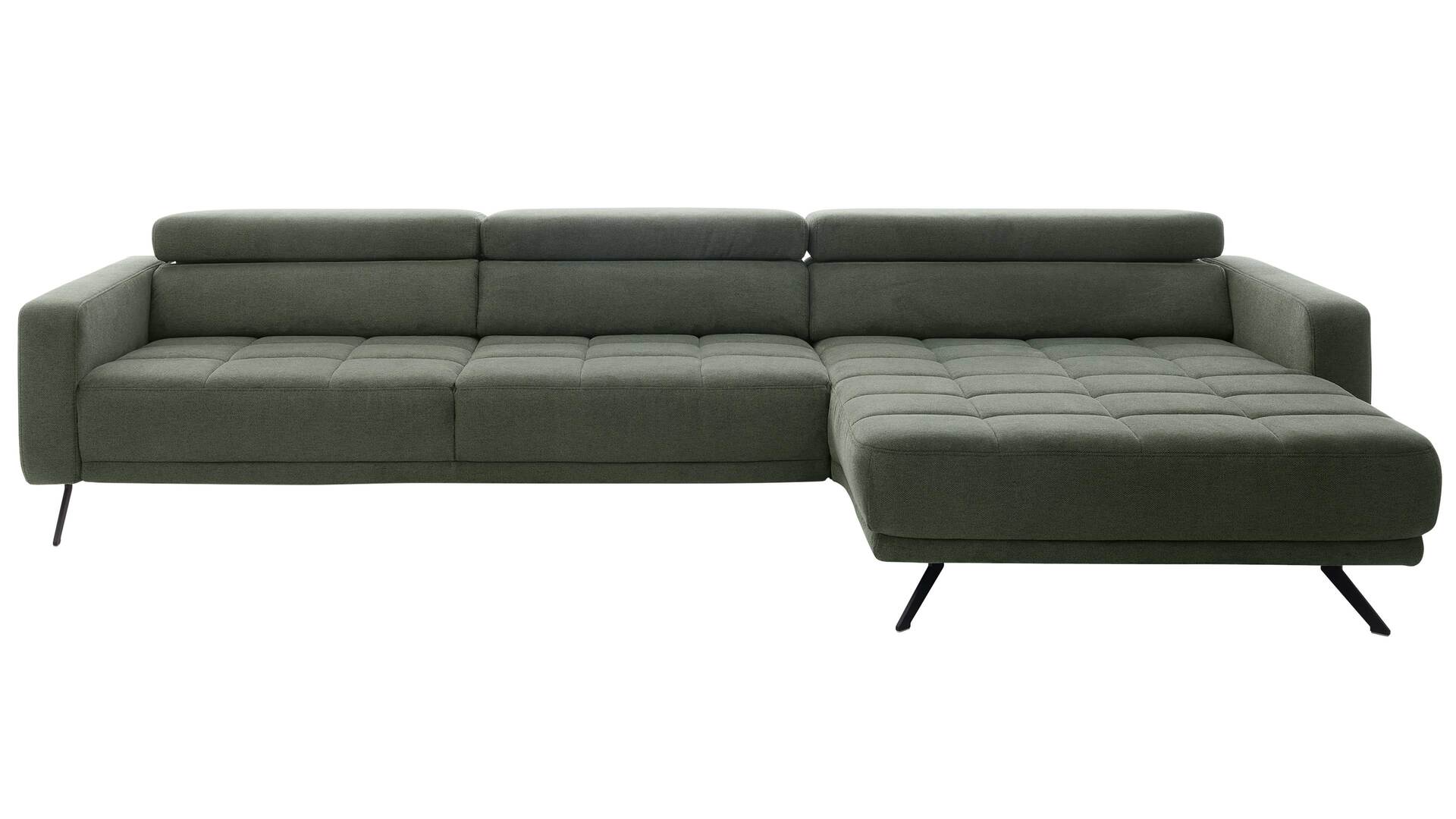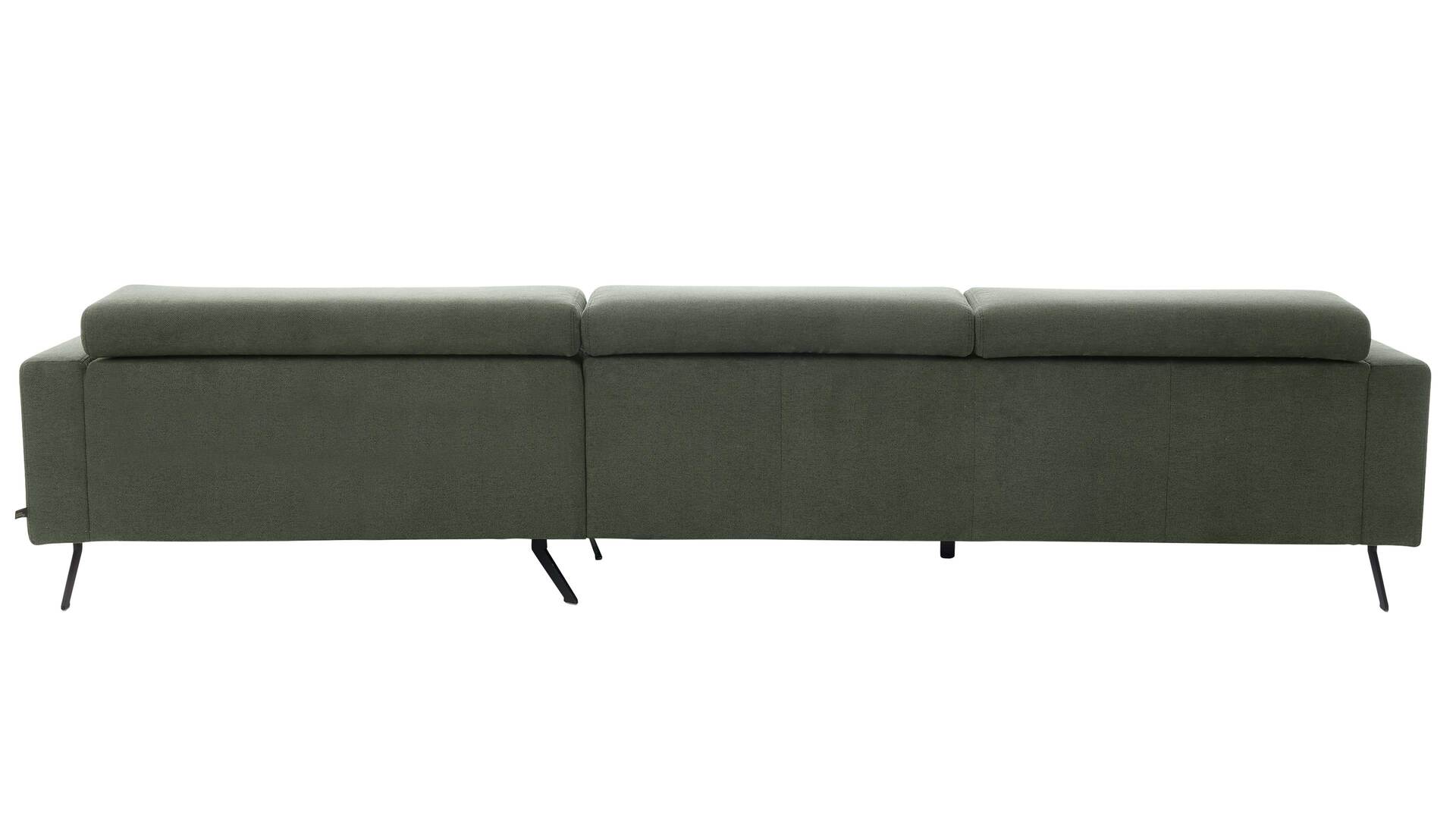 Die Kombination aus Dreisitzer mit Armlehne links und Canapé mit Armlehne rechts bringt es auf ein Schenkelmaß von ca. 323 x 190 cm (BxL, von links nach rechts). So hast du reichlich Platz zum Sitzen, Liegen und Relaxen. Mit einer Sitzhöhe von ca. 42 cm und einer Sitztiefe von ca. 67 cm genießt du ergonomischen Komfort. Mattschwarze Metallfüße runden das Design modern ab und verleihen der Couchlandschaft eine leichte, schwebende Optik.