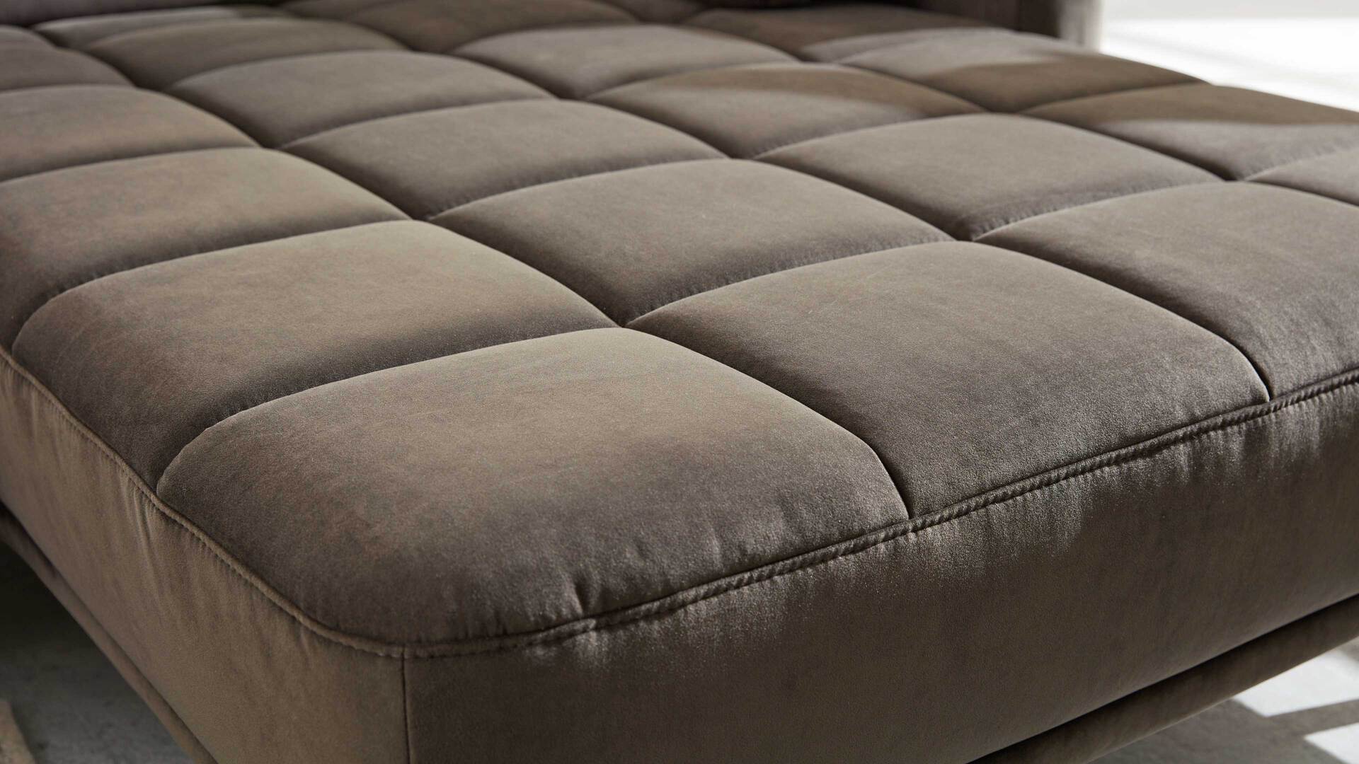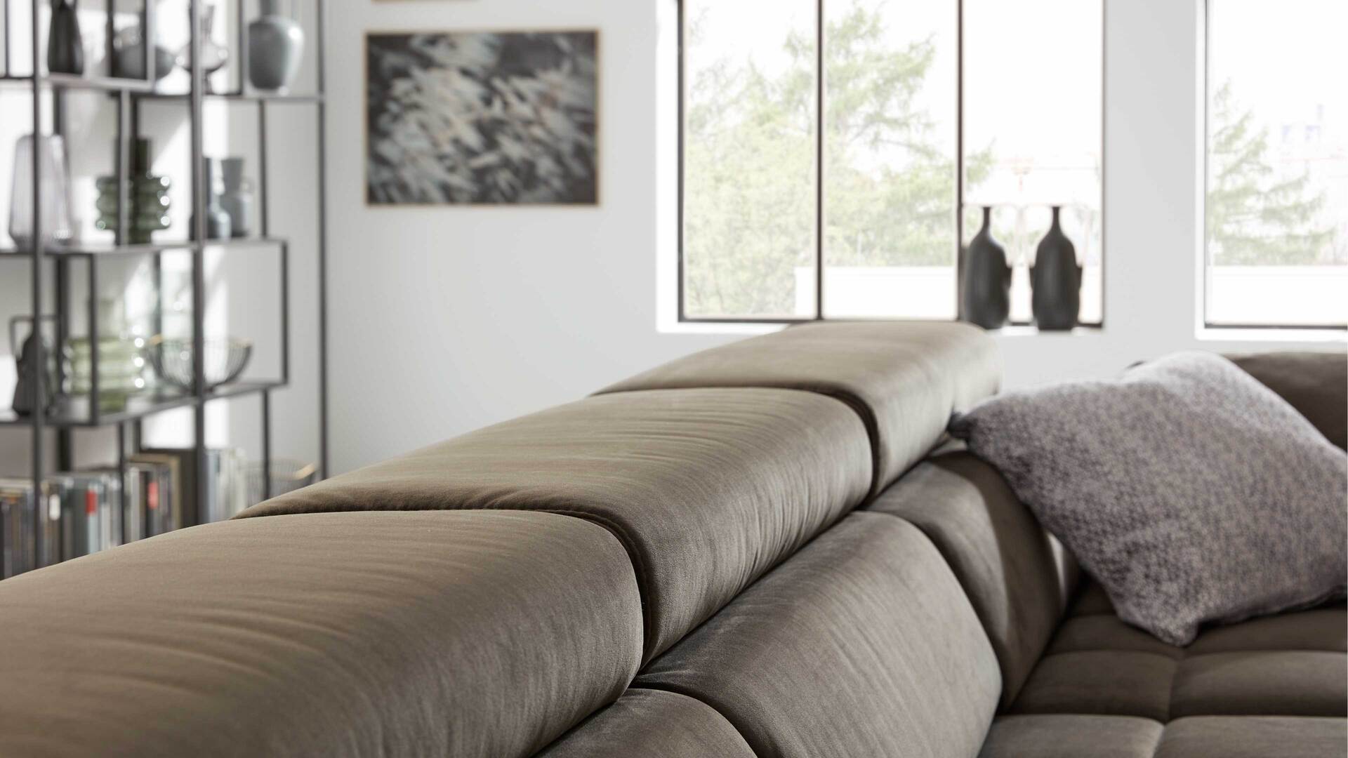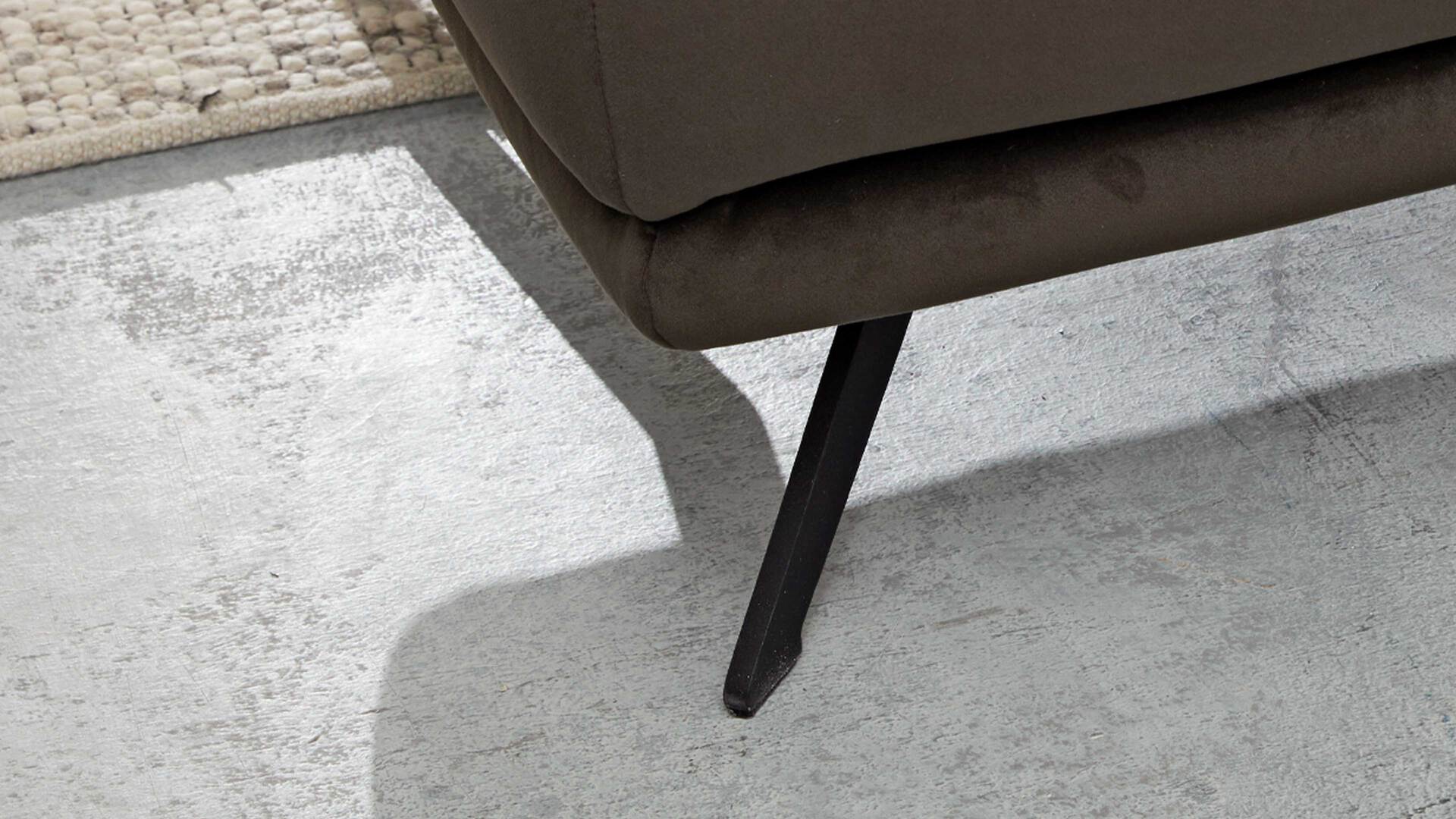 Der olivfarbene Bezug in edler Samtoptik verleiht der Couchlandschaft eine warme, elegante Ausstrahlung. Die angenehm weiche Oberfläche und die mattschwarzen Metallfüße setzen moderne Akzente. Sitzhöhe von ca. 42 cm und Sitztiefe von ca. 67 cm sorgen dabei für entspanntes Sitzen auf höchstem Niveau.