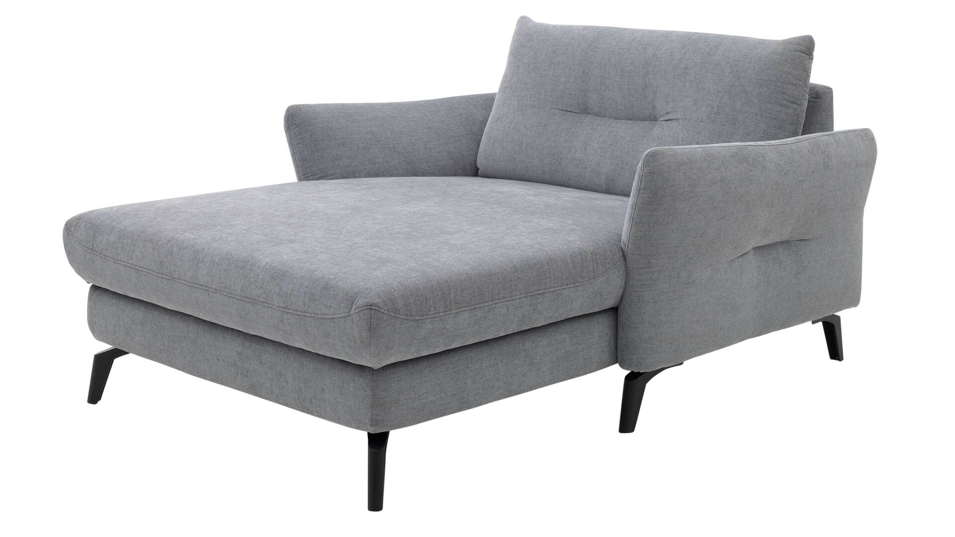 Die gepolsterte Rückenlehne mit feiner Steppung sorgt für ein edles Erscheinungsbild, das durch die mattschwarzen Metallfüße stilvoll unterstrichen wird. Mit ca. 16 cm Bodenfreiheit ist die Chaiselongue auch perfekt für Saugroboter geeignet. Die hochwertige Polyätherschaumpolsterung auf stabiler Wellenunterfederung sorgt für ein angenehm weiches und gleichzeitig stützendes Sitzgefühl – ideal zum Zurücklehnen, Lesen oder Entspannen.