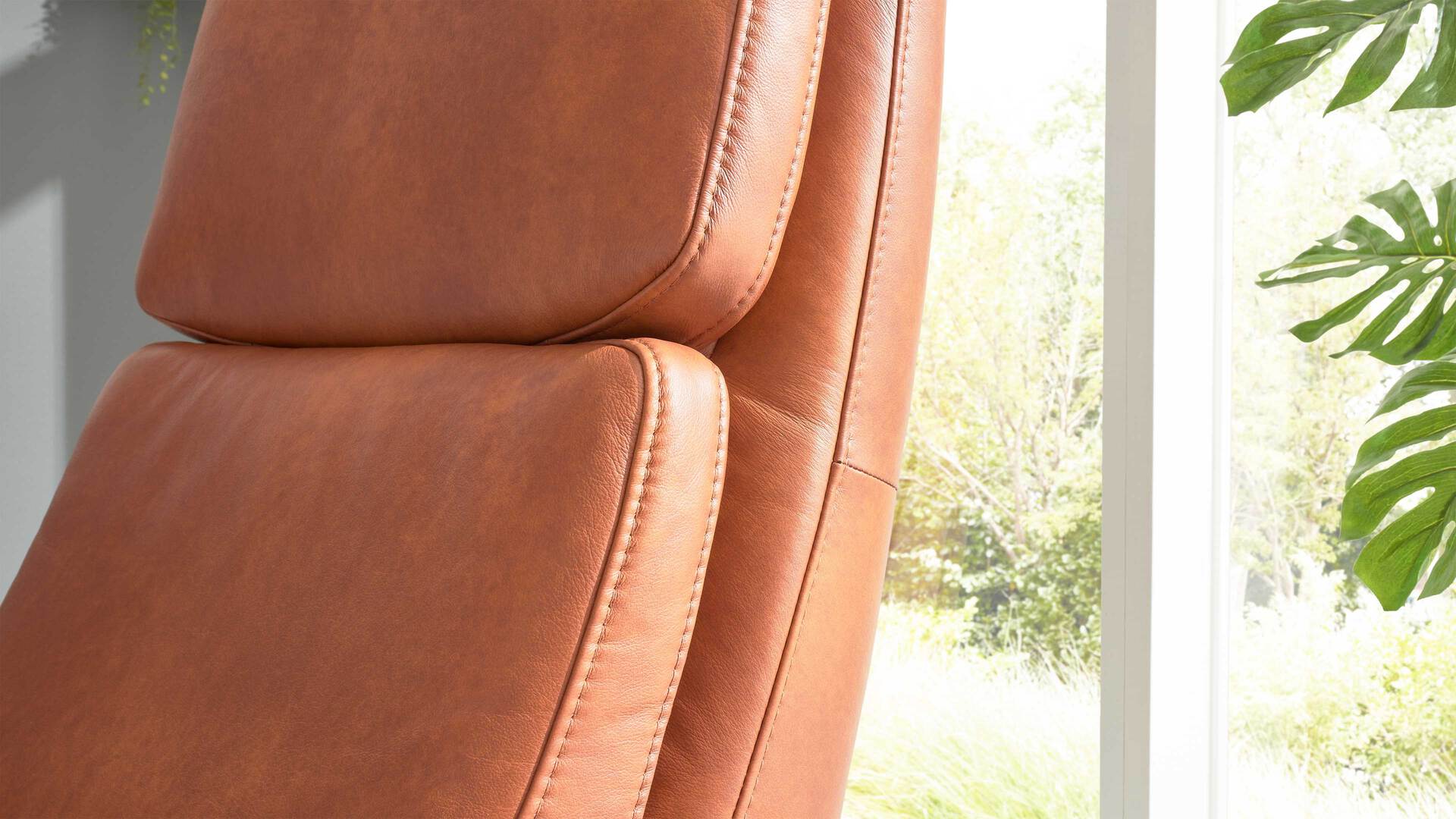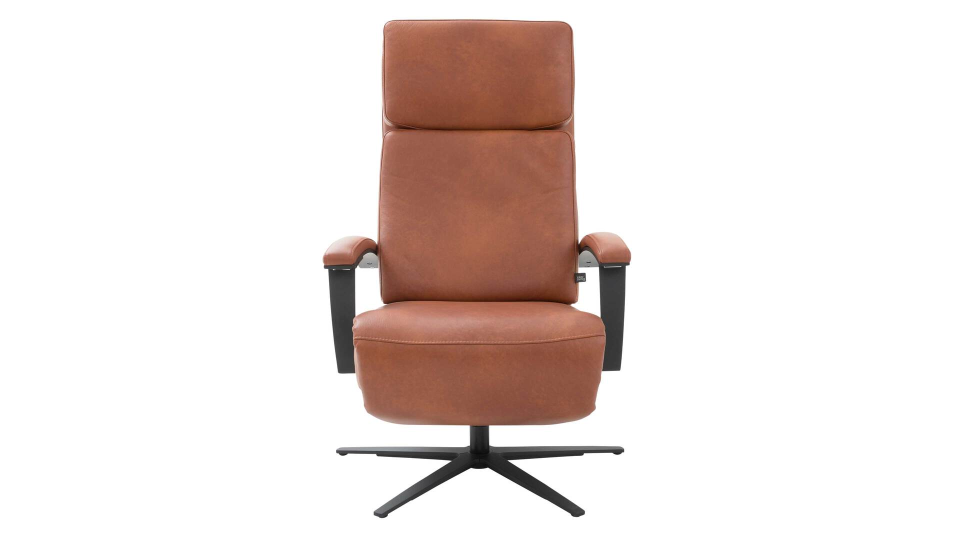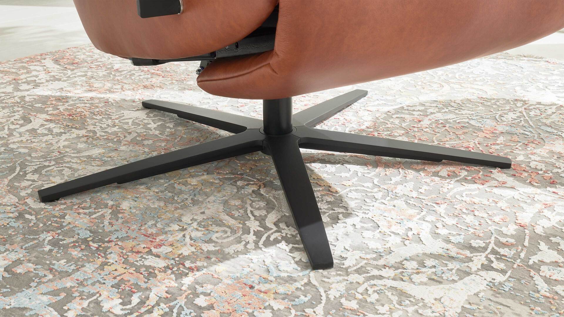 Der Relaxsessel C mit manueller Relaxfunktion aus der Interliving Sessel Serie 4541 kombiniert einen cognacfarbenen LongLife-Lederbezug mit feiner Lederstruktur in 2-Ton-Optik mit dem mattschwarzen Metall-Sternfuß V4S zu einem trendigen Entspannungsmöbel. Alternativ stehen Ihnen noch sechs weitere Fußvarianten zur Wahl. Die Materialien und Farben forcieren eine besonders stilvoll-elegante Ausstrahlung.