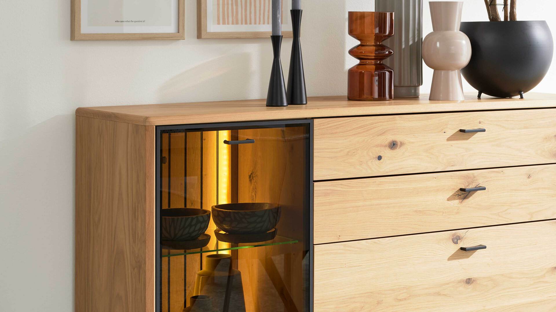 Die Rückwandbeleuchtung für Wandregal und Highboard aus der Interliving Wohnzimmer Serie 2024 setzt Ihre Einrichtung gekonnt in Szene. Mit ihrer stilvollen Ausstrahlung erzeugt die hochwertige Möbelbeleuchtung ein indirektes Licht, das für eine warme und wohnliche Atmosphäre sorgt. Besonders dekorative Elemente in Vitrinenschränken kommen so perfekt zur Geltung.