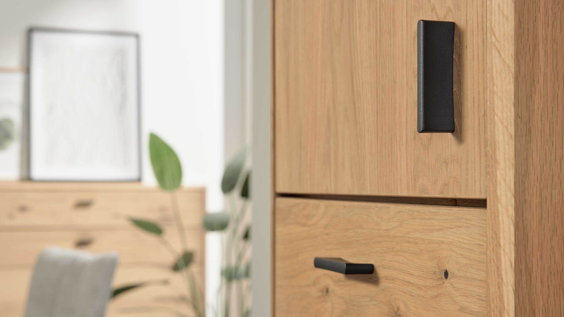 Die Wohnwand 22 aus der Interliving Wohnzimmer Serie 2024 vereint hochwertiges Eichefurnier mit anthrazitfarbenen Akzenten und stilvollem Schwarzglas zu einem eleganten Gesamtbild. Der kontrastreiche Look wirkt modern und zugleich zeitlos – perfekt für verschiedenste Einrichtungsstile und Farbkonzepte. Diese dreiteilige Wohnkombination bringt stilvolle Ordnung und harmonische Wohnlichkeit in Ihr Zuhause.
