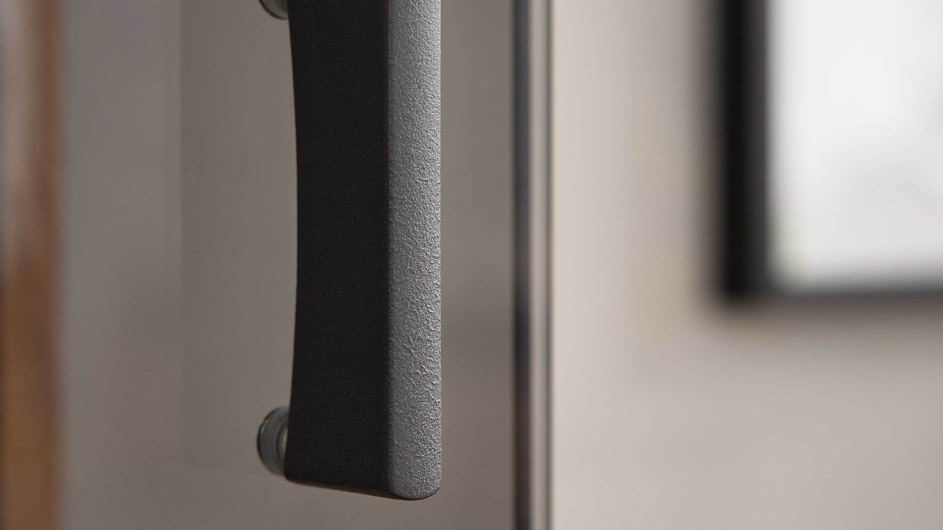 Eiche, Furnier, Holzwerkstoff, Klarglas, Kunststoff, Metall, Parsolglas