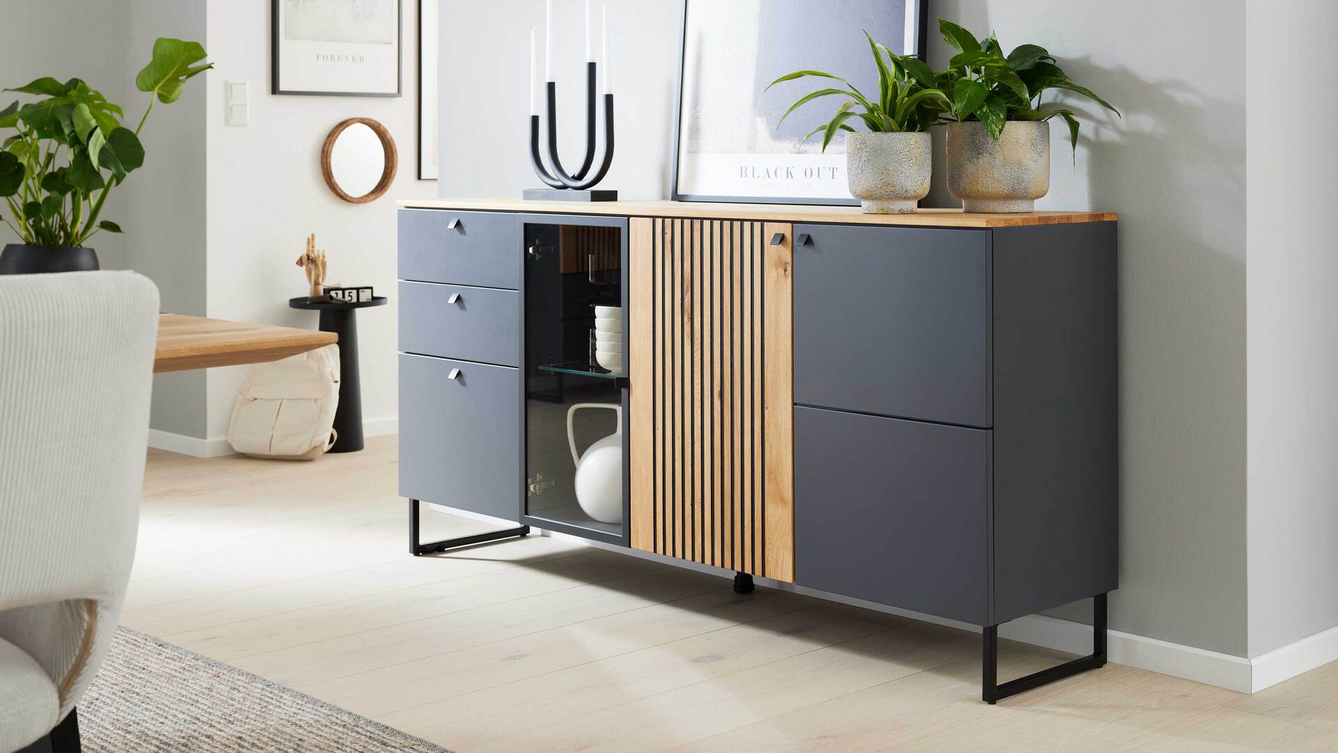 Wildeiche & Granit-Steinoptik – vier Türen, eine Schublade, Breite ca. 178 cm