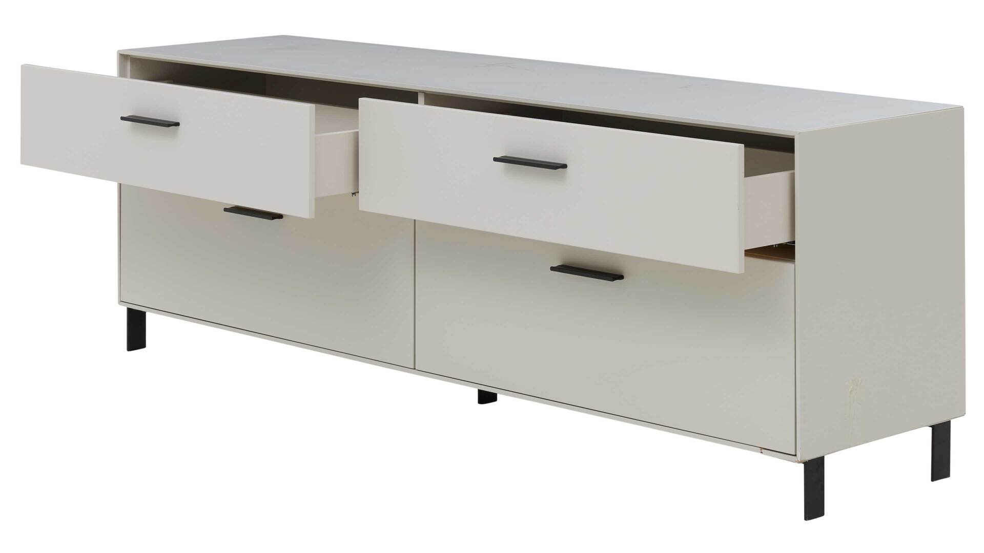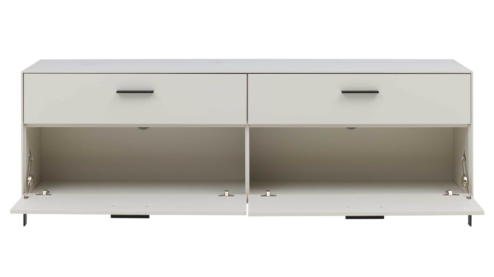 • ein weiteres TV-Hängeelement mit Glaseinsatz in der Front, zwei Schubladen, Kabeldurchlass, ca. 180 x 43 x 40 cm (L/BxHxT)