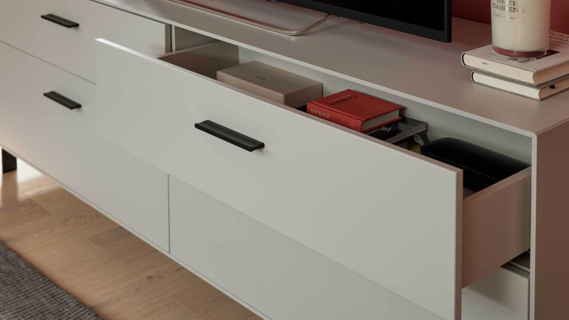 Die Interliving Wohnzimmer Serie 2030 PLUS bietet eine große Planungsvielfalt: Kombinieren Sie weitere Möbel der Serie flexibel miteinander, um genau den Look zu schaffen, der zu Ihnen passt. Ob modernes Sideboard, passende Lowboards oder Vitrinen – hier gestalten Sie Ihre Einrichtung nach Maß.