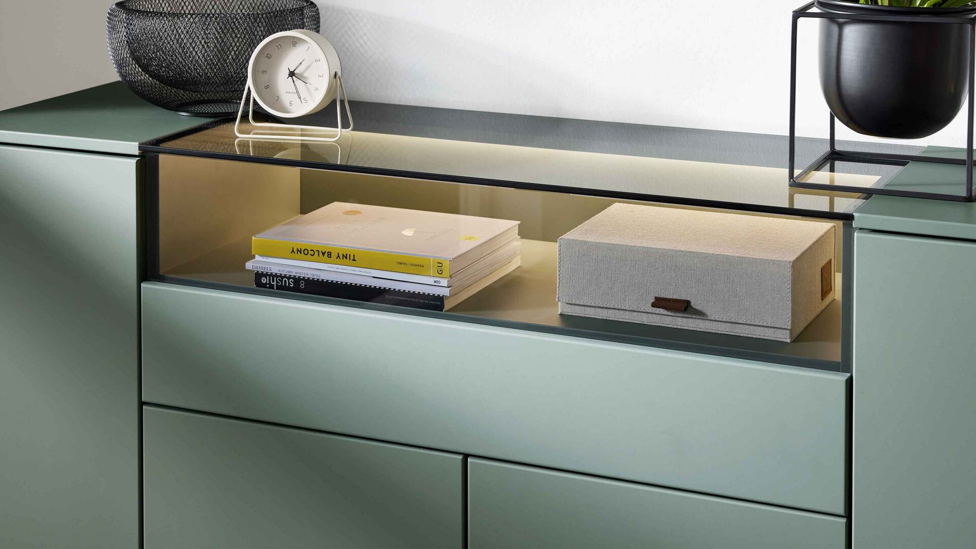 Die Kombikommode lässt sich hervorragend mit weiteren Elementen der Interliving Wohnzimmer Serie 2031 kombinieren – für ein harmonisches Gesamtbild im Wohnbereich oder Arbeitszimmer. Dank der klaren Formgebung und der wählbaren Farbtöne Tonweiß, Grau oder Schilfgrün passt sich das Programm mühelos verschiedenen Einrichtungsstilen an.