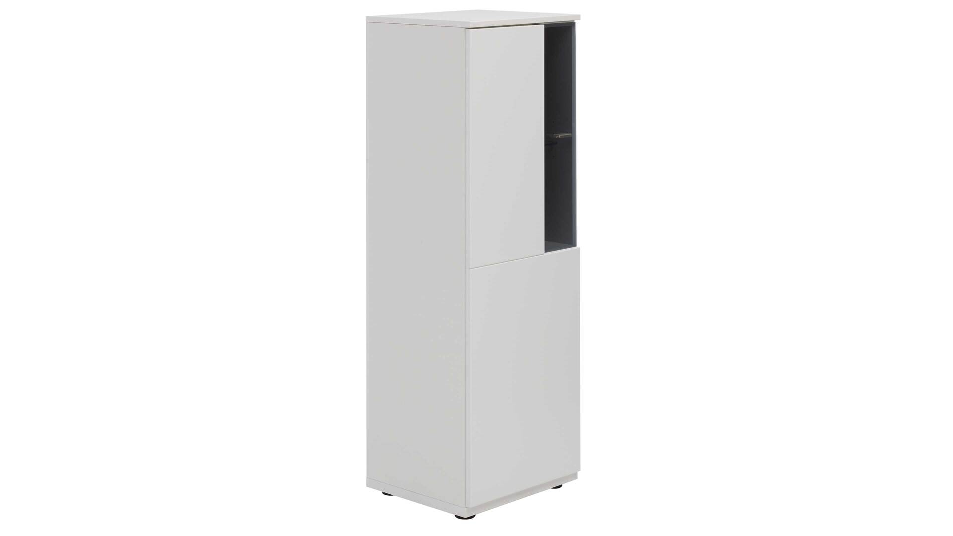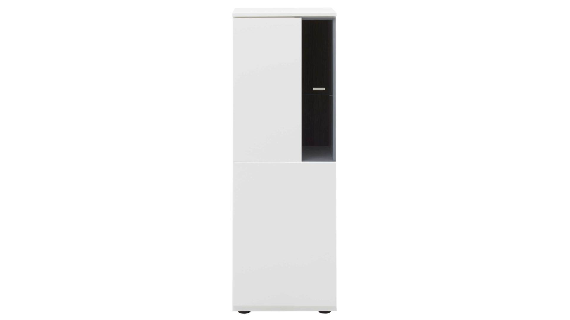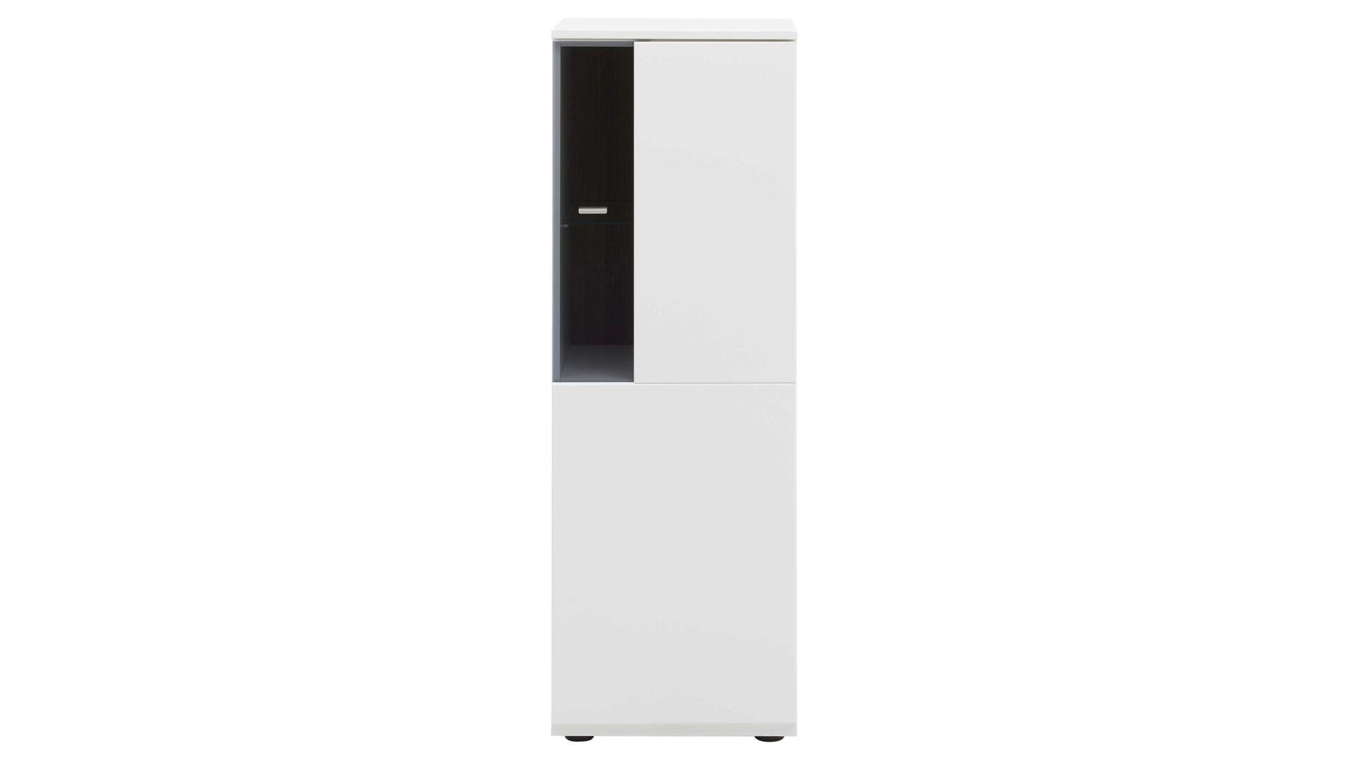 So entsteht reichlich Stauraum, der durch seine klare Struktur und die eleganten Glasakzente wohnlich wirkt.