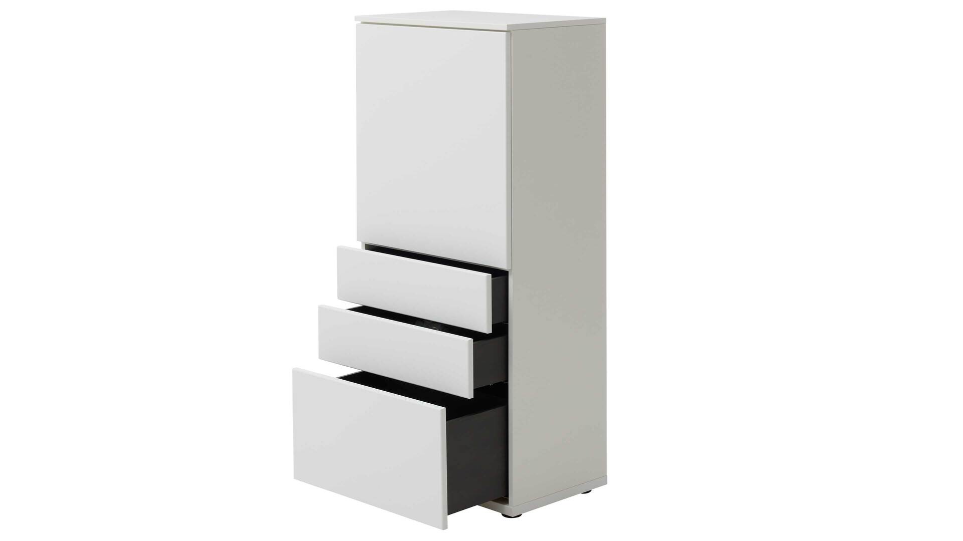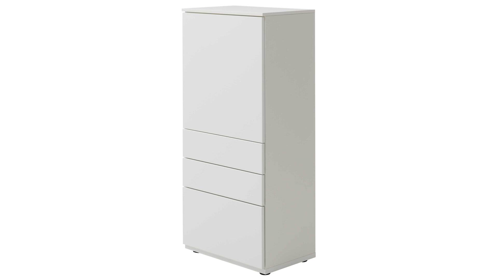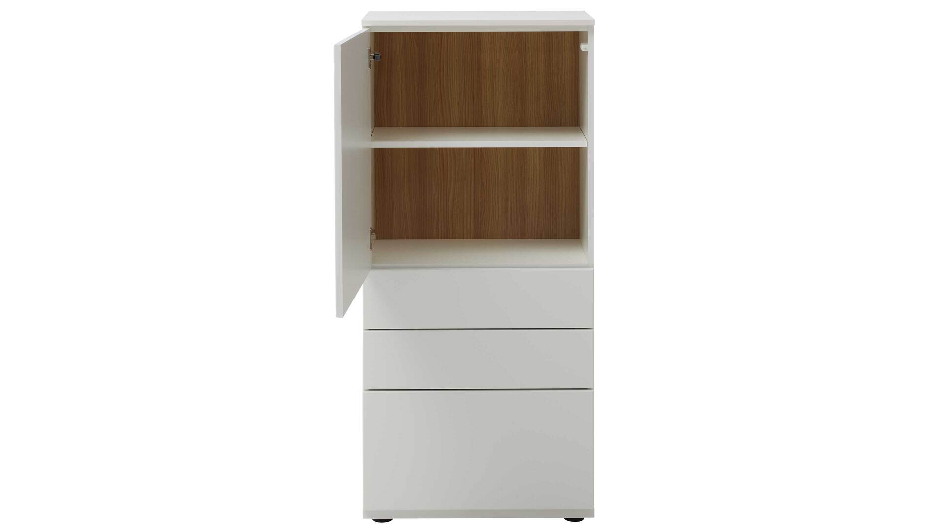 • Highboard B060.441 (links angeschlagen) mit einem höhenverstellbaren Holzboden und drei Schubladen, ca. 60 x 131 x 40 cm (BxHxT).