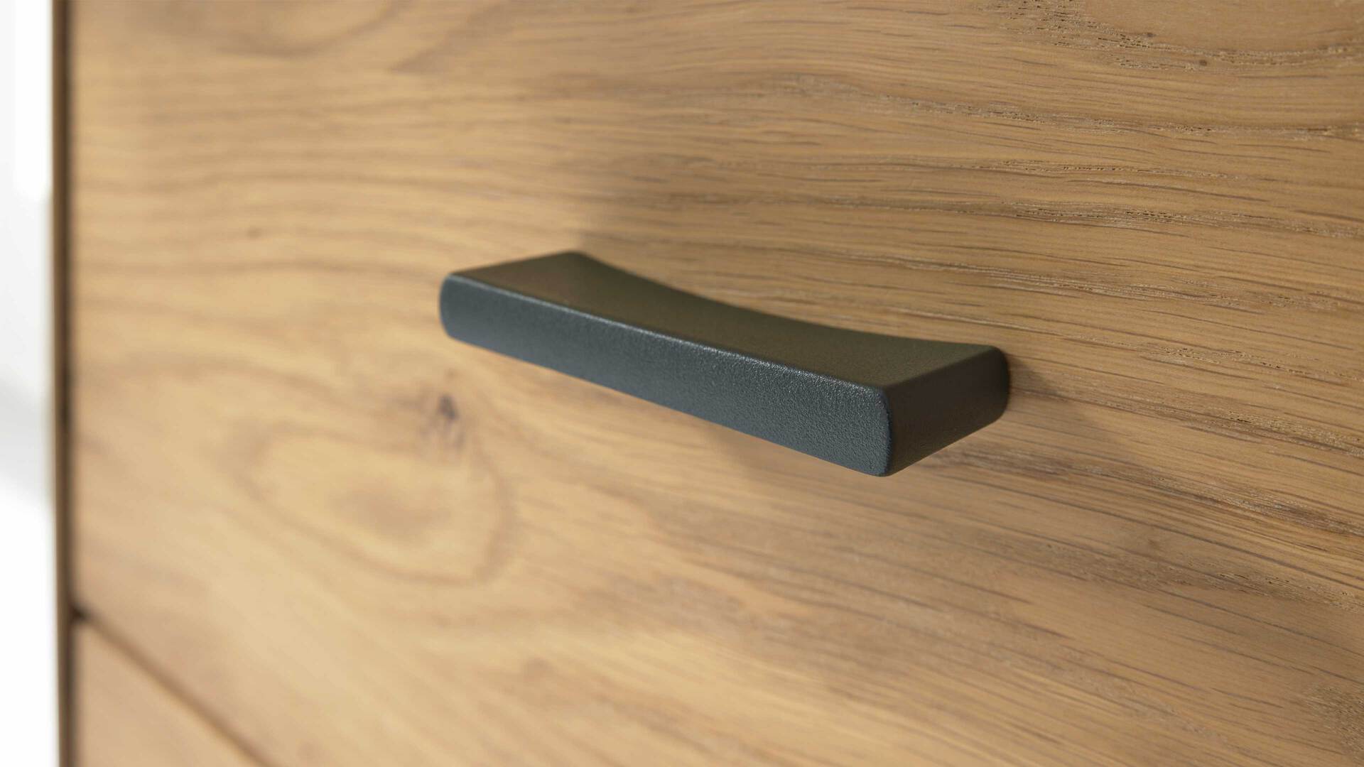 Gestalte deine Kommode individuell: Du kannst zwischen zwei verschiedenen Front- und Griffvarianten wählen. Und wenn du möchtest, setzt du mit geschroppten Rückwänden und optional erhältlicher LED-Beleuchtung zusätzliche Highlights in den Glaselementen.